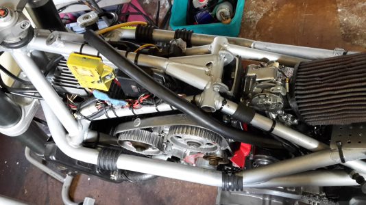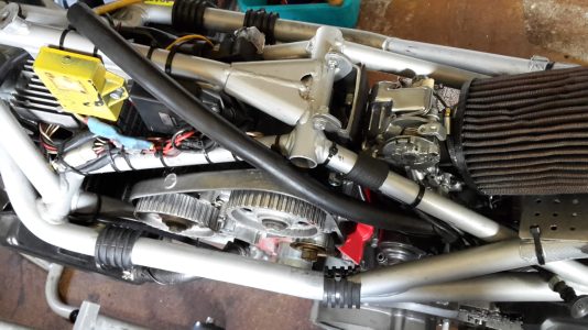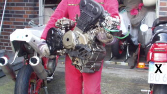 Meines Erachtens ist Gilera bei den 46 PS Motoren den falschen, konstruktiven Weg gegangen. Man hat "unten rum" alles Serie gelassen und nur über den Ventiltrieb versucht, die Leistung zu holen. Dies gilt natürlich für die Tuningbranche, wo z. B. durch ein Reglement der Hubraum festgelegt wurde, aber immer auf Kosten der Haltbarkeit. Es gilt aber schon seit den Anfängen der den Motorentechnik: Hubraum ist durch nichts zu ersetzen. Andere Hersteller sind den Weg über den Hubraum gegangen, z. B. 660 cc bei der Yamaha SRX oder 800 cc bei der Suzuki DR Big bei ähnlicher Leistungsausbeute. Es gab doch schon zu Saturnozeiten den "bewährten" 100 mm Girardoni Zylinder/Kolbenkit für gesunde 580 cc. Ich habe schon 1989 einen Saturnomotor auf 580 cc umgebaut mit den Seriennockenwellen + Feintuning und das Ding ging richtig gut. Am Nürburgring bei einem Fahrerlehrgang von der Döttinger Höhe mit leichtem Gefälle runter zu Start/Ziel mit knapp 200 km/h, hinter mir, in meiner Gruppe, eine Horde 4-Zylinder zwecks Tachoabgleich (das war so vereinbart, dass sie an dieser Stelle hinter mir bleiben sollten zwecks Überprüfung der Geschwindigkeit).