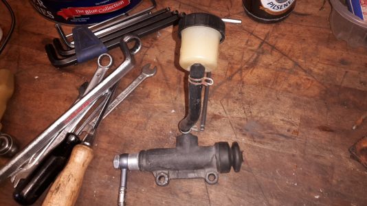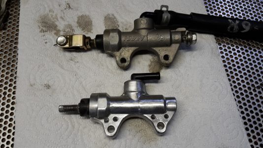 Hatte in meiner Magura Ersatzteilekiste noch einen Kupplungsgriff und Schläuche, aber keinen passenden Nehmerzylinder mehr. Den habe ich übers Internet bestellt, um eine vollständige Kupplungseinheit zusammen bauen zu können.