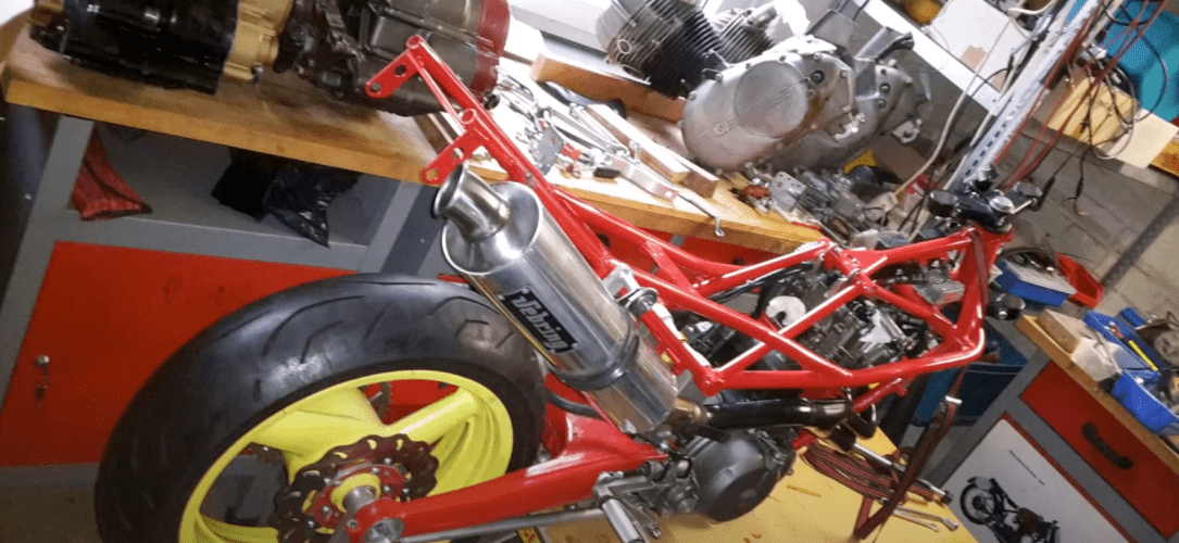 You take some parts from the shelf and assemble a Satuno. Differences to the original are desired. Engine 560 cc slightly modified. Rear wheel widened from 4″ to 5″. Race track only.