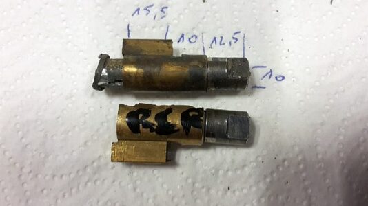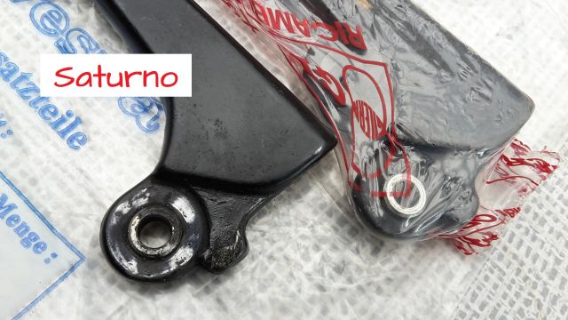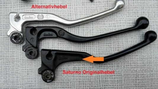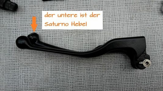 Mir ist mehr durch Zufall beim Sichten meiner Teile aufgefallen, dass ich Bremswiderlager mit 20 mm und 16 mm Durchmesser habe. Nach Info eines japanischen Saturnobesitzers sind die 16 mm Bremswiderlager an den 350 cc Saturnos verbaut worden. M. E. sind 16 mm Bremswiderlager auch bei den 500 cc Saturnos völlig ausreichend