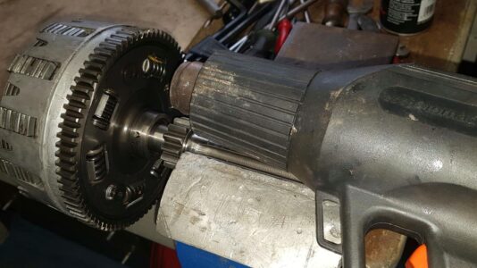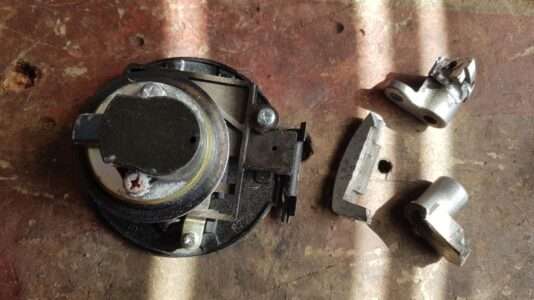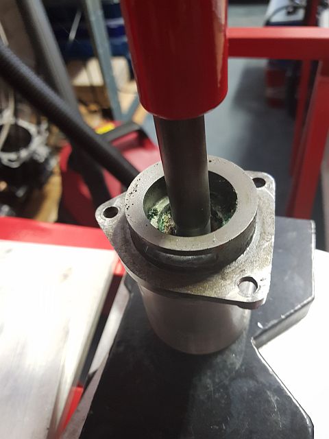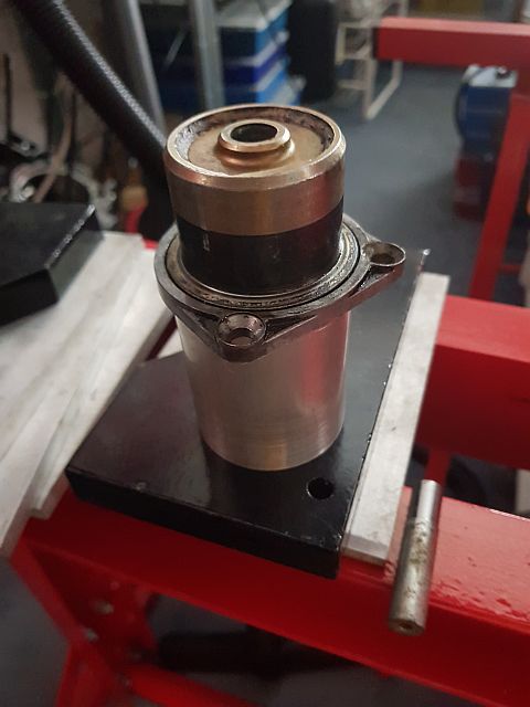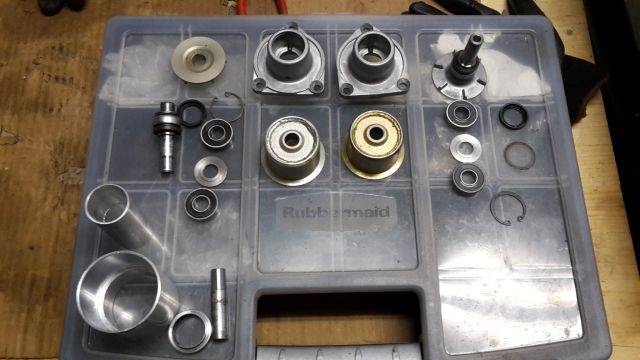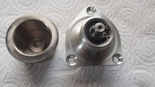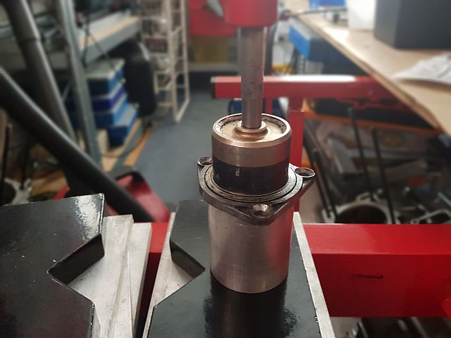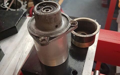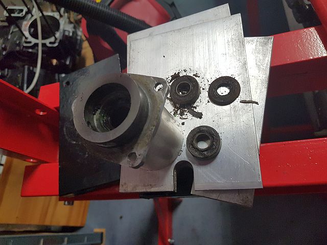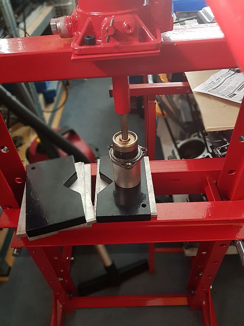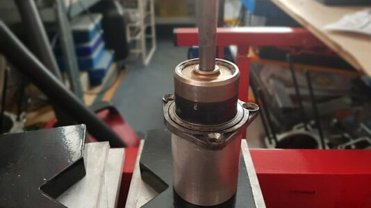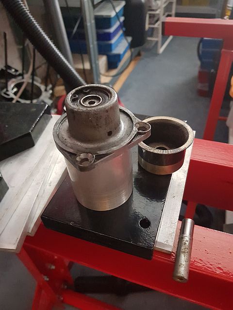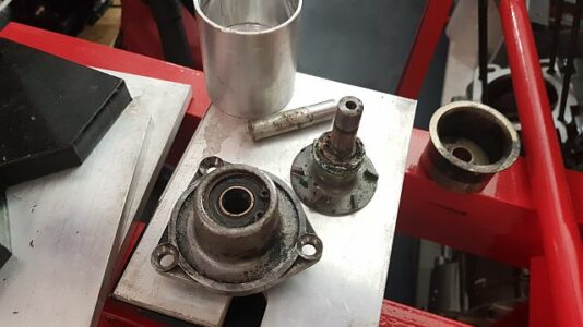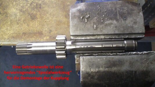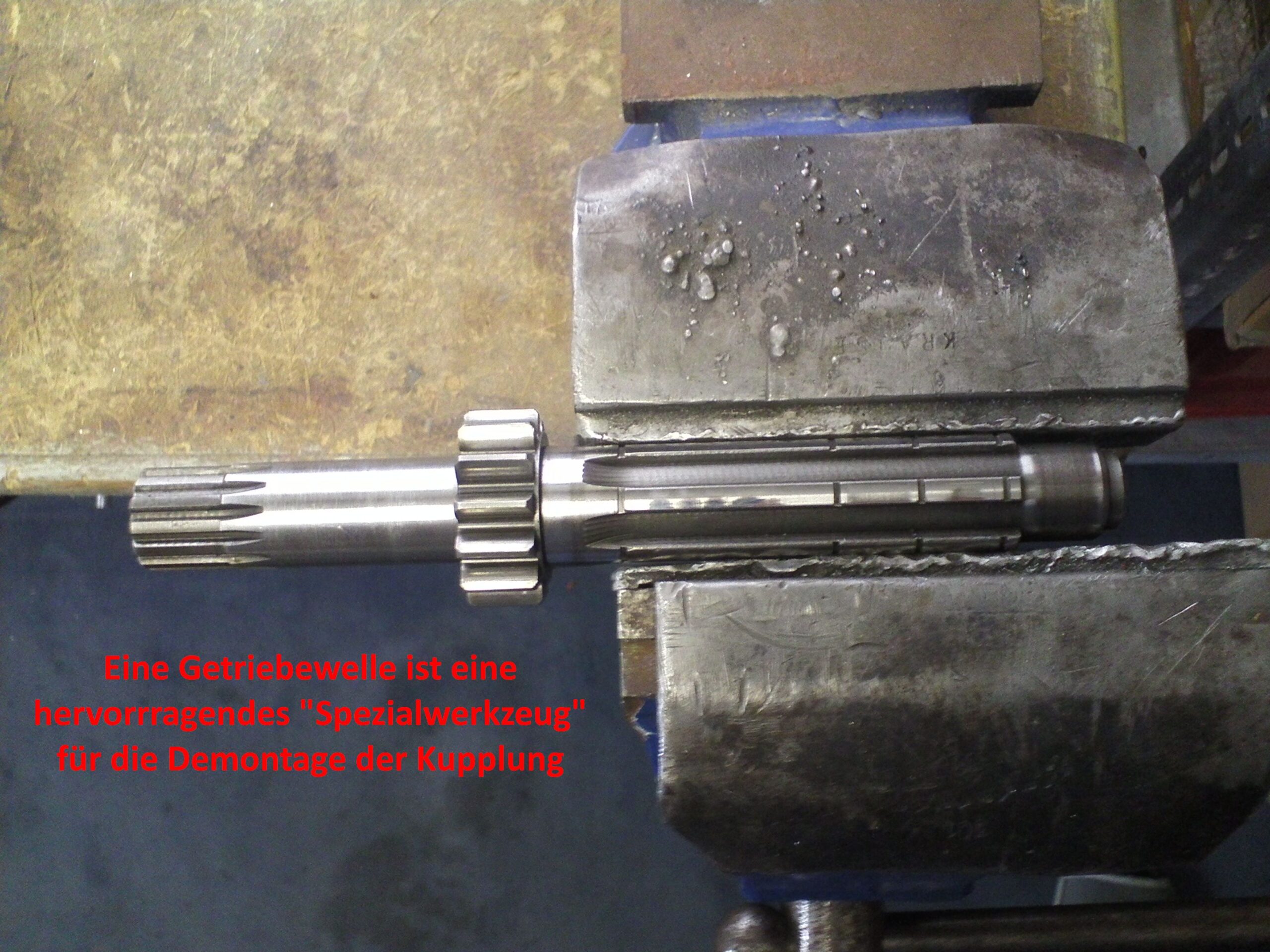 Wichtig für das Zerlegen ist eine ordentliche Presse (sollte mindestens 2 t drücken, bitte keine Schraubstockexperimente), Ausdrückdorne und mindestens 2 passgenaue Hülsen (Drehbank erforderlich) für die Unterstützung von Flügelrad und Antriebsrolle beim Auspressen