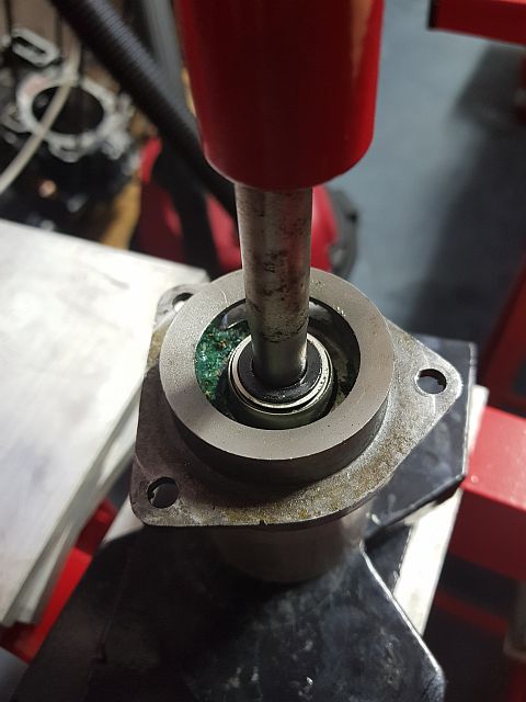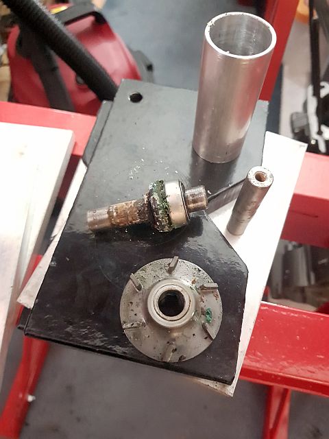 Die beiden Kugellager sitzen recht stramm im Gehäuse. Ein vorheriges Erwärmen, statt kalt auszupressen, wäre die elegantere Variante