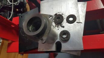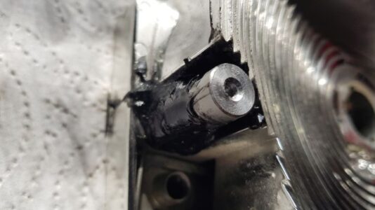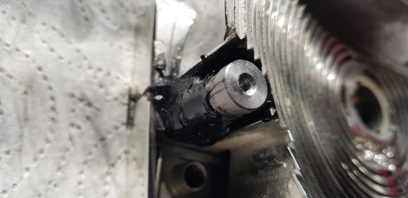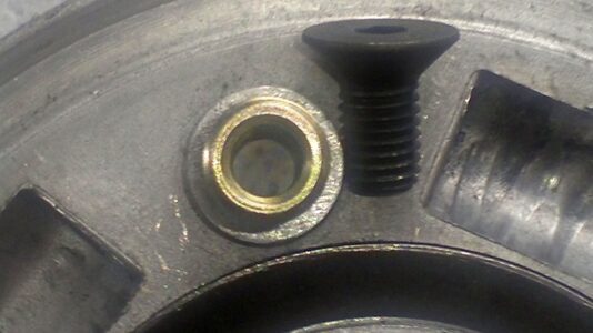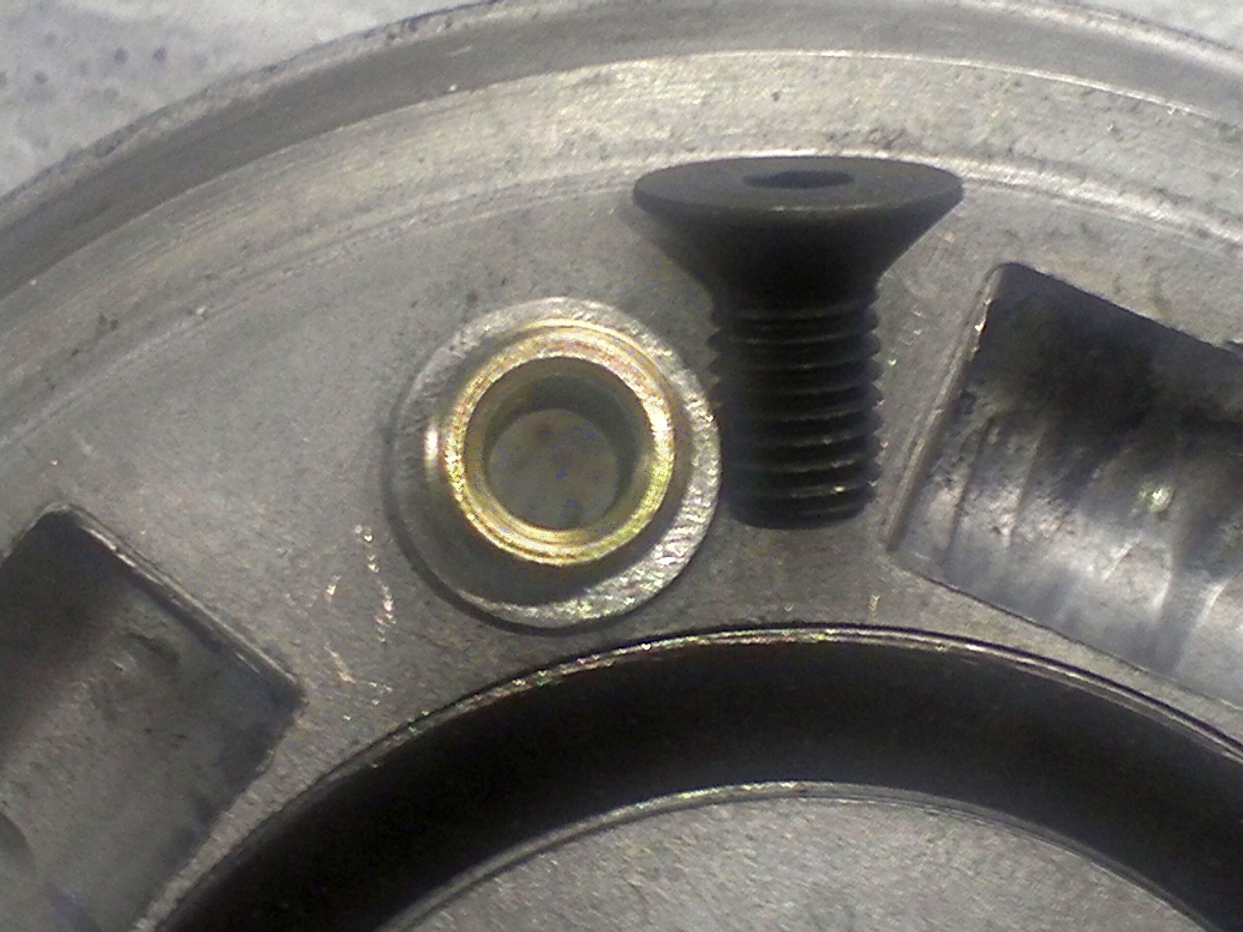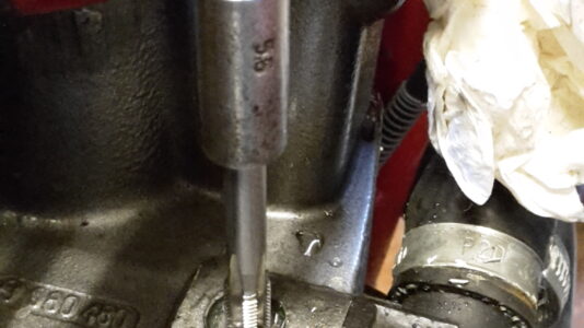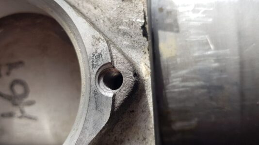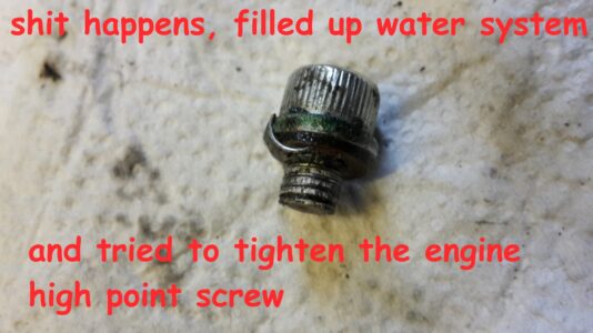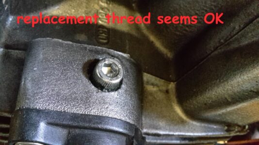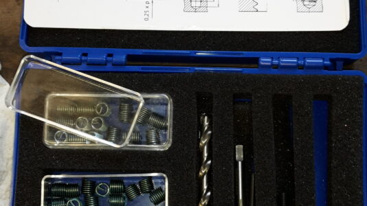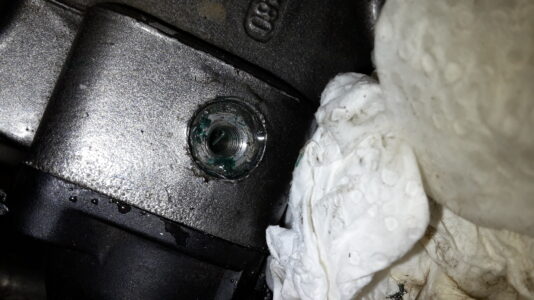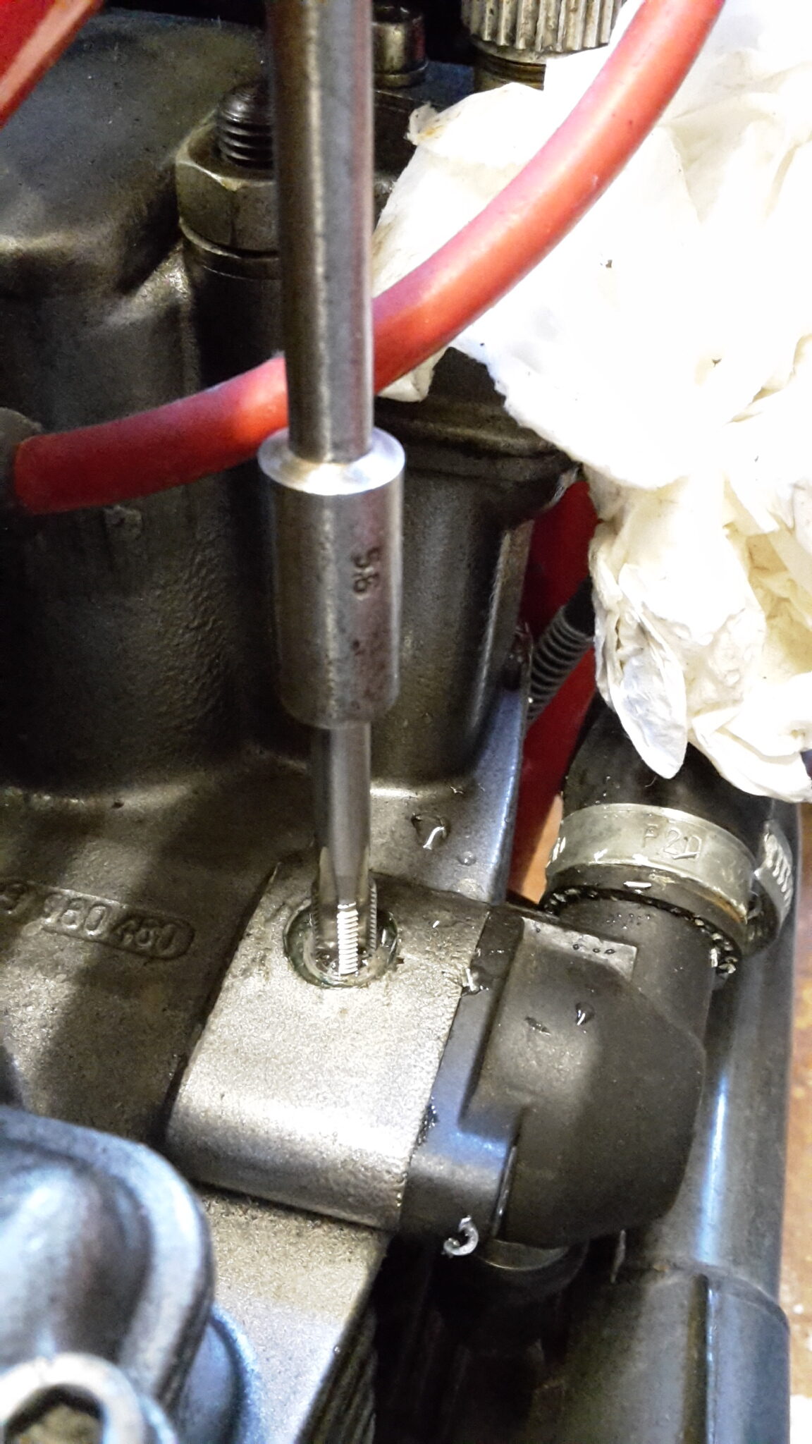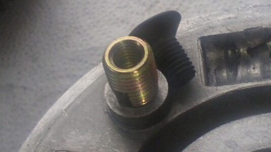 Am gleichen Motor wie beim vorherigen Beitrag habe ich nach dem Entlüften, beim Anziehen der M6, das Gewinde herausgerissen, shit happens. Schnelle Reparatur mit einem Gewindeeinsatz