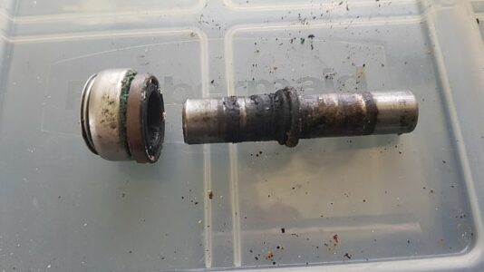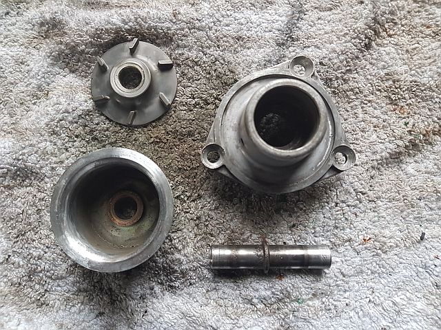 Gebrauchte BI4 Wasserpumpen kaufen, lohnt sich das? Teil 2: Das Grauen hat eine Fortsetzung. Nachdem ich die Pumpen komplett zerlegt habe, entpuppte sich eine Welle "do it yourself" ohne Bund. Leute, da hatte wirklich jemand überhaupt keine Ahnung von der Materie. Ab in die Schrottkiste!