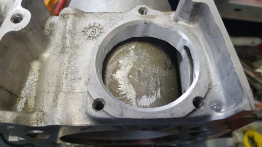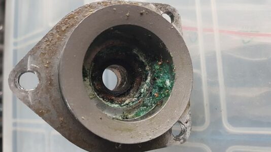 Bei der ersten Kontrolle einer Saturno, die jahrelang herumstand, ergab beim Motor ein "aufgeblühtes" Kurbelgehäuse. Mögliche Ursache, die undichte Wasserpumpe?
