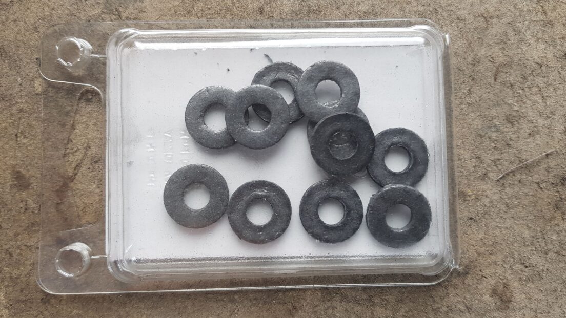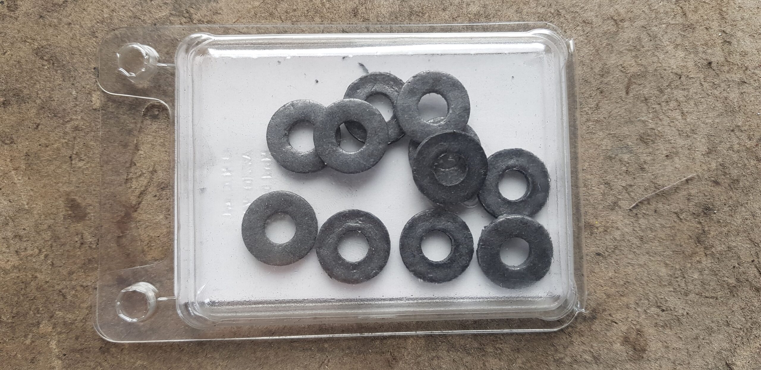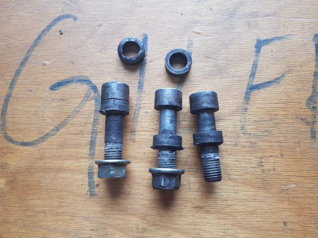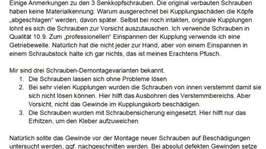 Nachtrag 07.03.2023: Gefunden in meiner "Kuriositätenkiste". Muss ich offensichtlich mal selber "ausprobiert" haben. Gewinde und Länge stimmen mit den originalen Schrauben überein. Herkunft unbekannt