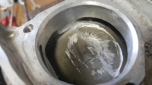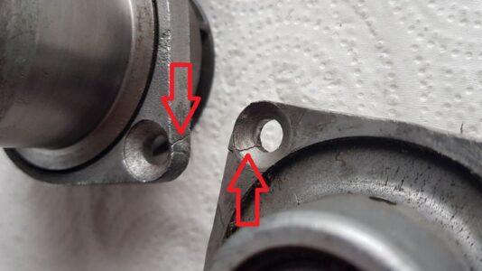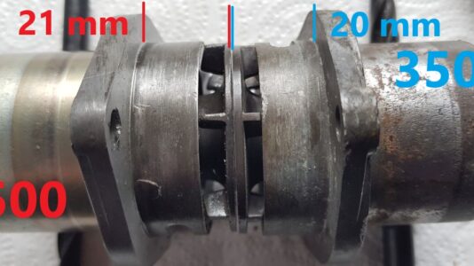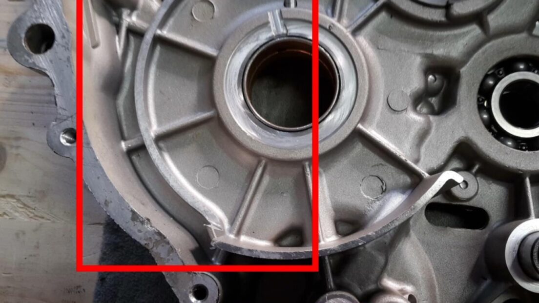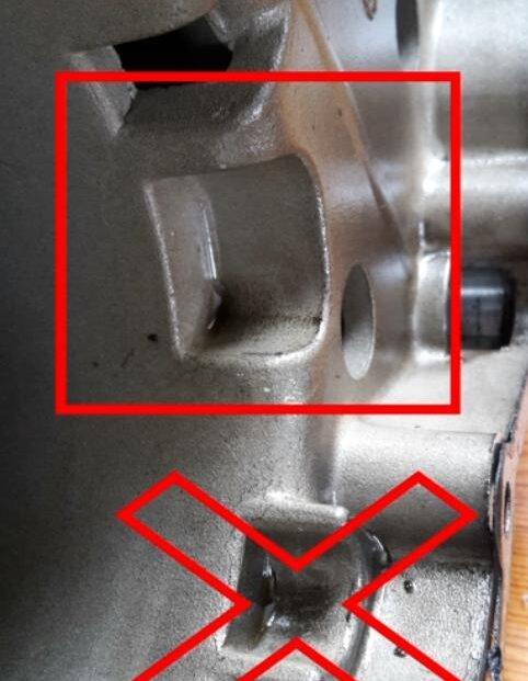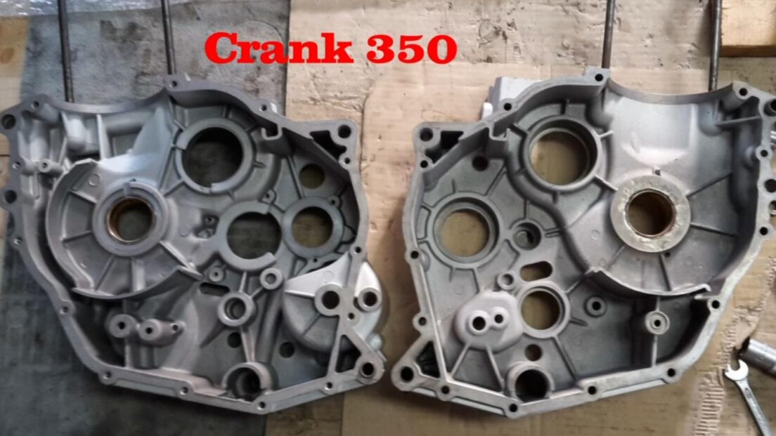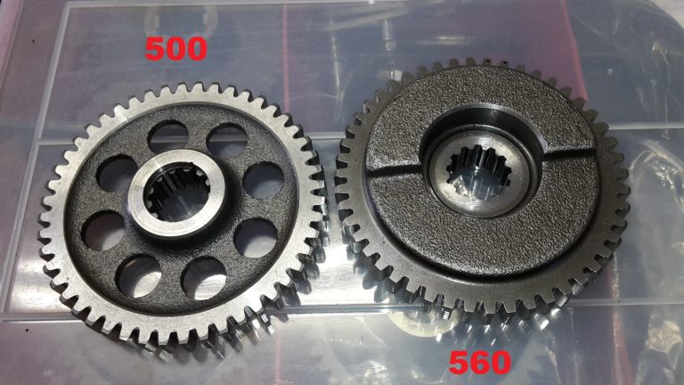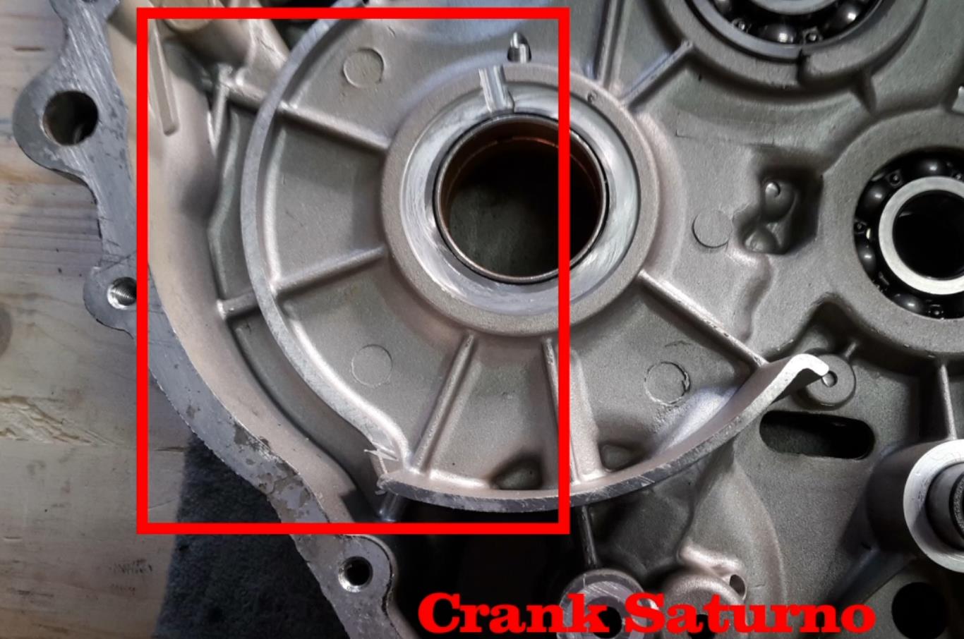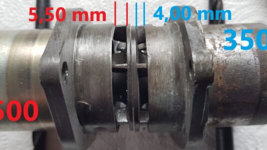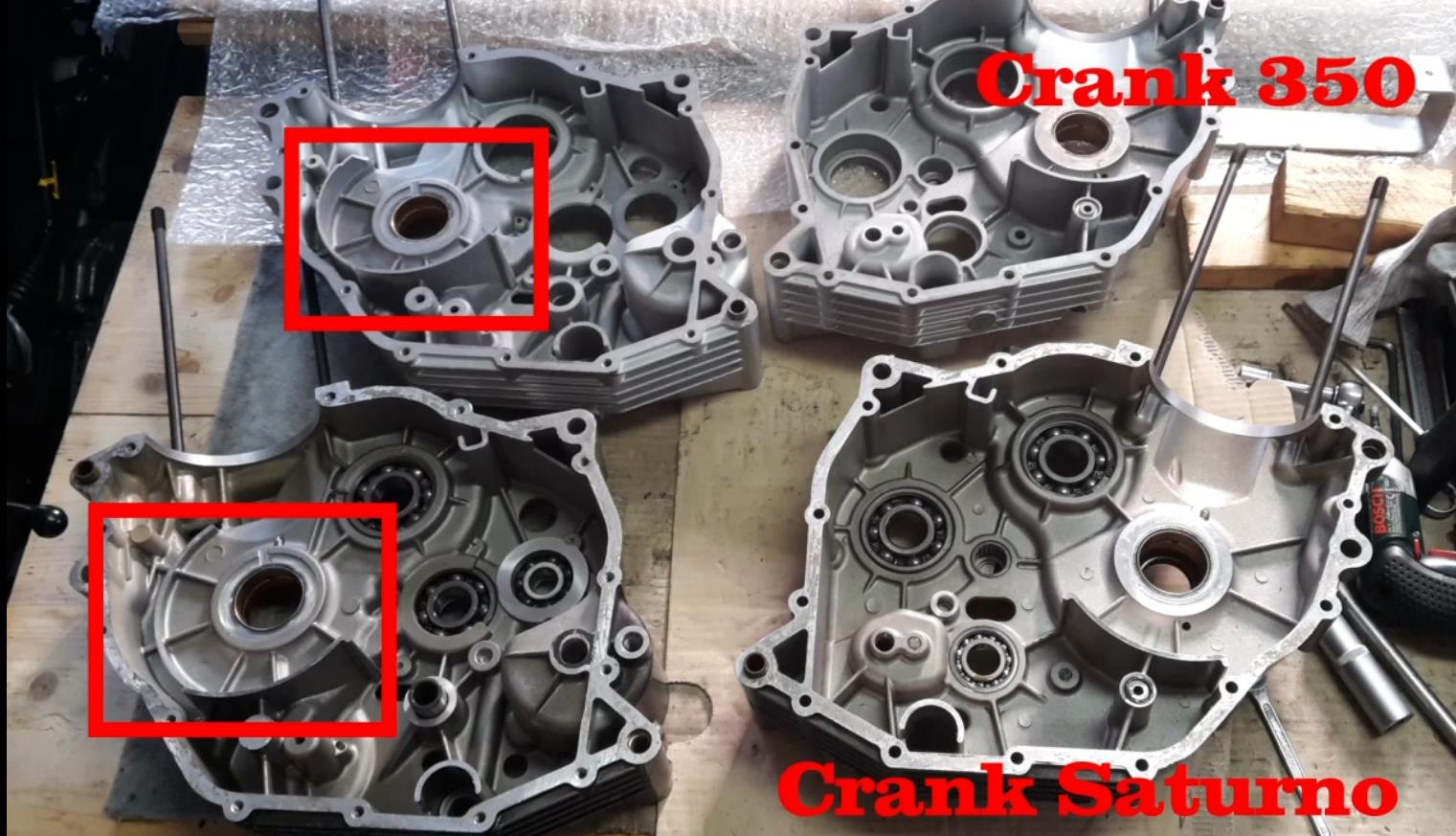 Die Unterschiede der Kurbelgehäuse zwischen 350 cc, 500 cc und 560 cc: Die 350 cc Kurbelwellen habe einen kleineren Durchmesser als 500 cc und 560 cc Wellen. Im 350 cc Kurbelgehäuse ist der Gußsteg um die Kurbelwelle bis oben hin geführt. Die 500 cc und 560 cc Kurbelgehäuse haben dies nicht. Eine 500 cc bzw. 560 cc Kurbelwelle passt daher nicht in eine 350 cc Gehäuse. Allerdings kann man den Steg abfräsen und damit das 350 cc Gehäuse auch für 500 cc Wellen verwenden. Ein weiterer Unterschied der Gehäuse ist der Durchmesser für den Zylinderhals. Der ist bei 350/500 cc identisch, bei 560 cc größer.