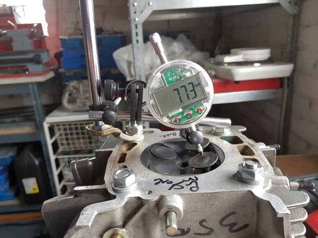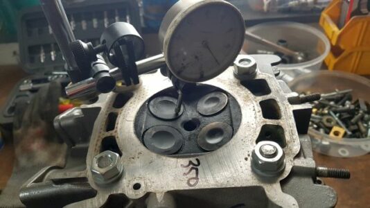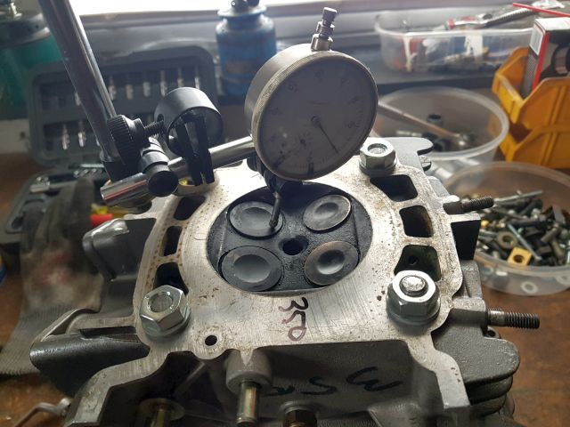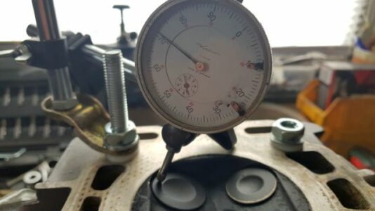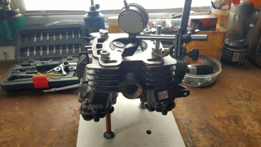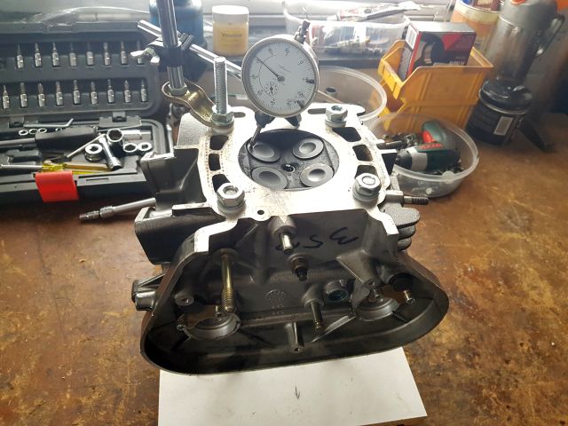 Stand 04.03.2023: Erste Testmessungen gemacht. Ich habe nur die weicheren, inneren Ventilfedern verbaut, dem leichteren Drehen der Nockenwellen geschuldet. Verbaut sind die zwei unterschiedlichen 350 cc Kipphebel auf jeder Seite im 350 cc Dakota Kopf. Seriennockenwellen. Die ersten Messungen zeigen einen Unterschied im Ventilhub zwischen den beiden Kipphebeln, dies gilt es noch genauer zu überprüfen