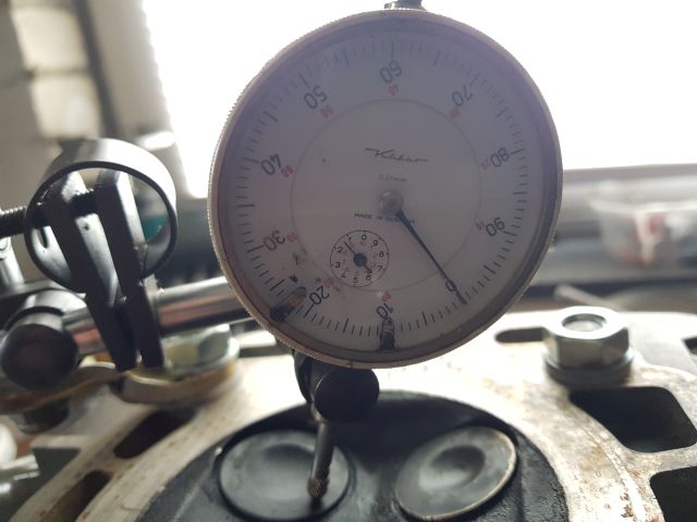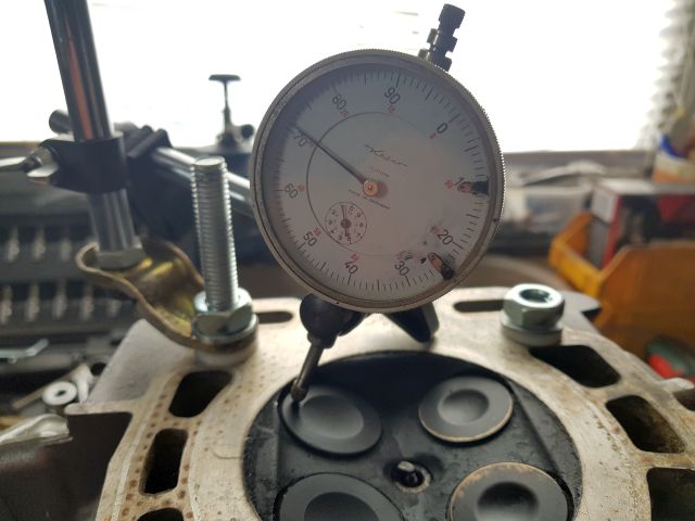 Mögliche Messfehler sind folgende: 1. Unterschiedliches Spiel bei den Köpfen und Nockenwellen in den Gleitlagern Nockenwellen/Kopf. Mit der Hand erfühlt zwischen 0 und einigen 1/100 2. "Flexilibität" des Messuhrhalters 3. Achsparallität zwischen Ventilschaft und Messuhrachse 4. Kopf/Ventile wahllos kombiniert, Ventile nicht eingeschliffen Gerade zu Punkt 3 habe ich einige Versuche gemacht und bewusst falsch justiert. Da kommen schon mal einige 1/100 Unterschiede zusammen. Wie man das verbessern könnte? Dazu habe ich schon eine Idee