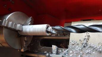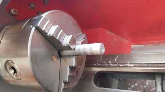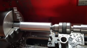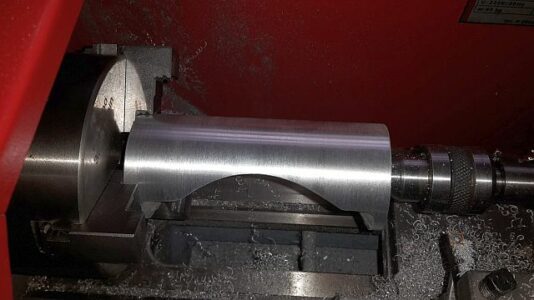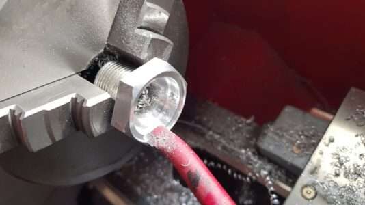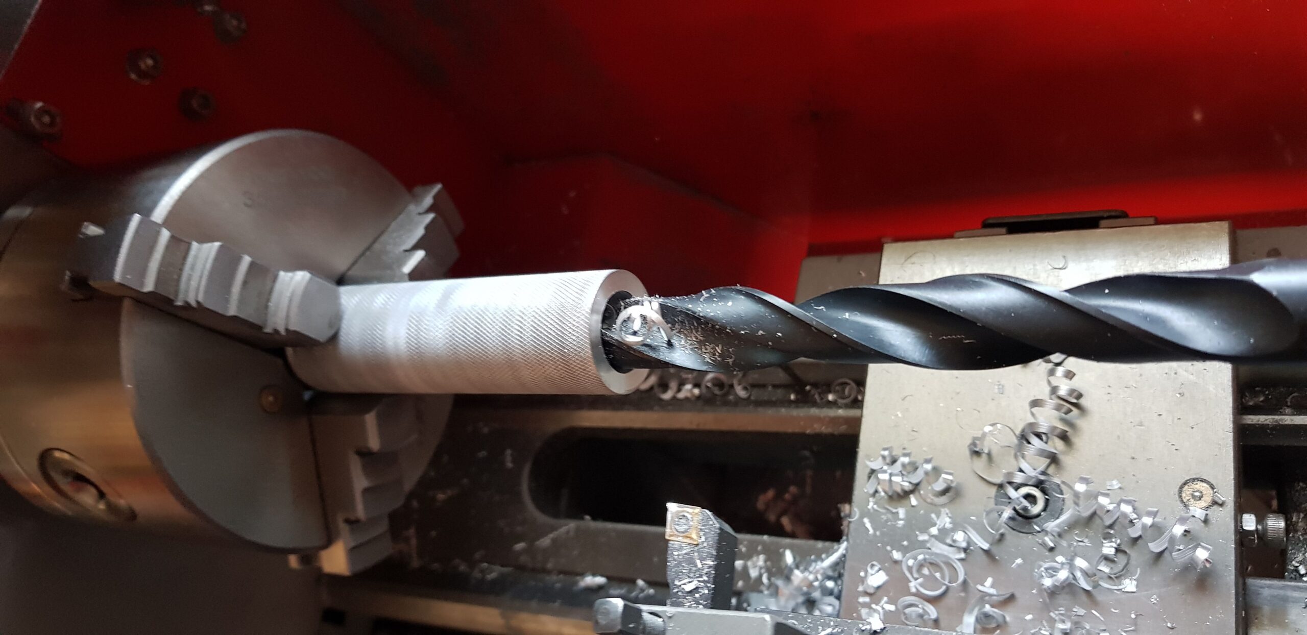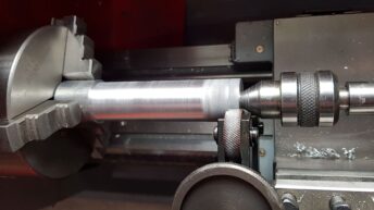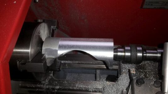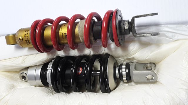 Gilera Saturno: Einbau eines WILBERS Stoßdämpfers. Das WILBERS Federbein ist im Wicklungsdurchmesser einen Hauch dicker als das originale Federbein. Tauscht man es einfach so gegen das Originale aus, kann es zu Beschädigungen an der Kunststoffummantelung der Feder kommen bzw. zu einer Beeinträchtigung der Arbeitsweise. Abhilfe schafft das Aufschleifen der Halbrundung des Zwischenstücks, so dass mindestens ein Stück Karton zwischen Federwicklung und dem Zwischenstück passt. In diesem Zusammenhang kann man auf der Drehbank auch das Zwischenstück "optimieren"