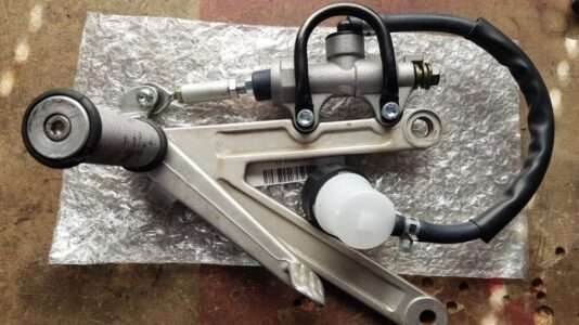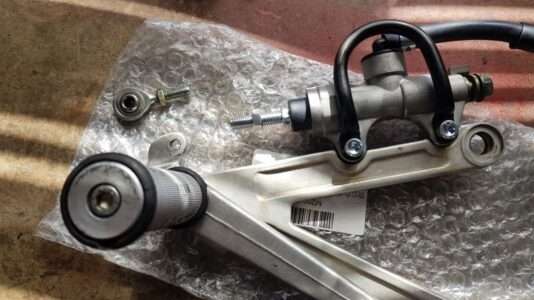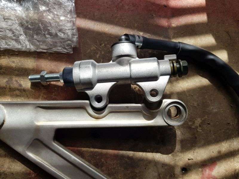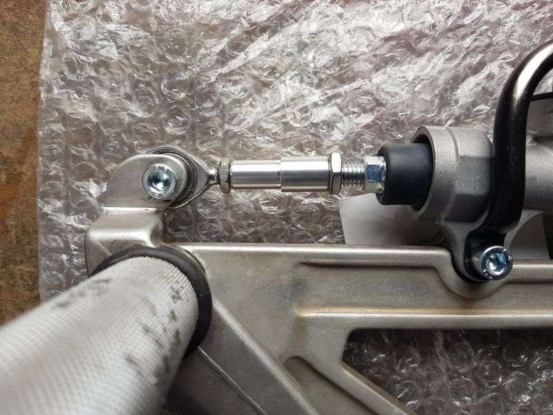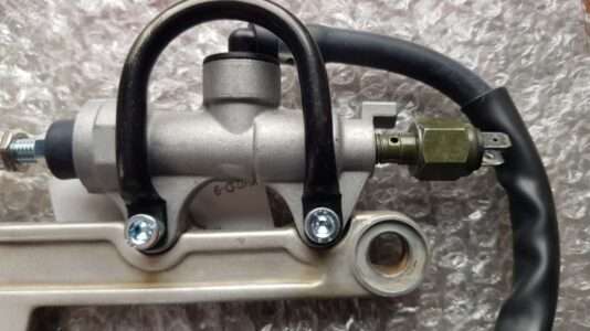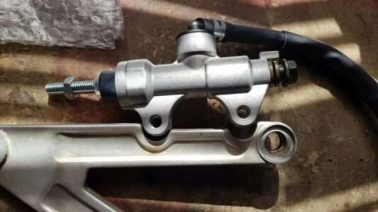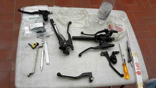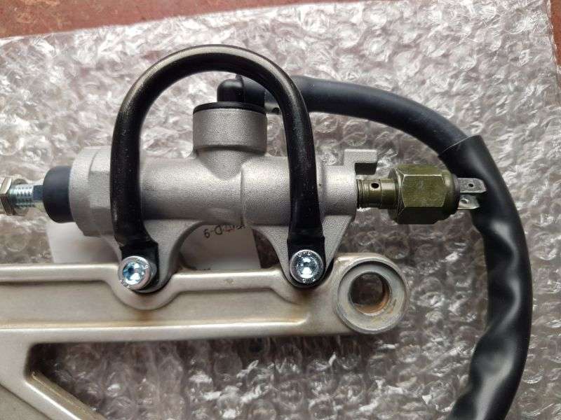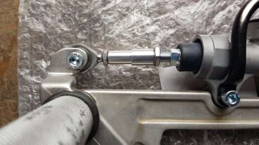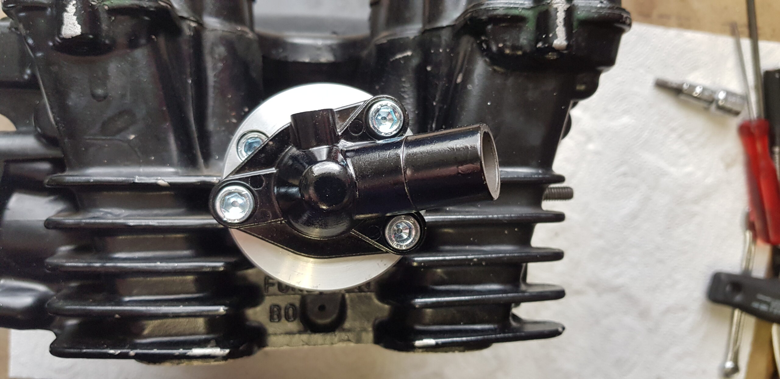 Ich habe mir in China 2 NISSIN Nachbaubremspumpen organisiert, mehr auf Verdacht, ob sie passen würden. Preis/Stück ca. 25 €. Desweiteren einen Bremslichtschalter im Originallook für ca. 5 €. An der Schlauchseite muss die Rundung der Befestigungslasche etwas angepasst/abgeschliffen werden. Am aufwändigsten war das Anfertigen eines Zwischenstücks M8 der Pumpe auf M6 des Kugelgelenks. Wenn man das Pumpengehäuse jetzt noch schwarz lackieren würde, würde der Umbau fast gar nicht auffallen.