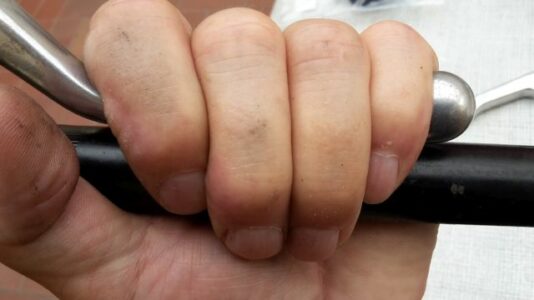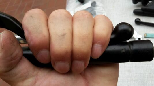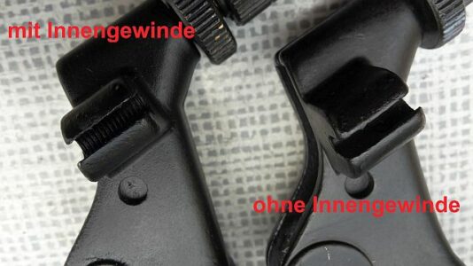 Ein wichtiger ergonomischer Aspekt bei den Hebeln ist die Länge der Handauflage und Kröpfung der Auflage. Schlecht ist der alufarbene Hebel mit m. E. zu kurzer Auflage, siehe Foto weiter oben.