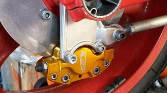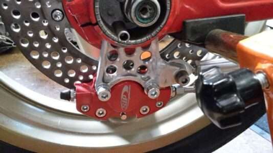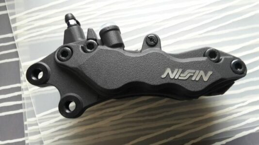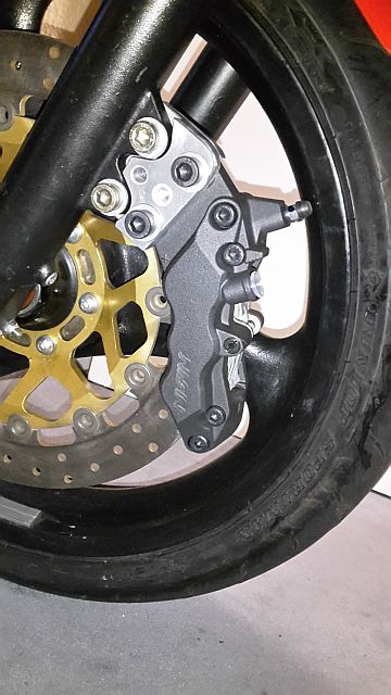 Gilera Saturno: Bremswirkung optimieren? Mein Tipp, Nissin 6-Kolbenzange mit 320 mm Bremsscheibe + Adapter. Alternativ zur Nissin, die SPIEGLER 8-Kolbenzange