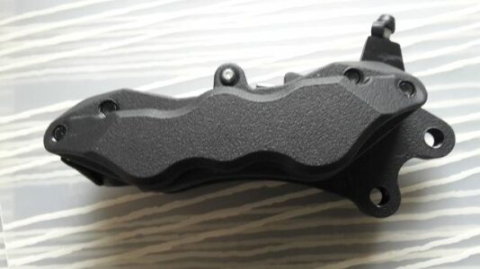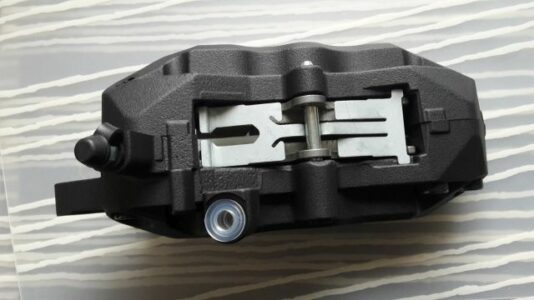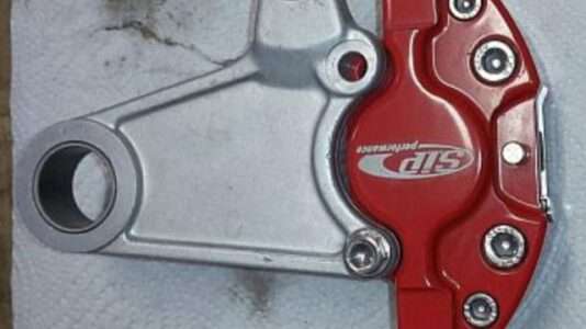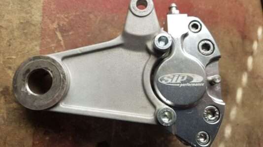 Als Ergänzung zum Bremspumpenumbau schildere ich meine Bremszangen-Umbauten. Ich verwende als Alternative zu der originalen Grimeca Bremszange die fast passgenaue SIP Bremszange (Made in Germany). Aus Aluminium CNC gefräst mit 31,5 mm Bremskolben und einer deutschen ABE Zulassung. Sie gibt es in verschiedenen Eloxalfarben und kostet aktuell 135 € im SIP Scooter Shop. Die Kontur des Gehäuses ist leicht anders als bei der Grimeca Zange. Die originale Halterung muss daher leicht umgeschliffen werden. Für das Vermitteln mit der Bremsscheibe müssen noch je 2 Unterlegscheiben hinzugefügt werden. Bei manchen meiner Umbauten schliff auch leicht die originale Bremsscheibe vorne/hinten in der Zange. Auch hier kann ganz leicht nachgearbeitet werden. Der Gewichtsunterschied beträgt 645 g (Grimeca) zu 565 g (SIP).