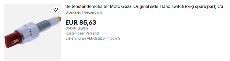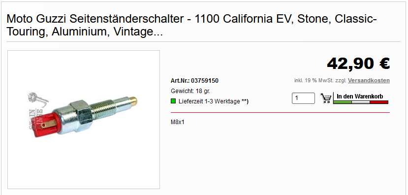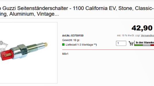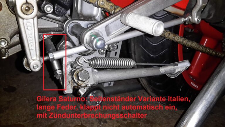 ACHTUNG: Der deutsche TÜV verlangte die Nachrüstung des italienischen Seitenständers mit einem zusätzlichen Zündunterbrecher. Für Italien/International wurden die Saturnos ohne diesen Zündunterbrecher ausgeliefert
