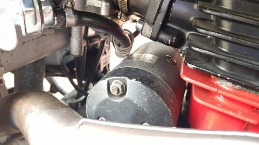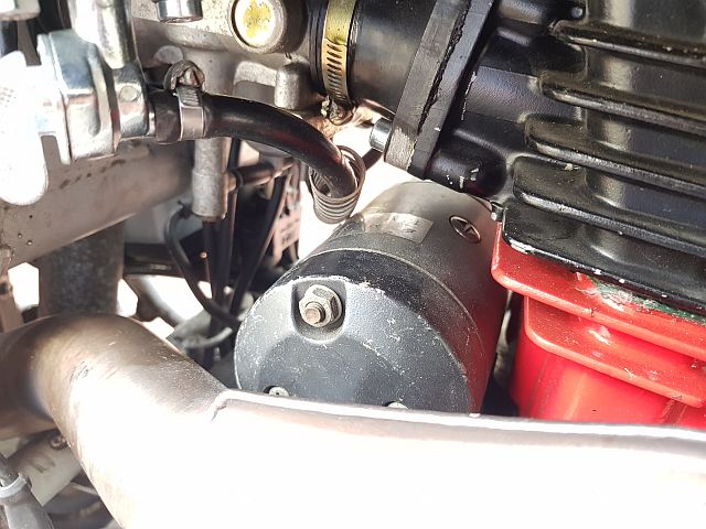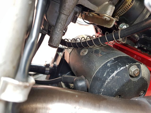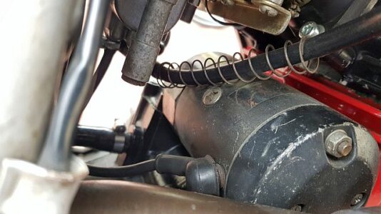 BI4: Oftmals verhindert ein "weiches" verlegen der Benzinleitung nicht den Kontakt zu "heißgehenden" Motorteilen, in diesem Fall der Anlasser. Ich verlege daher immer die Leitung in einer Metallspirale, um einen direkten Kontakt zu vermeiden. Diesen Trick habe ich mir von den 40 Jahre alten, japanischen Zweitaktern abgeguckt, da waren diese Spiralen serienmäßig verbaut