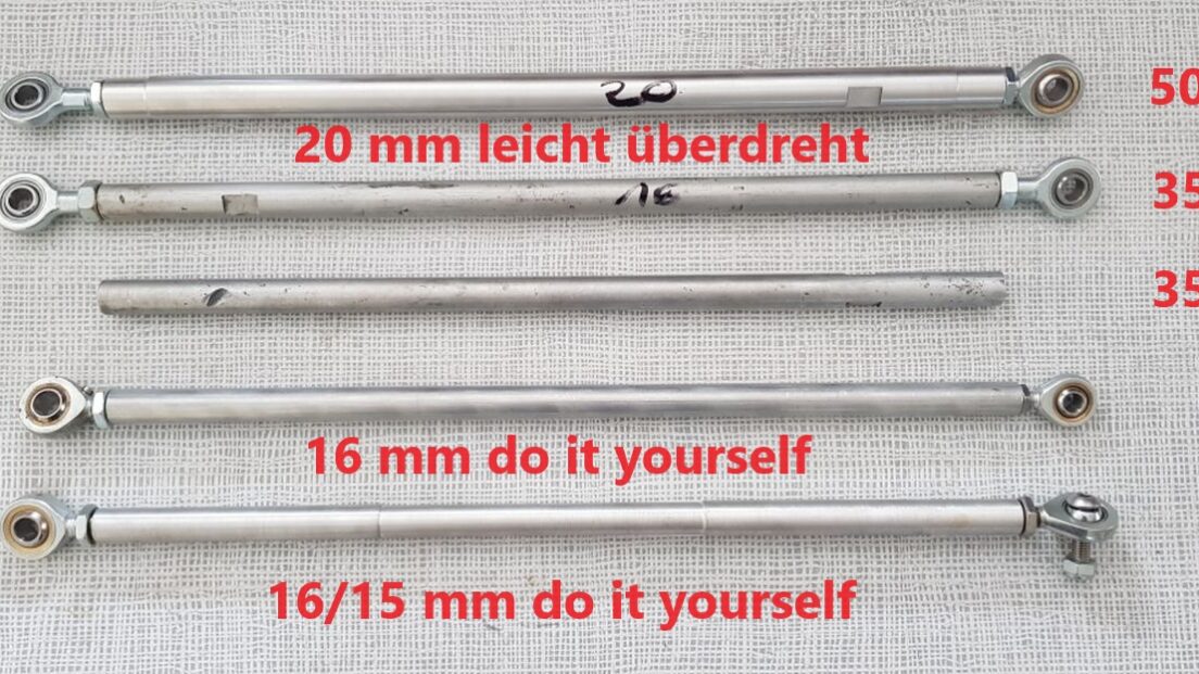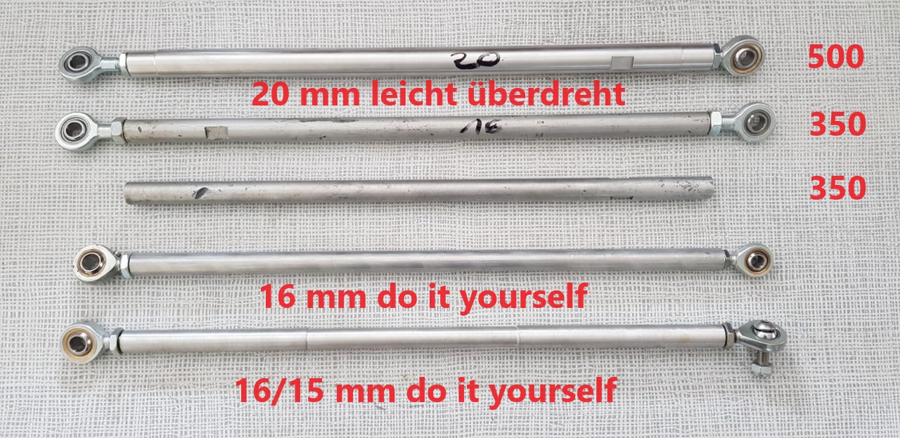 Weiterhin die Variation in der Länge der Vorspannhülsen. Die