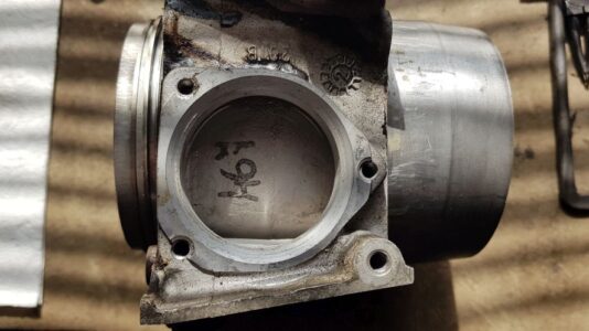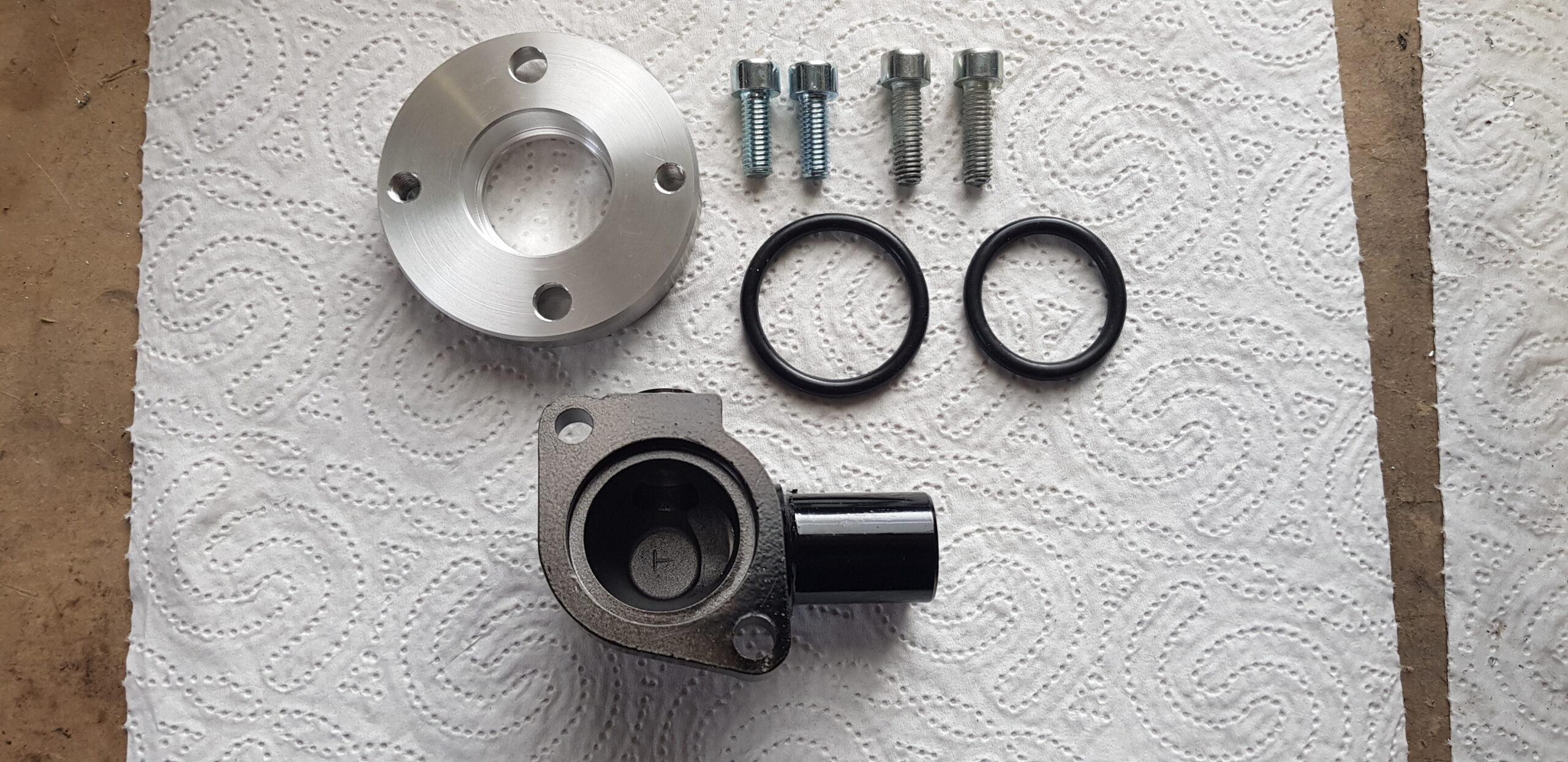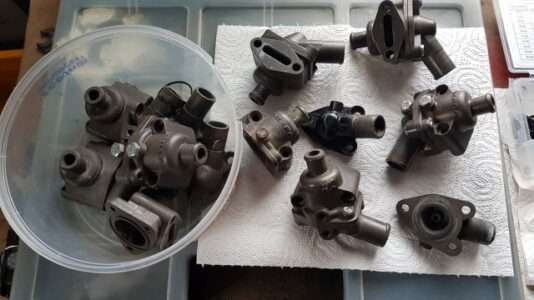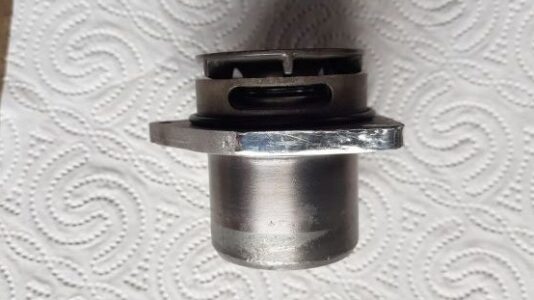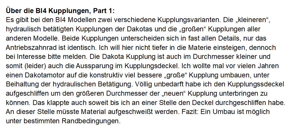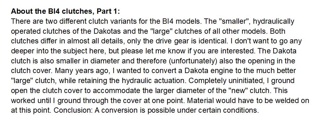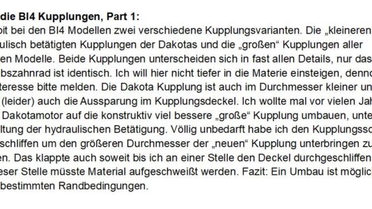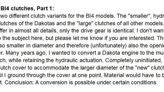 Ich habe kürzlich über Ebay einen gebrauchten 350 cc Dakota Zylinder mit Kolben erworben. Nicht dass ich die Teile brauchen würde, nein, das eigentlich Interessante ist die verbaute Wasserpumpe und das Thermostatgehäuse. Ich hoffte herauszufinden, welche Unterschiede es zu den anderen BI4 Modellen gibt. Erst auf den zweiten Blick sind mir bei der Pumpe, vermutlich die allererste Serie, die Unterschiede zu einer 500 cc Pumpe aufgefallen. Neben einem anderen Gehäuse ist die Einbautiefe 1 mm geringer und der Unterschied im Flügelradspaltmaß 1,50 mm. Ich hatte in meinen 35 BI4 Jahren noch nie so eine Pumpenausführung in den Fingern. Man lernt nie aus