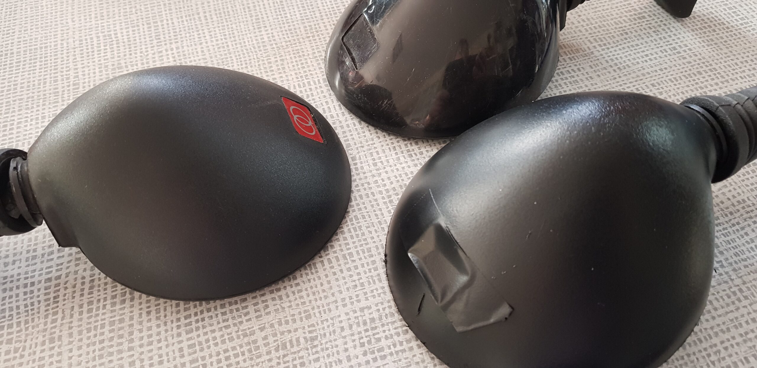 Die Rückspiegel der Saturnos stammen vom italienischen Hersteller VITALONI. Baugleiche Spiegel, aber mit glattem Spiegelkörper wurden z. B. u. a. an einigen Ducatis und 125 cc Gileras verbaut. Statt dem grünen Vitaloni Aufkleber tragen die Saturnos die Gilera Ringe. Vor einigen Jahren gab es für die Ducatis noch Ersatzspiegel zu kaufen. Diese konnten für Saturno Zwecke "aufgehübscht" werden unter Verwendung von Struktur- bzw. Kräusellack. Auch leichte Kratzer lassen sich relativ leicht auspolieren und eine Lage Lack macht den Spiegel wieder "wie neu"