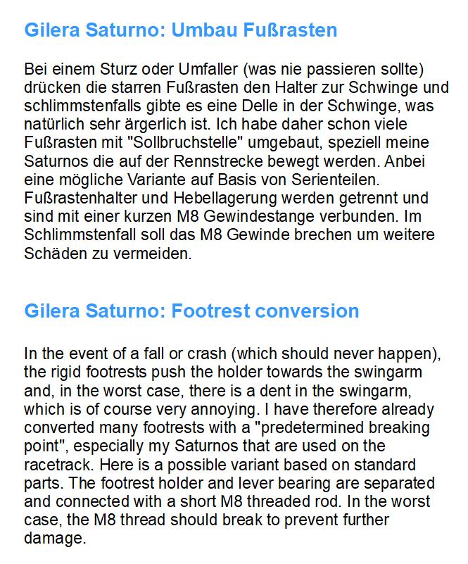 Ich habe mir vor 30 Jahren bei L&W einen Auspuff für die Saturno anpassen lassen auf Basis der MuZ Scorpion Sport Cup Version. Das Ding hatte ein riesiges Volumen, war "flüsterleise", hatte positiven Einfluss auf die Leistungsausbeute, war aber rattenschwer