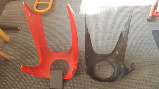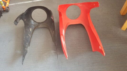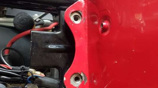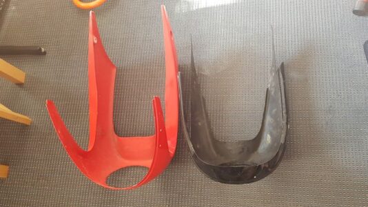 Abgebrochene "Nasen" am Saturno Rücklicht. Warum? Ganz einfach. Die Sitzgummis haben sich über die letzten 35 Jahre gesetzt und damit verringert sich der Abstand zwischen Höcker und Rücklichtglas, gut auf den Fotos zu sehen. Wenn dann im Fahrbetrieb die horizontale Höckerkante dauerhaft gegen das Glas drückt, können die Glasbefestigungsnasen abbrechen. Einfache Abhilfe schafft das Absenken der Gummipuffer der Befestigung. Es sollten mindesten 3 mm Abstand zwischen Höcker und Glas sein. Abgebrochene Nasen lassen sich "leicht" reparieren. Ich verwende dazu AKEMI Industriekleber. Ggf. müssen Drehteile als Ersatz angefertigt werden. Ich biete eine Reparatur an, schickt mir eure defekten Rücklichter und ich beurteile den Aufwand. Natürlich kann ich auch neue Rücklichter anbieten, siehe unter Teile