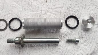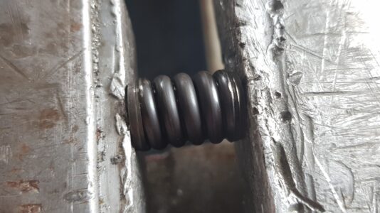 Auch eine Variante der Marzocchi Gabel "Manieren" bei zu bringen. Die Kopplung von zwei Federn mit unterschiedlichen Federraten. Ausgebaut aus einer Saturno von einigen Jahren