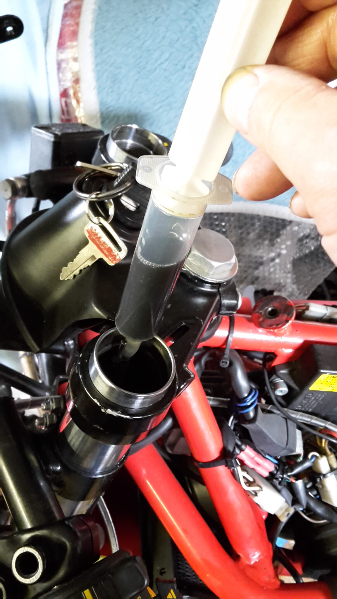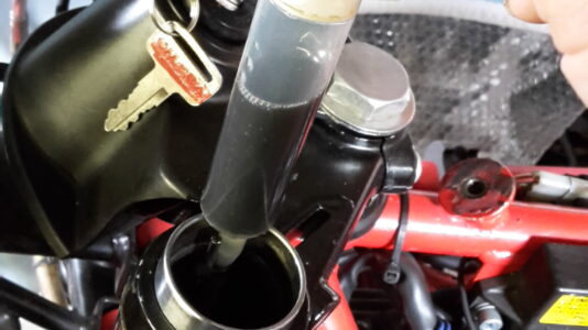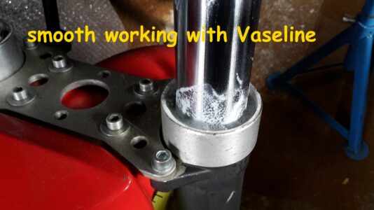 Ausbau der Gabelfedern und aufgebocktem Vorderbau soll die Gabel (mit