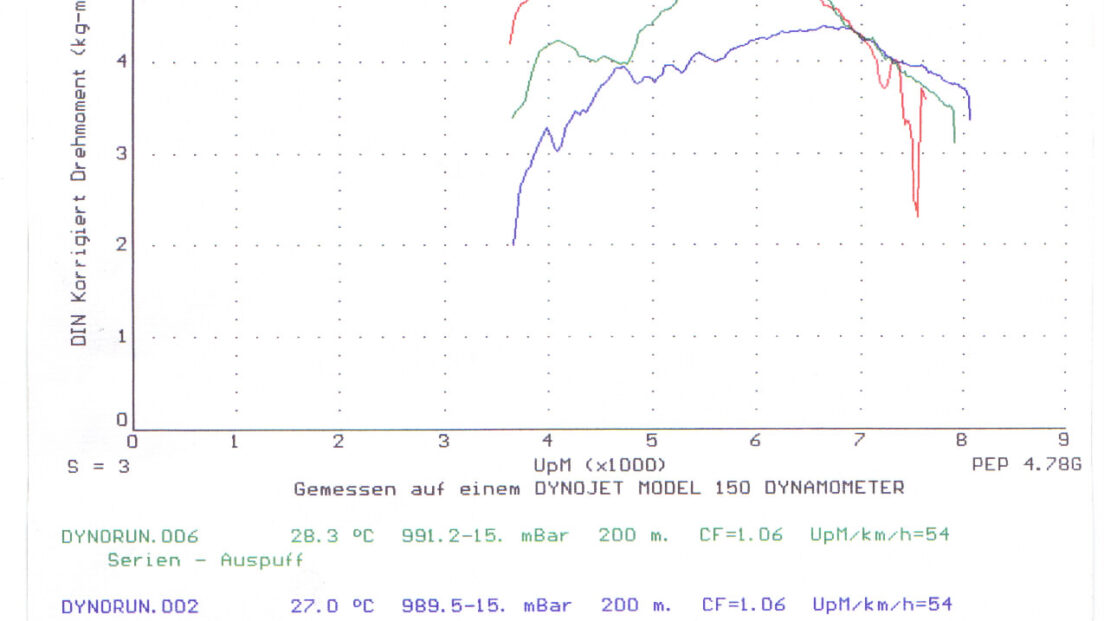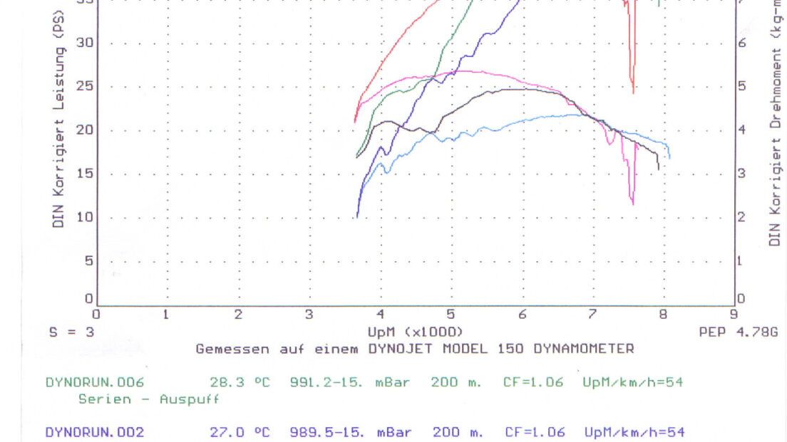 Endtöpfe auf das Leistungsverhalten des Motors zu „erforschen“.