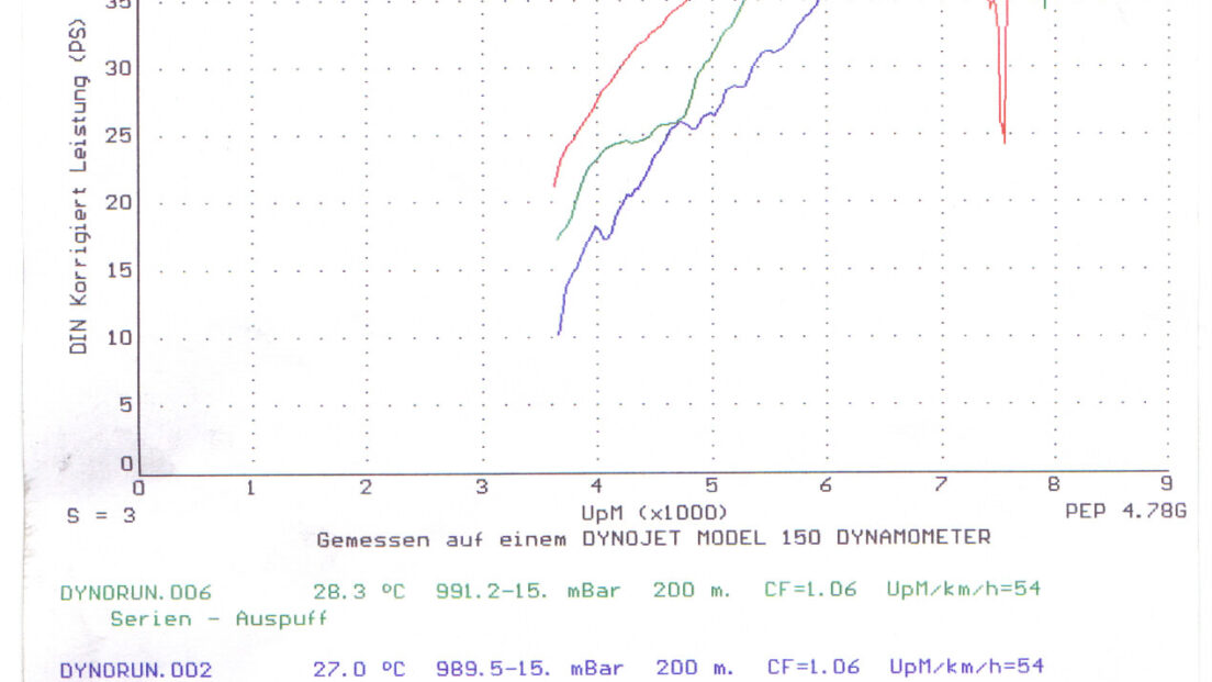 Der ungedämpfte Cup Auspuff war der „Bringer“. Weniger in der