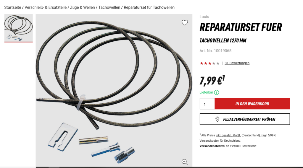 Gilera Saturno: Bei Louis gibt/gab es einen Reparaturset für Tachowellen, der sich für den Ersatz einer defekten, originalen Saturnowelle bestens eignete. Ob auch eine Anwendung in anderen BI4 Modellen möglich wäre, habe ich selber noch nicht ausprobiert.