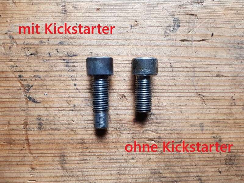 Als Ergänzung die beiden verschiedenen Gehäuseverschlussschrauben. Einmal mit "Nase" als Kickstarteranschlag für alle Motore mit Kickstarter. Die rechte Schraube als reine Verschlussschraube für alle BI4 ohne Kickstarter