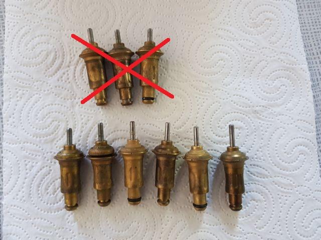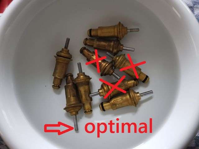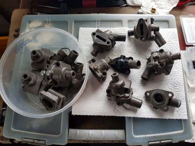 Never ending story? Wollte aus meinen ganzen Einzelteilen funktionsfähige Thermostatgehäuse zusammen bauen. Die gefundenen 9 Thermostate in einer Schüssel mit heißem Wasser übergossen um die Reaktion abzuwarten. Ernüchterndes Fazit: Von 9 Thermostaten reagieren 3 überhaupt nicht, 5 nur mäßig und nur einer fährt den Stift vollständig aus. Nun sind die Dinger ja inzwischen über 30 Jahre alt, da kann man schon einige Fehler erwarten, aber es versagen bis auf ein Thermostat alle anderen 8. Weiteres Fazit: Baut doch mal an euren Gileras die Thermostate aus und testet sie. Ergebnis?