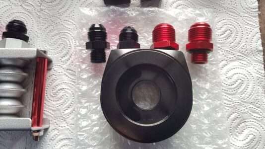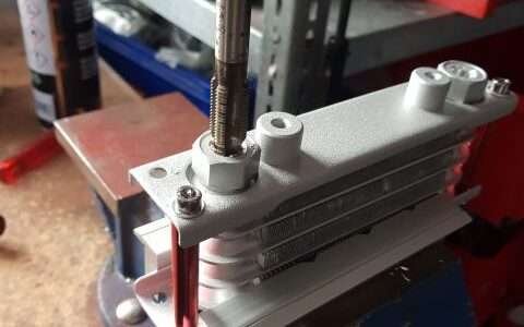11.01.2026: Ölkühler mit DASH 8 Anschlüssen. Ein geneigter Leser hat zu Recht den Verbesserungsvorschlag gemacht, die Schlauchschellen an den Ölleitungen in DASH 8 Schraubanschlüsse zu ändern. Kleines Problem zu Beginn: Am Ölkühler sind die Anschlussgewinde M10 x 1,25, Dafür habe ich keine Adapter gefunden, sondern nur M12 x 1,25 auf DASH 8. Also entsprechendes Gewinde in den ausreichend dimensionierten Stutzen geschnitten. Der Ölfilteradapter hatte M16 x 1,5 auf DASH 10 Stutzen. Dafür habe ich passende Anschlüsse M16 x 1,5 auf DASH 8 gefunden. Im Vorfeld hatte ich bereits ein Schlauchende mit einem geraden DASH 8 Anschluss versehen. War das für ein Gewürge. M. E. war der Schlauchdurchmesser marginal dicker als die Anschlusshülse. Fazit: Beim nächsten Anschluss werde ich die „female“ Seite am Anfang leicht aufschleifen. Dies sollte die Funktion nicht beeinträchtigen. Ich habe allerdings daraus gelernt und einen 1 m Schlauch mit jeweils einem DASH 8 Bogenanschluss bestellt. Den Schlauch kann ich jetzt auf die erforderliche Länge kürzen und brauche nur noch an den Enden 2 Anschlüsse (statt 4) anbringen. Die Anschlüsse am Adapter und Ölkühler habe ich mit UHU-Plus verklebt und liegen auf der Heizung zum Aushärten.Nachtrag 12.01.2926: Bohrerspitze und Gewindebohrer etwas mit Fett versehen, dann bleiben die meisten Bohrspäne hängen und fallen nicht in den Kühler. Dennoch nachträglich mit Preßluft ausblasen. Und last but not least den Kühler so schalten, dass das Rücklauföl zuerst durch den Ölfilter geleitet wird.Wie man eine DASH Verschraubung richtig montiert kann man sich unter Youtube ansehen. Natürlich ist auch viel "Müll" dabei, wie so in den sozialen Medien üblich.