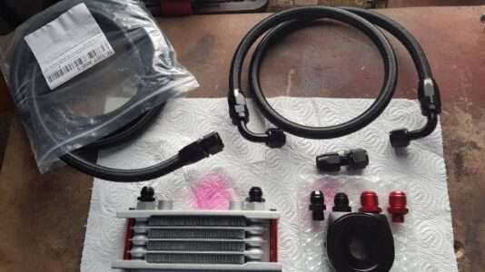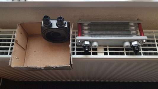 Der NSR Kühler hat allerdings die Kühlwasserstutzen „falsch herum“ angeordnet. Üblicherweise wird das warme Wasser oben zugeführt, kühlt ab und sinkt durch die Dichteverschiebung nach unten. So einfach funktioniert ein Wasserkühler.