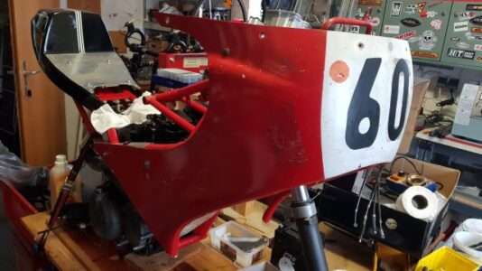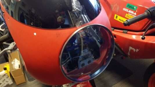 08.01.2026: Ich habe schon vor etwas längerer Zeit von einer Saturno Rennmaschine aus einem Nachlass die Rennverkleidung erworben. Hersteller unbekannt. Vom Rest der Maschinen waren nur noch Kleinteile vorhanden. Zur Verkleidung gab es etwas kuriose Halterungen. Das Geheimnis deren Verwendung konnte ich noch nicht lüften. Ich gehe aber inzwischen davon aus, dass ich mir etwas "gescheites" bauen muss.