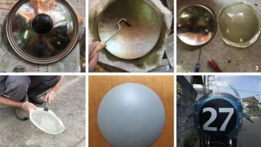 08.01.2026: Wie wandelt man eine Serienverkleidung mit Lampenausschnitt in eine Rennverkleidung ohne Lampenausschnitt um? Ganz einfach! Diese Anregung haben ich in einer japanischen Saturnoseite gefunden. Man nehme einen gewölbten Topfdeckel in der entsprechenden Größe als "Form" zum Laminieren eines GFK Verschlußdeckels. Zum Aushärten des GFK-Harzes braucht es schon wärmere Temperaturen als jetzt im Winter und in der Wohnung will ich das nicht machen, das Zeug stinkt bestialisch.