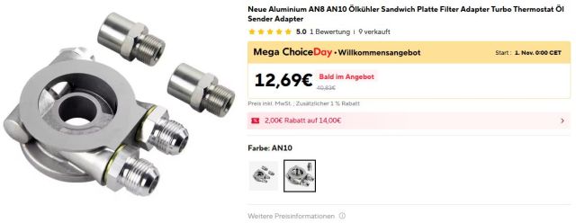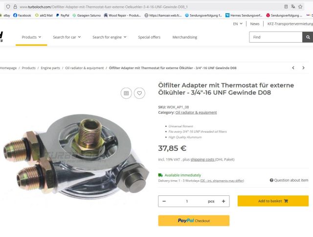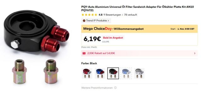 Einen Anbaufertigen Ölkühlersatz für eine Saturno kaufen, kann jeder. Ich wollte mir etwas Eigenes zusammenstellen. Bin natürlich wieder in China fündig geworden. Zunächst die Suche nach einem passenden Adapter. Diese werden in Deutschland ab ca. 30 € (mit Thermostat) aufwärts angeboten. In China kostet der absolut baugleiche Adapter 20 € weniger und es geht noch günstiger für unter 10 €, ohne Thermostat. Der Adapter mit dem Thermostat passt natürlich nicht an den Motor. Ein Thermostat muss nicht sein dachte ich und habe den Anguss nach einkleben eines Drehteils kurzerhand abgesägt, passt! Niedlich kleine Ölkühler gibt es in China natürlich auch. Fortsetzung folgt.