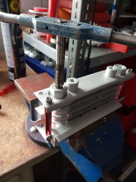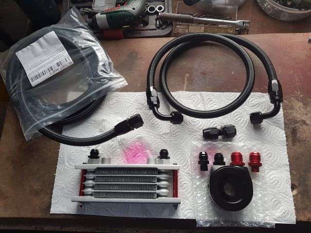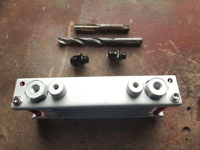 11.01.2026: Ölkühler mit DASH 8 Anschlüssen. Ein geneigter Leser hat zu Recht den Verbesserungsvorschlag gemacht, die Schlauchschellen an den Ölleitungen in DASH 8 Schraubanschlüsse zu ändern. Kleines Problem zu Beginn: Am Ölkühler sind die Anschlussgewinde M10 x 1,25, Dafür habe ich keine Adapter gefunden, sondern nur M12 x 1,25 auf DASH 8. Also entsprechendes Gewinde in den ausreichend dimensionierten Stutzen geschnitten. Der Ölfilteradapter hatte M16 x 1,5 auf DASH 10 Stutzen. Dafür habe ich passende Anschlüsse M16 x 1,5 auf DASH 8 gefunden. Im Vorfeld hatte ich bereits ein Schlauchende mit einem geraden DASH 8 Anschluss versehen. War das für ein Gewürge. M. E. war der Schlauchdurchmesser marginal dicker als die Anschlusshülse. Fazit: Beim nächsten Anschluss werde ich die „female“ Seite am Anfang leicht aufschleifen. Dies sollte die Funktion nicht beeinträchtigen. Ich habe allerdings daraus gelernt und einen 1 m Schlauch mit jeweils einem DASH 8 Bogenanschluss bestellt. Den Schlauch kann ich jetzt auf die erforderliche Länge kürzen und brauche nur noch an den Enden 2 Anschlüsse (statt 4) anbringen. Die Anschlüsse am Adapter und Ölkühler habe ich mit UHU-Plus verklebt und liegen auf der Heizung zum Aushärten.Nachtrag 12.01.2926: Bohrerspitze und Gewindebohrer etwas mit Fett versehen, dann bleiben die meisten Bohrspäne hängen und fallen nicht in den Kühler. Dennoch nachträglich mit Preßluft ausblasen. Und last but not least den Kühler so schalten, dass das Rücklauföl zuerst durch den Ölfilter geleitet wird.Wie man eine DASH Verschraubung richtig montiert kann man sich unter Youtube ansehen. Natürlich ist auch viel "Müll" dabei, wie so in den sozialen Medien üblich.