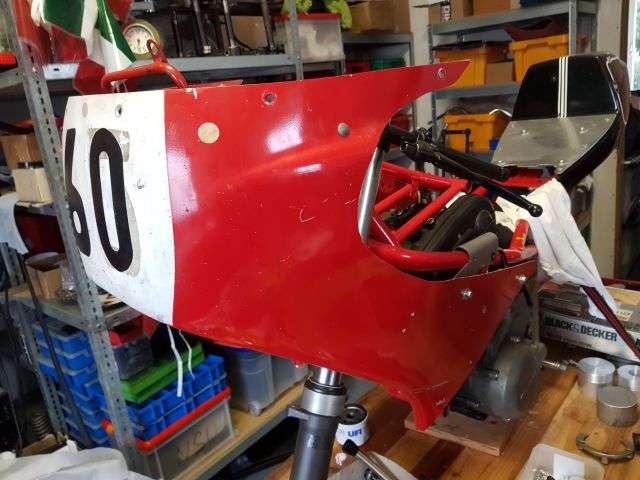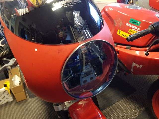 08.01.2026: Ich habe schon vor etwas längerer Zeit von einer Saturno Rennmaschine aus einem Nachlass die Rennverkleidung erworben. Hersteller unbekannt. Vom Rest der Maschinen waren nur noch Kleinteile vorhanden. Zur Verkleidung gab es etwas kuriose Halterungen. Das Geheimnis deren Verwendung konnte ich noch nicht lüften. Ich gehe aber inzwischen davon aus, dass ich mir etwas "gescheites" bauen muss.