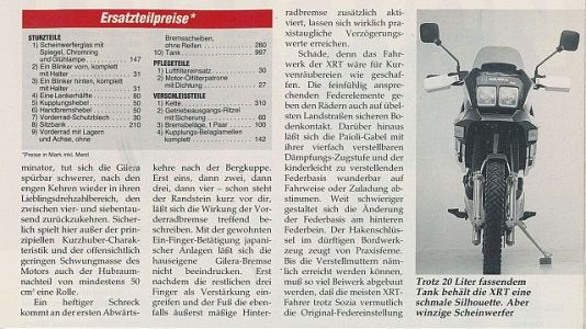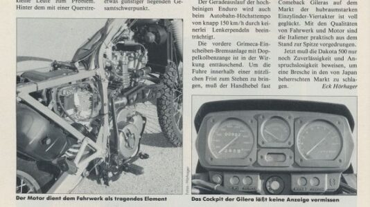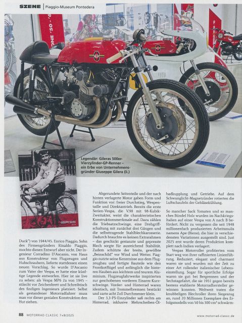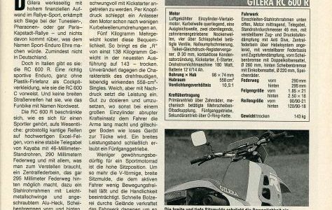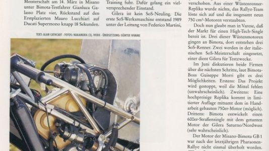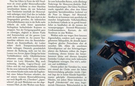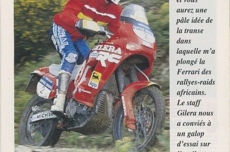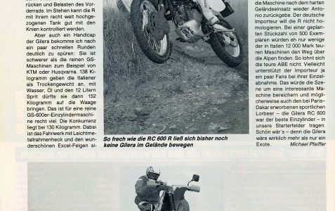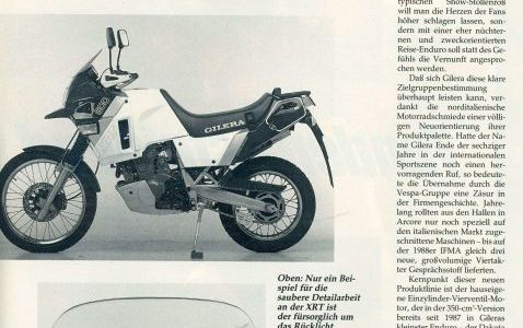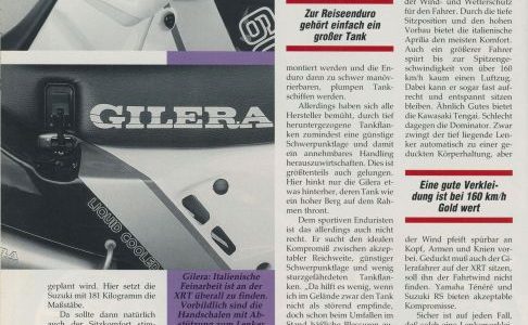 Presseschau II (BI4 + others) - Seitenlayout überarbeitet 17.02.2025- Titelbild (Quelle: Internet) ------------------------------------------------------------------------------------- Aus MOTORRAD CLASSIC, Heft 7+8/2025 über das Piaggio-Museum Pontedera (Quelle: Privatarchiv) ------------------------------------------------------------------------------------- Lieferumfang Gilera 1988 (Quelle: Internet) ------------------------------------------------------------------------------------- Gilera Kalender 1989 (Quelle: Privatarchiv) ------------------------------------------------------------------------------------- Pressemitteilung über das Gilera Racing Team 1992 (Quelle: Privatarchiv) ------------------------------------------------------------------------------------- Gilera Motorrad Sammelkarten, Printed in USA (Quelle: Internet) ------------------------------------------------------------------------------------- Designstudien von Paolo Martin, siehe auch:https://www.bestinsketch.it/index.php/en/best-in-sketch/motorcycles/344-gilera-tg1-3(Quelle: Internet) ------------------------------------------------------------------------------------- Gilera Werbung aus diversen Fachzeitschriften (Quelle: Internet) ------------------------------------------------------------------------------------- Aus MO, Heft 6, Juni 1993 über die GB 1 (Quelle: Privatarchiv) ------------------------------------------------------------------------------------- Aus PS, Heft 12, Dezember 1993 über die GB 1 (Quelle: Privatarchiv) ------------------------------------------------------------------------------------- Aus PS, Heft 4, April 1993 über die GB 1 (Quelle: Privatarchiv) ------------------------------------------------------------------------------------- Aus MOTO 1/Frankreich, Heft 69/1989 über die Gileras MX1 125, XR1 125 und XRT 600(Quelle: Privatarchiv) ------------------------------------------------------------------------------------- Aus MO, Heft 6/1988 über die Gilera Dakota 500 (Quelle: Privatarchiv) ------------------------------------------------------------------------------------- Gilera Brochüre über die Teilnahme an der Paris Dakar 1990(Quelle: Privatarchiv) ------------------------------------------------------------------------------------- Aus Motociclismo d´Epoca/Italien, Heft 1/2021 über die Gilera RC 600 Dakar(Quelle: Privatarchiv) ------------------------------------------------------------------------------------- Aus Super Moto Technica/Italien, Heft 09, 1992 (Quelle: Internet) ------------------------------------------------------------------------------------- Aus Moto-Revue/Frankreich, Heft 3.048/1992 über die Gilera RC 750 R(Quelle: Privatarchiv) ------------------------------------------------------------------------------------- Vergleich Gilera RC 600 Paris Dakar mit RC 600 (Blechtank), Italien (Quelle: unbekannt) ------------------------------------------------------------------------------------- Aus Moto-Revue/Frankreich, Heft 2.931/1990 über die Gilera RC 600 Dakar(Quelle: Privatarchiv) ------------------------------------------------------------------------------------- Aus MOTO 1/Frankreich, Heft 88/1990 über die Gilera RC 600 Marathon (Quelle: Privatarchiv) ------------------------------------------------------------------------------------- Prospekt XRT 1988 (Quelle: Privatarchiv) ------------------------------------------------------------------------------------- Aus MOTO JOURNAL/Frankreich, Heft 872/1988 über die Gilera 600 XRT(Quelle: Privatarchiv) ------------------------------------------------------------------------------------- Aus PS, Heft 8/1988 über Kurzvorstellung Gilera Saturno und XRT 600(Quelle: Privatarchiv) ------------------------------------------------------------------------------------- Aus PS, Heft 10/1989 über die Gilera XRT 600 (Quelle: Privatarchiv) ------------------------------------------------------------------------------------- Aus PS, Heft 2/1990 über einen Enduro Vergleichstest u. a. mit der Gilera XRT 600(Quelle: Privatarchiv) ------------------------------------------------------------------------------------- Aus MOTORRAD, Heft 13/1988 über die Gilera XRT 600 (Quelle: Privatarchiv) ------------------------------------------------------------------------------------- Aus MOTORRAD, Heft 7/1989 über die Gilera XRT 600 (Quelle: Privatarchiv) ------------------------------------------------------------------------------------- Aus MOTORRAD, Heft 8/1989 über Einzylinder Reise-Enduros u. a. mit der Gilera XRT 600(Quelle: Privatarchiv) ------------------------------------------------------------------------------------- Prospekt RC 600 C (Quelle: Privatarchiv) ------------------------------------------------------------------------------------- Aus MOTORRAD, Heft 15/1989 über die Gilera RC 600 und 125 SP 01(Quelle: Privatarchiv) ------------------------------------------------------------------------------------- Aus Moto revue/Frankreich, Heft 3092/1992 über einen Vergleichstest Kawasaki 650 KLX mit der Gilera RC 600(Quelle: Privatarchiv) ------------------------------------------------------------------------------------- Aus PS, Heft 3/1990 über die Gilera RC 600 (Quelle: Privatarchiv) ------------------------------------------------------------------------------------- Testbericht RC 600 (Quelle: Internet) ------------------------------------------------------------------------------------- Gilera Werbung (Quelle: Privatarchiv) ------------------------------------------------------------------------------------- Aus MOTORRAD, Heft 8/1990 über einen Enduro-Vergleichstest u. a. mit der Gilera RC 600(Quelle: Privatarchiv) ------------------------------------------------------------------------------------- Aus MOTO 1/Frankreich, Heft 88/1990 über die Gilera RC 600 Marathon(Quelle: Privatarchiv) ------------------------------------------------------------------------------------- Aus MOTORRAD, Heft 15/1991 ü