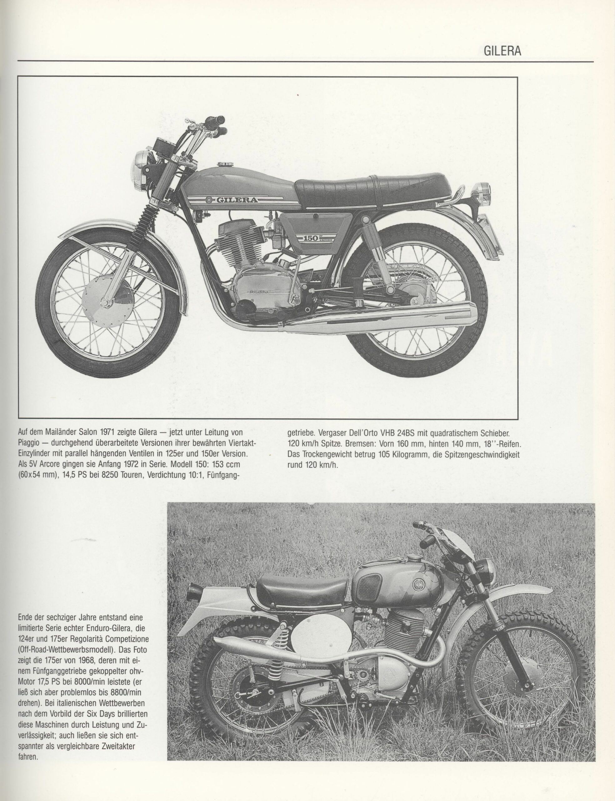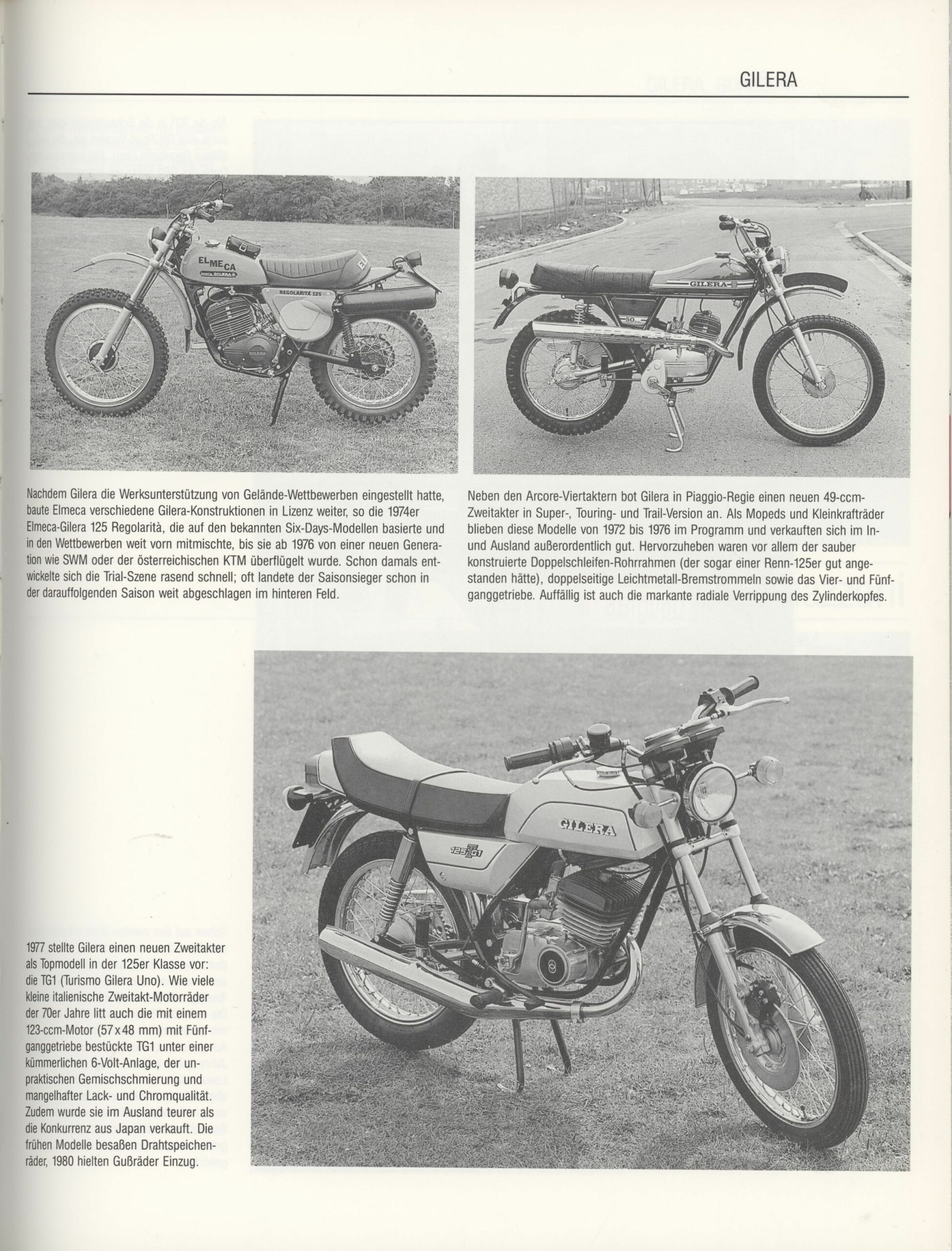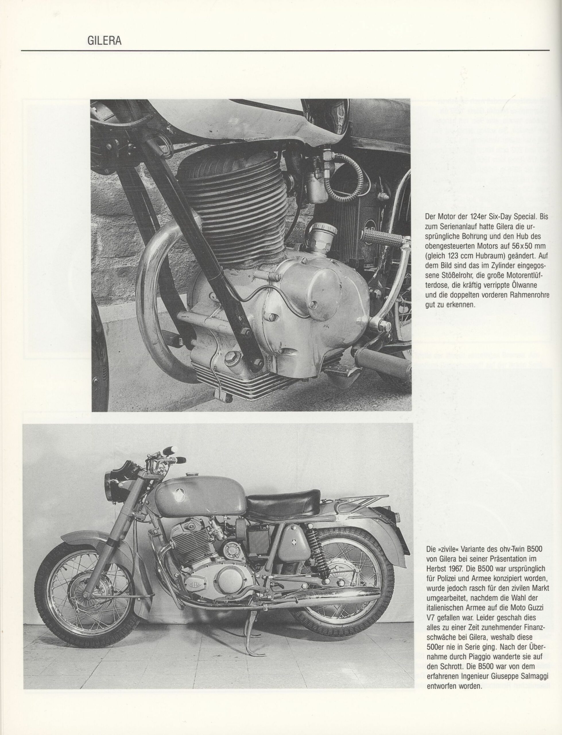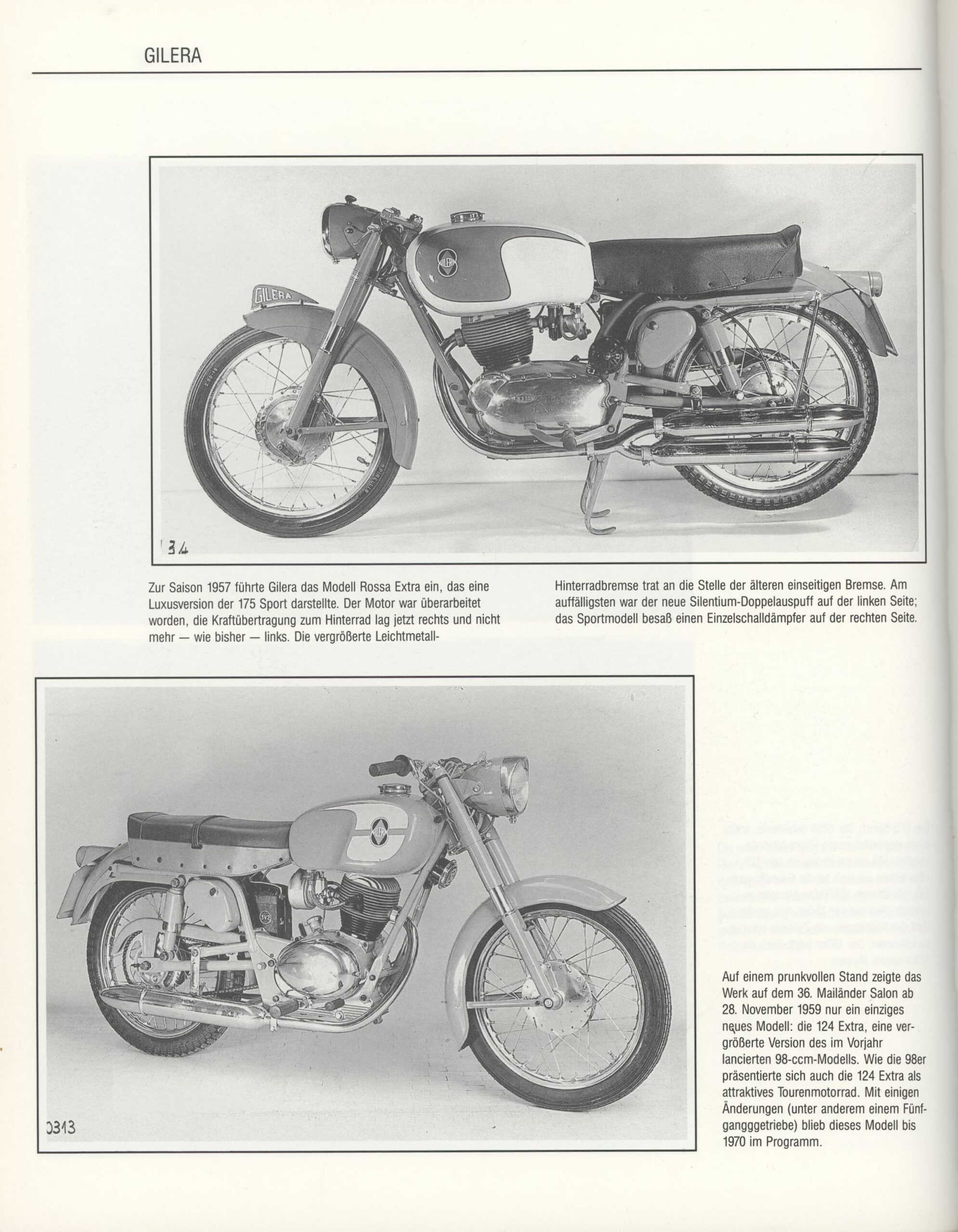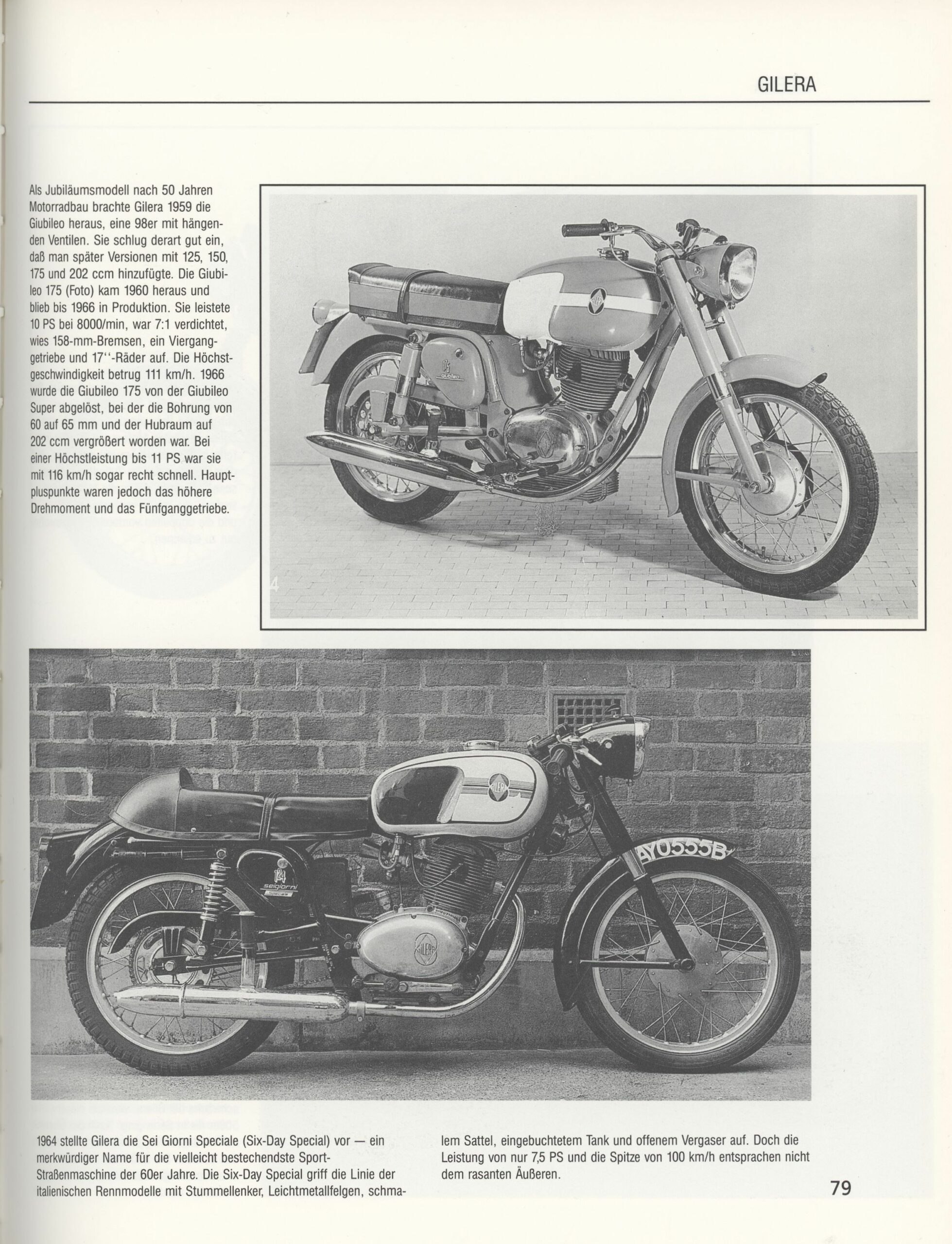 Presseschau III (1961 – BI4) - Seitenlayout überarbeitet 11.08.2024- Titelbild (Quelle: Internet) ------------------------------------------------------------------------------------- Bunte Mischung Gilera Werbung (Quelle: Internet) ------------------------------------------------------------------------------------- Piaggio/Gilera Broschüre 1969 (Quelle: Privatarchiv) ------------------------------------------------------------------------------------- Werbung Gilera 125 Zweitakt (Quelle: Internet) ------------------------------------------------------------------------------------- Werbung Gilera 200 Zweitakt (Quelle: Internet) ------------------------------------------------------------------------------------- Werbung Gilera 250 Zweitakt (Quelle: Internet) ------------------------------------------------------------------------------------- Datenblatt Gilera 125 XR2 Marathon (Quelle: Internet) ------------------------------------------------------------------------------------- Datenblatt Gilera 125 Top Rally (Quelle: Internet) ------------------------------------------------------------------------------------- Aus MOTALIA, Heft 250/2011 über die Gilera CX 125 (Quelle: Privatarchiv) ------------------------------------------------------------------------------------- Aus Gummikuh, Heft 1/1994 über die Gilera Arcore 150 (Quelle: Privatarchiv) ------------------------------------------------------------------------------------- Aus Gummikuh, Heft 2/1991 über die Gilera Arcore 150 (Quelle: Privatarchiv) ------------------------------------------------------------------------------------- Aus Oldtimer PRAXIS, Heft 5/2022 über den Motor einer Gilera Arcore (Quelle: Privatarchiv) ------------------------------------------------------------------------------------- Aus dem Buch Italienische Motorrad Klassiker Band 1 von Mick Walker über die Gilera Produktpalette (Quelle: Privatarchiv) ------------------------------------------------------------------------------------- Aus MOTOCICLISMO/Italien, Ausgabe ? über die Gilera Elmeca 125 Regolarita(Quelle: Internet) ------------------------------------------------------------------------------------- Aus Das MOTORRAD, Heft 7/1963 über Gilera wieder dabei (Quelle: Privatarchiv) ------------------------------------------------------------------------------------- Aus MOTO CICLISMO d´Epoca/Italien, Heft 11/2010 über die Gilera Giubileo 98 und 98 Extra(Quelle: Privatarchiv) ------------------------------------------------------------------------------------- Aus Moto revue/Frankreich, Heft 3001/1991 über die Gilera 125 CX(Quelle: Privatarchiv) ------------------------------------------------------------------------------------- Aus MOTO JOURNAL/Frankreich, Heft 872/1988 über einen 125 cc Vergleichstest u. a. mit der Gilera 125 RRT Nebraska (Quelle: Privatarchiv) ------------------------------------------------------------------------------------- Aus la vie de LA MOTO/Frankreich, Heft 779/2014 über die Gilera 124/5V Regolarita(Quelle: Privatarchiv) ------------------------------------------------------------------------------------- Aus la vie de LA MOTO/Frankreich, Heft 872/2016 über die Gilera 300 B(Quelle: Privatarchiv) ------------------------------------------------------------------------------------- Aus Moto Ciclismo d`Epoca/Italien, Heft 6/1997 über "Indimenticabili Gilera"(Quelle: Privatarchiv) ------------------------------------------------------------------------------------- Über die Gilera 175 R Competizione (Quelle: Internet) ------------------------------------------------------------------------------------- Aus Legend Bike/Italien, Heft 90/2000 über die Gilera 124 Regolarita Casa(Quelle: Privatarchiv) ------------------------------------------------------------------------------------- Aus MOTO CICLISMO/Italien, Heft 12/2002 über die Gilera 5V Arcore 125-150(Quelle: Privatarchiv) ------------------------------------------------------------------------------------- Aus MOTO JOURNAL/Frankreich, Heft 340/1977 über die Gilera 125 GR1(Quelle: Privatarchiv) ------------------------------------------------------------------------------------- Aus motosprint extra/Italien, Ausgabe 1987 über diverse Gilera 125(Quelle: Internet) ------------------------------------------------------------------------------------- Werbung über die Gilera C1 (Quelle: Internet) ------------------------------------------------------------------------------------- Werbung über die Gilera C2 (Quelle: Internet) ------------------------------------------------------------------------------------- Bericht über die Gilera E1 (Quelle: Internet) ------------------------------------------------------------------------------------- Gilera Prospekt über die 125 C2 bzw. E1 (Quelle: Internet) ------------------------------------------------------------------------------------- Bericht über die 125 cc Moto Cross Modelle (Quelle: Internet) ------------------------------------------------------------------------------------- Bericht über die ELMECA Gilera 125 Cross (Quelle: Internet) ------------------------------------------------------------------------------------- Aus Classic Bike/GB, Heft 153/1992 über eine Gilera 175 Rossa Extra(Quelle: Privatarchiv) ------------------------------------------------------------------------------------- Aus Classic Bike/GB, Heft 145/1992 über "The Saturno People"(Quelle: Privatarchiv) ------------------------------------------------------------------------------------- Aus Das MOTORRAD, Heft 11/1964 über das Gilera Gespann von Camathias (Quelle: Privatarchiv) ------------------------------------------------------------------------------------- Aus Das MOTORRAD, Heft 25/1968 über die neue 500er Gilera(Quelle: Privatarchiv) ------------------------------------------------------------------------------------- Gilera Prospekt über 50 Touring-Mokick, 50 RS-Touring, 50 RS-Trial und Strada 150(Quelle: Privatarchiv