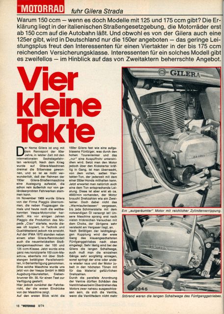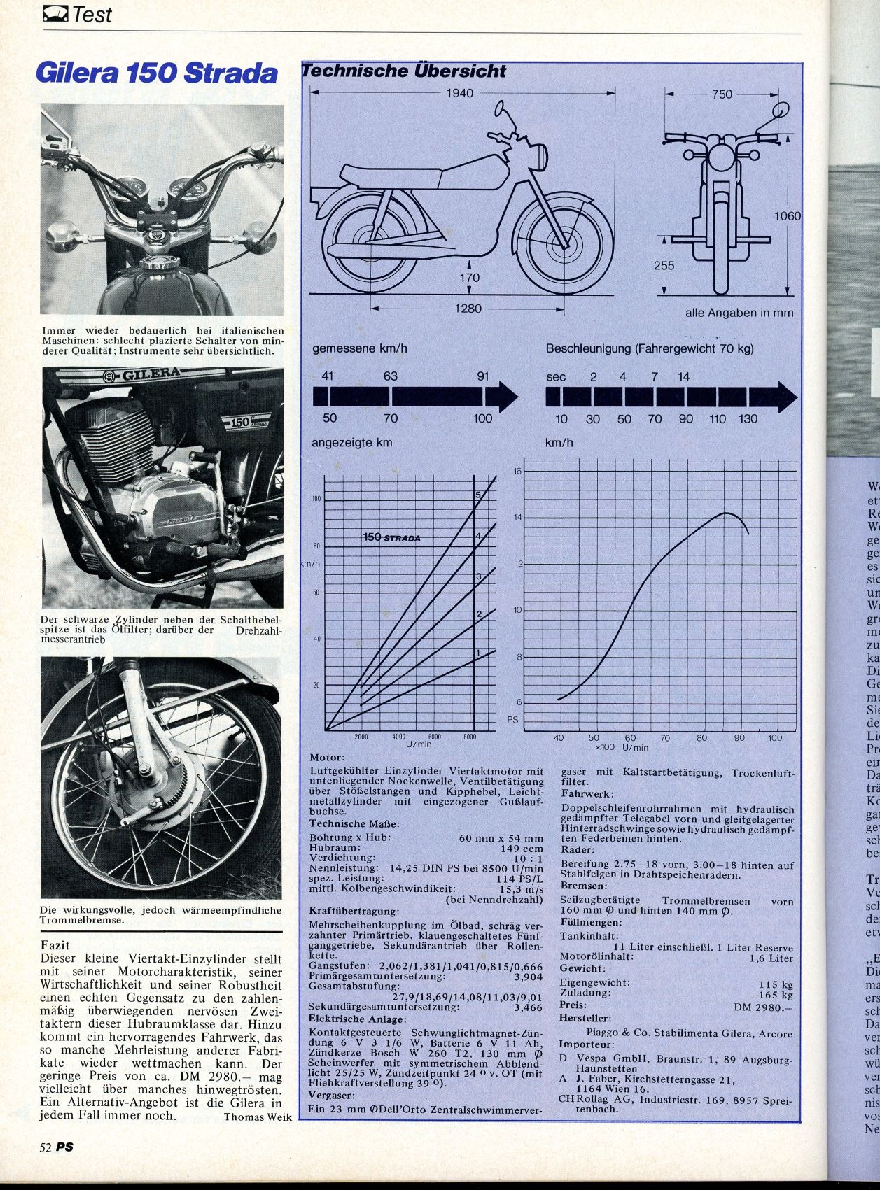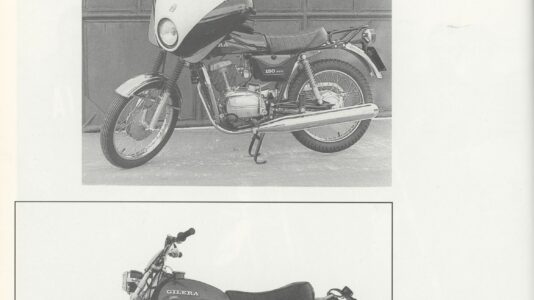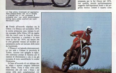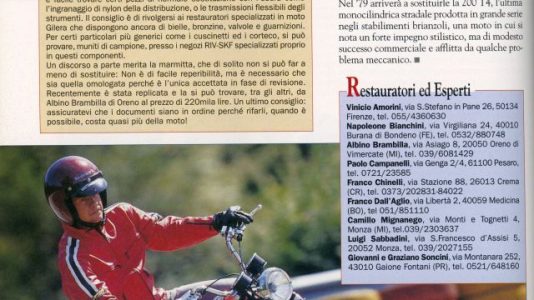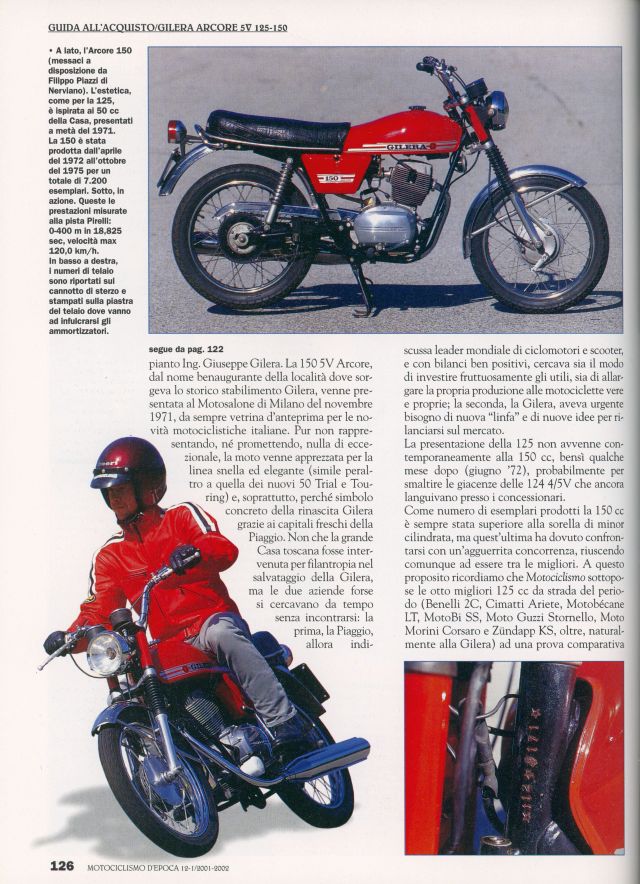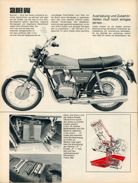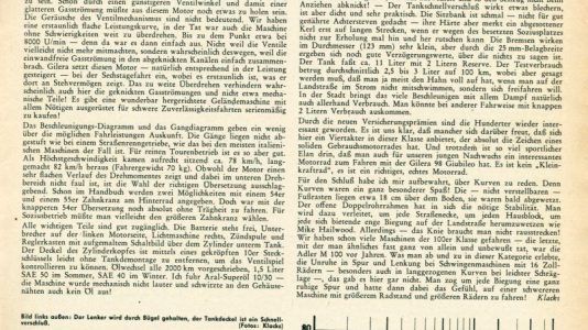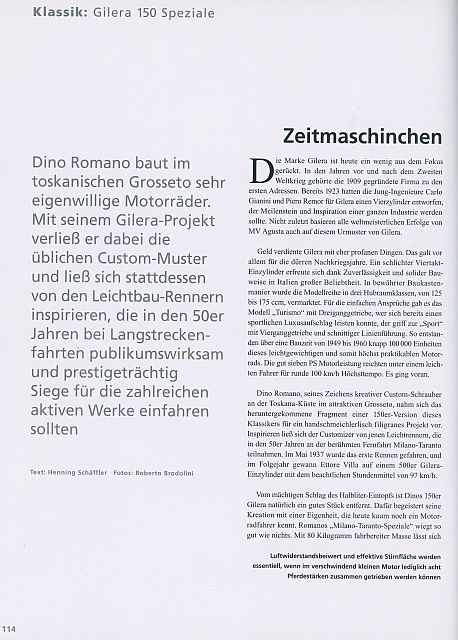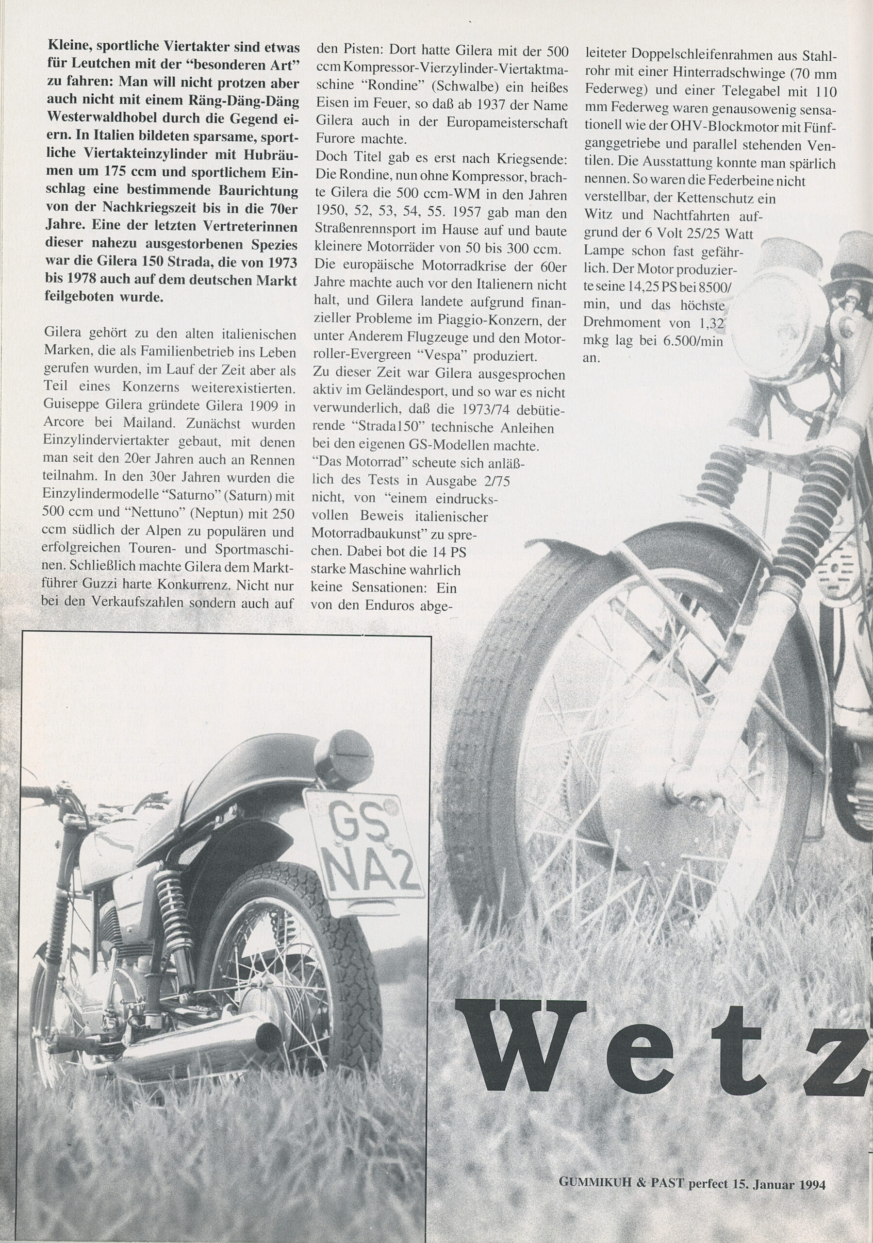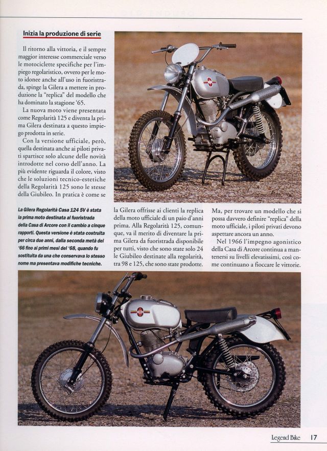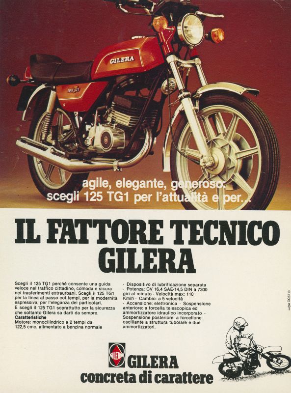 Presseschau III (1961 – BI4) - Seitenlayout überarbeitet 11.08.2024- Titelbild (Quelle: Internet) ------------------------------------------------------------------------------------- Bunte Mischung Gilera Werbung (Quelle: Internet) ------------------------------------------------------------------------------------- Piaggio/Gilera Broschüre 1969 (Quelle: Privatarchiv) ------------------------------------------------------------------------------------- Werbung Gilera 125 Zweitakt (Quelle: Internet) ------------------------------------------------------------------------------------- Werbung Gilera 200 Zweitakt (Quelle: Internet) ------------------------------------------------------------------------------------- Werbung Gilera 250 Zweitakt (Quelle: Internet) ------------------------------------------------------------------------------------- Datenblatt Gilera 125 XR2 Marathon (Quelle: Internet) ------------------------------------------------------------------------------------- Datenblatt Gilera 125 Top Rally (Quelle: Internet) ------------------------------------------------------------------------------------- Aus MOTALIA, Heft 250/2011 über die Gilera CX 125 (Quelle: Privatarchiv) ------------------------------------------------------------------------------------- Aus Gummikuh, Heft 1/1994 über die Gilera Arcore 150 (Quelle: Privatarchiv) ------------------------------------------------------------------------------------- Aus Gummikuh, Heft 2/1991 über die Gilera Arcore 150 (Quelle: Privatarchiv) ------------------------------------------------------------------------------------- Aus Oldtimer PRAXIS, Heft 5/2022 über den Motor einer Gilera Arcore (Quelle: Privatarchiv) ------------------------------------------------------------------------------------- Aus dem Buch Italienische Motorrad Klassiker Band 1 von Mick Walker über die Gilera Produktpalette (Quelle: Privatarchiv) ------------------------------------------------------------------------------------- Aus MOTOCICLISMO/Italien, Ausgabe ? über die Gilera Elmeca 125 Regolarita(Quelle: Internet) ------------------------------------------------------------------------------------- Aus Das MOTORRAD, Heft 7/1963 über Gilera wieder dabei (Quelle: Privatarchiv) ------------------------------------------------------------------------------------- Aus MOTO CICLISMO d´Epoca/Italien, Heft 11/2010 über die Gilera Giubileo 98 und 98 Extra(Quelle: Privatarchiv) ------------------------------------------------------------------------------------- Aus Moto revue/Frankreich, Heft 3001/1991 über die Gilera 125 CX(Quelle: Privatarchiv) ------------------------------------------------------------------------------------- Aus MOTO JOURNAL/Frankreich, Heft 872/1988 über einen 125 cc Vergleichstest u. a. mit der Gilera 125 RRT Nebraska (Quelle: Privatarchiv) ------------------------------------------------------------------------------------- Aus la vie de LA MOTO/Frankreich, Heft 779/2014 über die Gilera 124/5V Regolarita(Quelle: Privatarchiv) ------------------------------------------------------------------------------------- Aus la vie de LA MOTO/Frankreich, Heft 872/2016 über die Gilera 300 B(Quelle: Privatarchiv) ------------------------------------------------------------------------------------- Aus Moto Ciclismo d`Epoca/Italien, Heft 6/1997 über "Indimenticabili Gilera"(Quelle: Privatarchiv) ------------------------------------------------------------------------------------- Über die Gilera 175 R Competizione (Quelle: Internet) ------------------------------------------------------------------------------------- Aus Legend Bike/Italien, Heft 90/2000 über die Gilera 124 Regolarita Casa(Quelle: Privatarchiv) ------------------------------------------------------------------------------------- Aus MOTO CICLISMO/Italien, Heft 12/2002 über die Gilera 5V Arcore 125-150(Quelle: Privatarchiv) ------------------------------------------------------------------------------------- Aus MOTO JOURNAL/Frankreich, Heft 340/1977 über die Gilera 125 GR1(Quelle: Privatarchiv) ------------------------------------------------------------------------------------- Aus motosprint extra/Italien, Ausgabe 1987 über diverse Gilera 125(Quelle: Internet) ------------------------------------------------------------------------------------- Werbung über die Gilera C1 (Quelle: Internet) ------------------------------------------------------------------------------------- Werbung über die Gilera C2 (Quelle: Internet) ------------------------------------------------------------------------------------- Bericht über die Gilera E1 (Quelle: Internet) ------------------------------------------------------------------------------------- Gilera Prospekt über die 125 C2 bzw. E1 (Quelle: Internet) ------------------------------------------------------------------------------------- Bericht über die 125 cc Moto Cross Modelle (Quelle: Internet) ------------------------------------------------------------------------------------- Bericht über die ELMECA Gilera 125 Cross (Quelle: Internet) ------------------------------------------------------------------------------------- Aus Classic Bike/GB, Heft 153/1992 über eine Gilera 175 Rossa Extra(Quelle: Privatarchiv) ------------------------------------------------------------------------------------- Aus Classic Bike/GB, Heft 145/1992 über "The Saturno People"(Quelle: Privatarchiv) ------------------------------------------------------------------------------------- Aus Das MOTORRAD, Heft 11/1964 über das Gilera Gespann von Camathias (Quelle: Privatarchiv) ------------------------------------------------------------------------------------- Aus Das MOTORRAD, Heft 25/1968 über die neue 500er Gilera(Quelle: Privatarchiv) ------------------------------------------------------------------------------------- Gilera Prospekt über 50 Touring-Mokick, 50 RS-Touring, 50 RS-Trial und Strada 150(Quelle: Privatarchiv