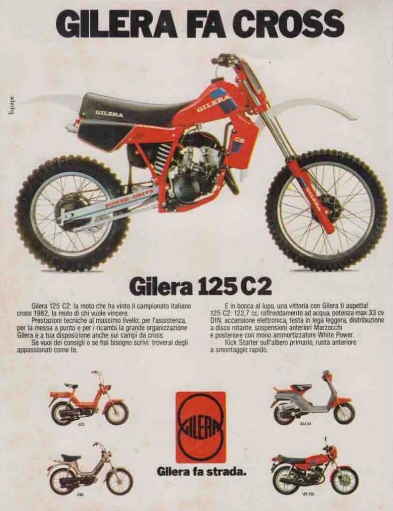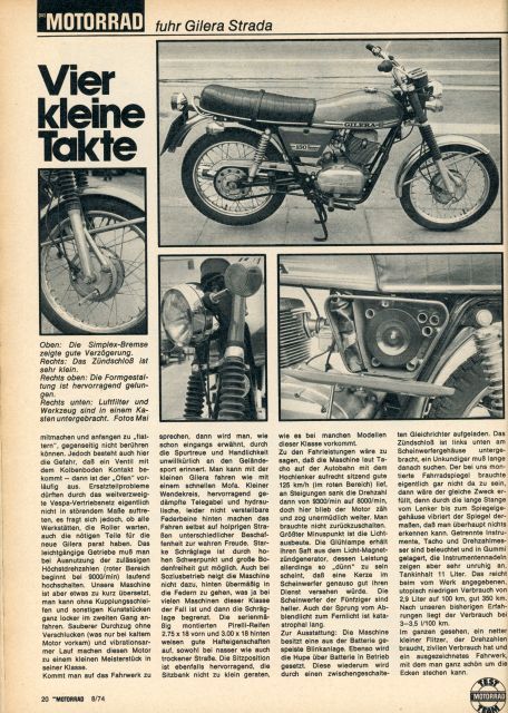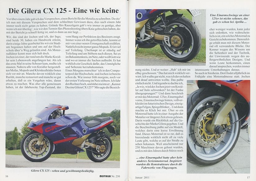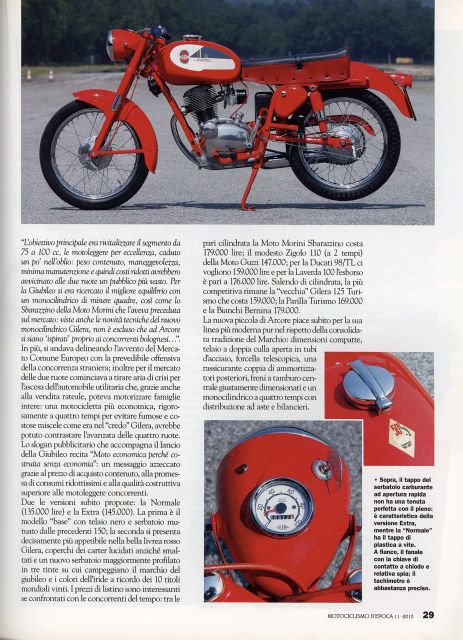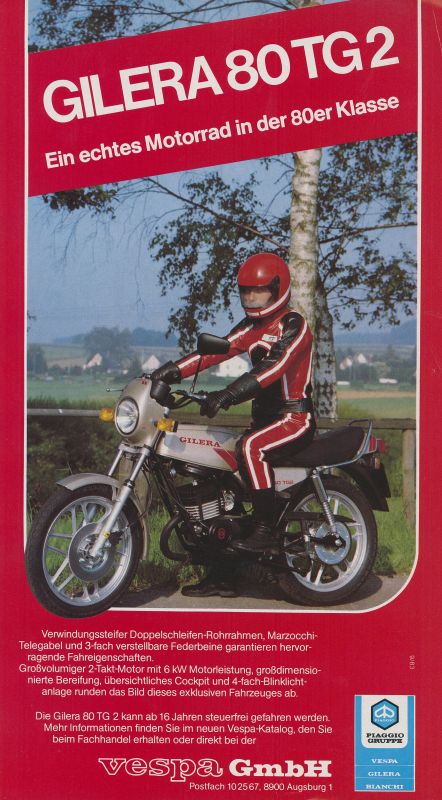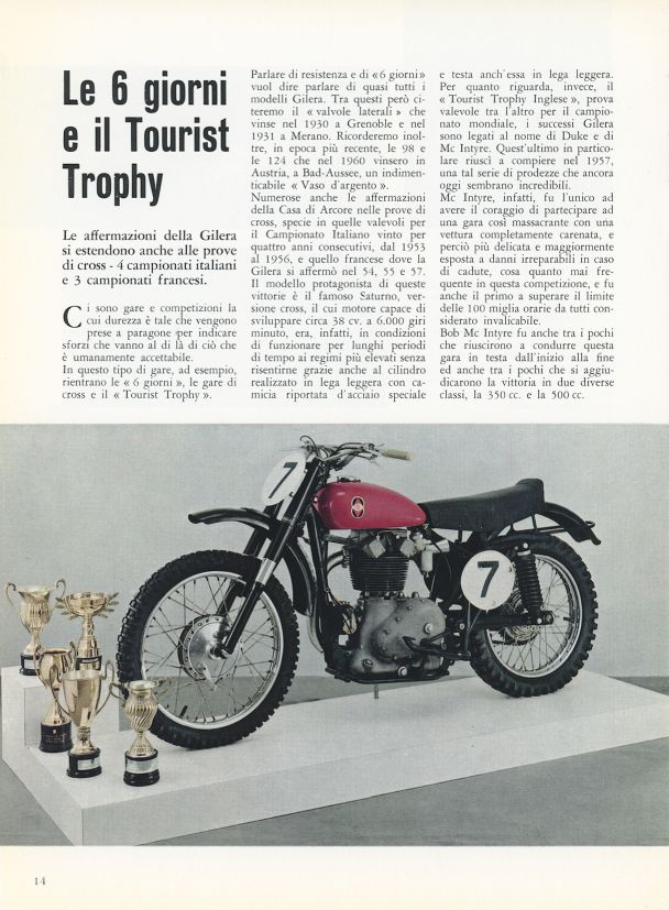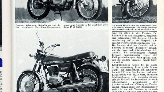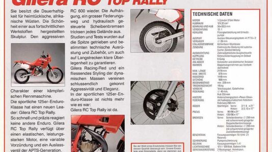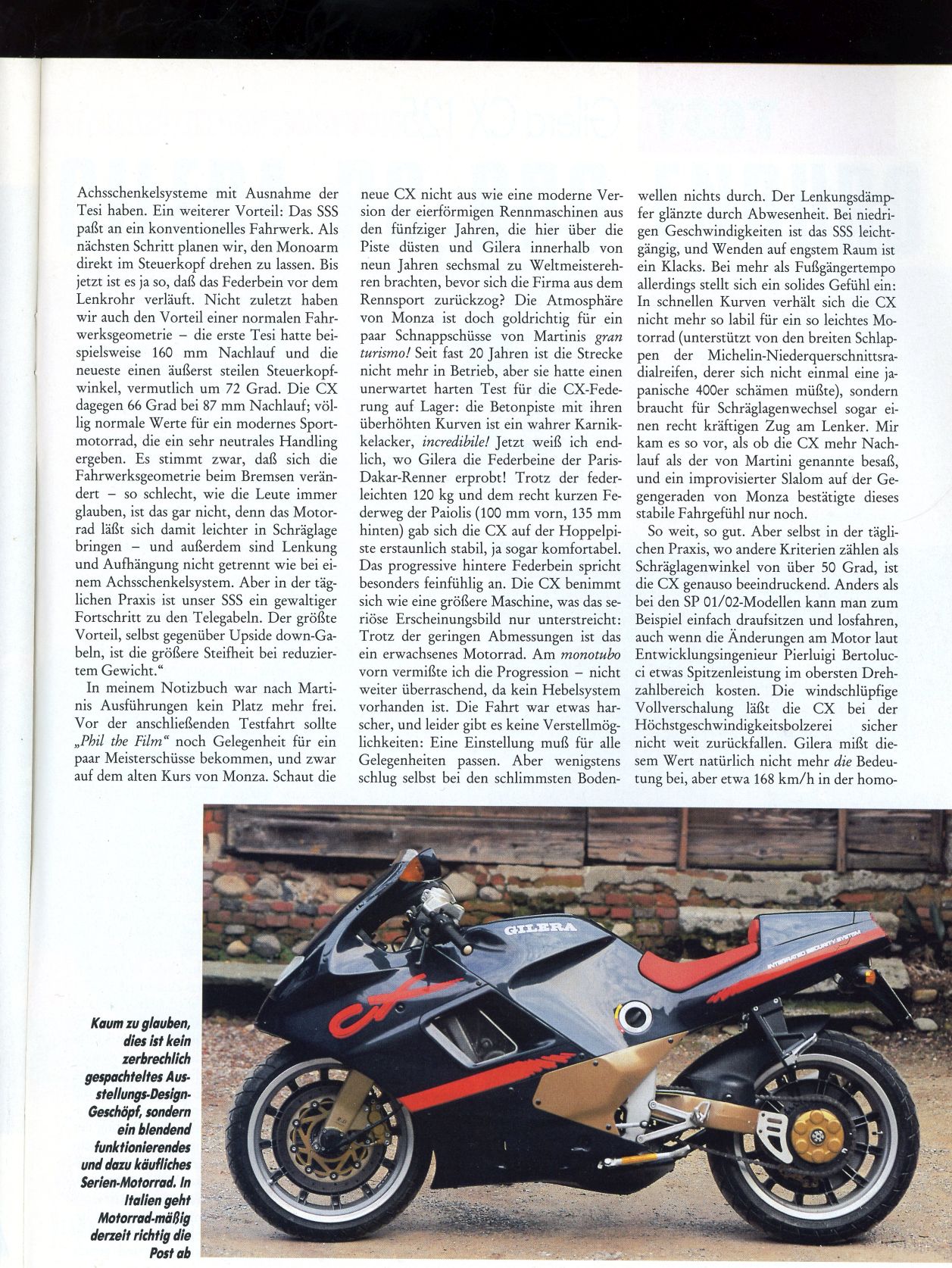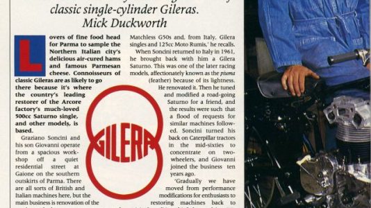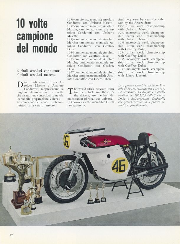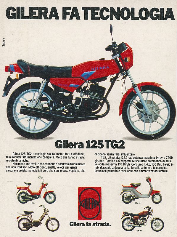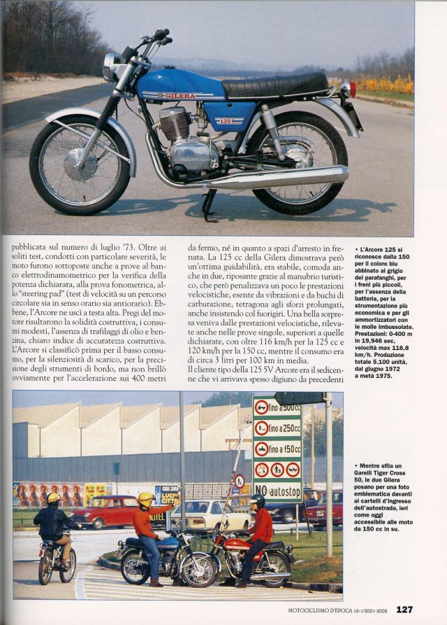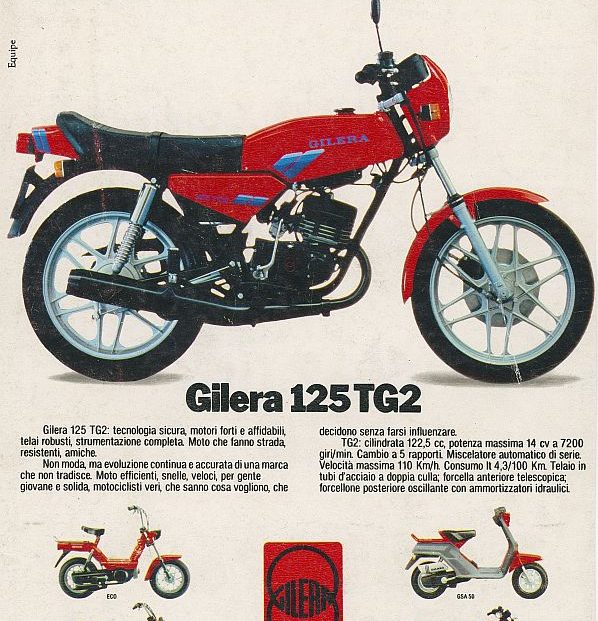 Presseschau III (1961 – BI4) - Seitenlayout überarbeitet 11.08.2024- Titelbild (Quelle: Internet) ------------------------------------------------------------------------------------- Bunte Mischung Gilera Werbung (Quelle: Internet) ------------------------------------------------------------------------------------- Piaggio/Gilera Broschüre 1969 (Quelle: Privatarchiv) ------------------------------------------------------------------------------------- Werbung Gilera 125 Zweitakt (Quelle: Internet) ------------------------------------------------------------------------------------- Werbung Gilera 200 Zweitakt (Quelle: Internet) ------------------------------------------------------------------------------------- Werbung Gilera 250 Zweitakt (Quelle: Internet) ------------------------------------------------------------------------------------- Datenblatt Gilera 125 XR2 Marathon (Quelle: Internet) ------------------------------------------------------------------------------------- Datenblatt Gilera 125 Top Rally (Quelle: Internet) ------------------------------------------------------------------------------------- Aus MOTALIA, Heft 250/2011 über die Gilera CX 125 (Quelle: Privatarchiv) ------------------------------------------------------------------------------------- Aus Gummikuh, Heft 1/1994 über die Gilera Arcore 150 (Quelle: Privatarchiv) ------------------------------------------------------------------------------------- Aus Gummikuh, Heft 2/1991 über die Gilera Arcore 150 (Quelle: Privatarchiv) ------------------------------------------------------------------------------------- Aus Oldtimer PRAXIS, Heft 5/2022 über den Motor einer Gilera Arcore (Quelle: Privatarchiv) ------------------------------------------------------------------------------------- Aus dem Buch Italienische Motorrad Klassiker Band 1 von Mick Walker über die Gilera Produktpalette (Quelle: Privatarchiv) ------------------------------------------------------------------------------------- Aus MOTOCICLISMO/Italien, Ausgabe ? über die Gilera Elmeca 125 Regolarita(Quelle: Internet) ------------------------------------------------------------------------------------- Aus Das MOTORRAD, Heft 7/1963 über Gilera wieder dabei (Quelle: Privatarchiv) ------------------------------------------------------------------------------------- Aus MOTO CICLISMO d´Epoca/Italien, Heft 11/2010 über die Gilera Giubileo 98 und 98 Extra(Quelle: Privatarchiv) ------------------------------------------------------------------------------------- Aus Moto revue/Frankreich, Heft 3001/1991 über die Gilera 125 CX(Quelle: Privatarchiv) ------------------------------------------------------------------------------------- Aus MOTO JOURNAL/Frankreich, Heft 872/1988 über einen 125 cc Vergleichstest u. a. mit der Gilera 125 RRT Nebraska (Quelle: Privatarchiv) ------------------------------------------------------------------------------------- Aus la vie de LA MOTO/Frankreich, Heft 779/2014 über die Gilera 124/5V Regolarita(Quelle: Privatarchiv) ------------------------------------------------------------------------------------- Aus la vie de LA MOTO/Frankreich, Heft 872/2016 über die Gilera 300 B(Quelle: Privatarchiv) ------------------------------------------------------------------------------------- Aus Moto Ciclismo d`Epoca/Italien, Heft 6/1997 über "Indimenticabili Gilera"(Quelle: Privatarchiv) ------------------------------------------------------------------------------------- Über die Gilera 175 R Competizione (Quelle: Internet) ------------------------------------------------------------------------------------- Aus Legend Bike/Italien, Heft 90/2000 über die Gilera 124 Regolarita Casa(Quelle: Privatarchiv) ------------------------------------------------------------------------------------- Aus MOTO CICLISMO/Italien, Heft 12/2002 über die Gilera 5V Arcore 125-150(Quelle: Privatarchiv) ------------------------------------------------------------------------------------- Aus MOTO JOURNAL/Frankreich, Heft 340/1977 über die Gilera 125 GR1(Quelle: Privatarchiv) ------------------------------------------------------------------------------------- Aus motosprint extra/Italien, Ausgabe 1987 über diverse Gilera 125(Quelle: Internet) ------------------------------------------------------------------------------------- Werbung über die Gilera C1 (Quelle: Internet) ------------------------------------------------------------------------------------- Werbung über die Gilera C2 (Quelle: Internet) ------------------------------------------------------------------------------------- Bericht über die Gilera E1 (Quelle: Internet) ------------------------------------------------------------------------------------- Gilera Prospekt über die 125 C2 bzw. E1 (Quelle: Internet) ------------------------------------------------------------------------------------- Bericht über die 125 cc Moto Cross Modelle (Quelle: Internet) ------------------------------------------------------------------------------------- Bericht über die ELMECA Gilera 125 Cross (Quelle: Internet) ------------------------------------------------------------------------------------- Aus Classic Bike/GB, Heft 153/1992 über eine Gilera 175 Rossa Extra(Quelle: Privatarchiv) ------------------------------------------------------------------------------------- Aus Classic Bike/GB, Heft 145/1992 über "The Saturno People"(Quelle: Privatarchiv) ------------------------------------------------------------------------------------- Aus Das MOTORRAD, Heft 11/1964 über das Gilera Gespann von Camathias (Quelle: Privatarchiv) ------------------------------------------------------------------------------------- Aus Das MOTORRAD, Heft 25/1968 über die neue 500er Gilera(Quelle: Privatarchiv) ------------------------------------------------------------------------------------- Gilera Prospekt über 50 Touring-Mokick, 50 RS-Touring, 50 RS-Trial und Strada 150(Quelle: Privatarchiv
