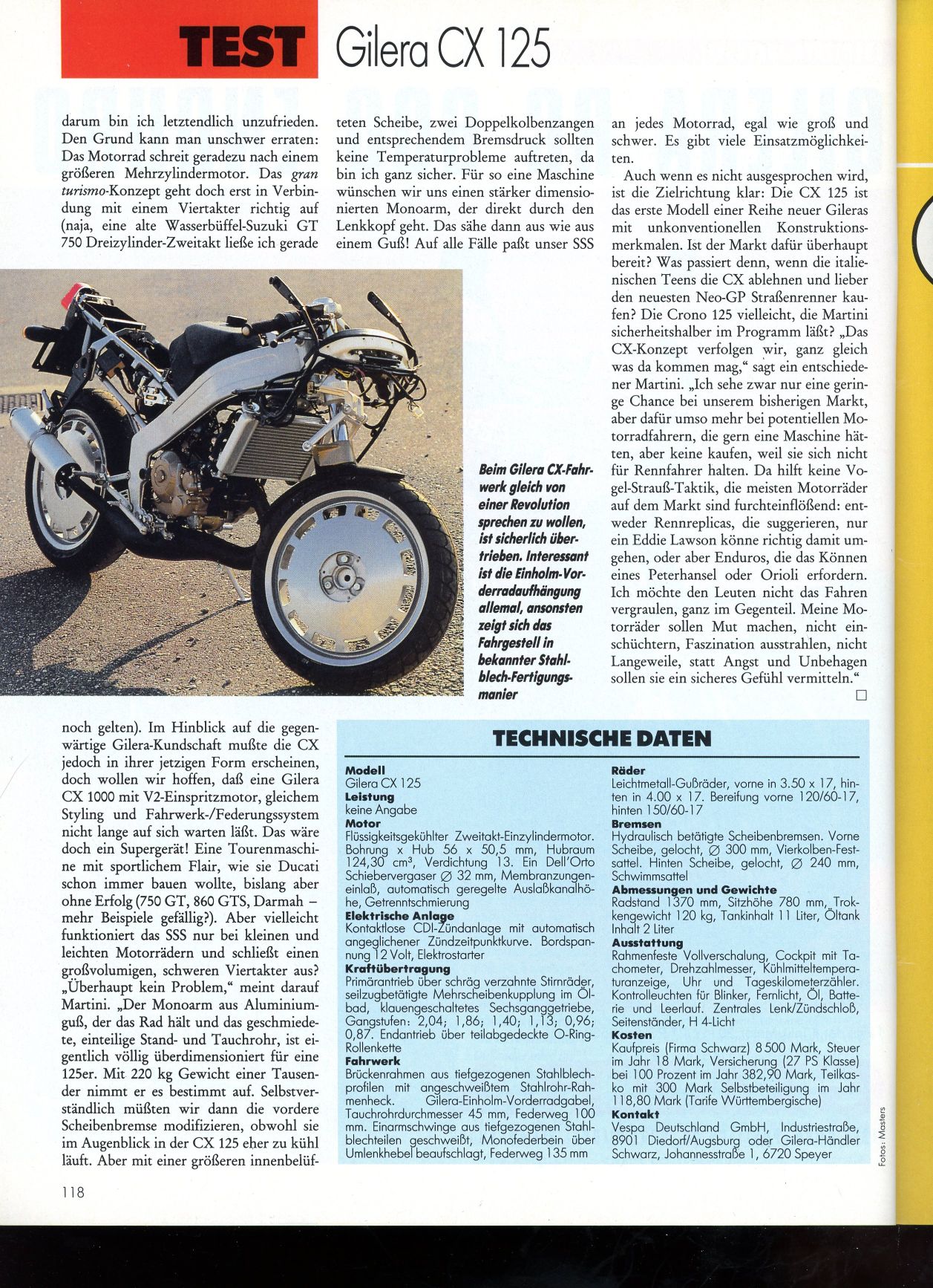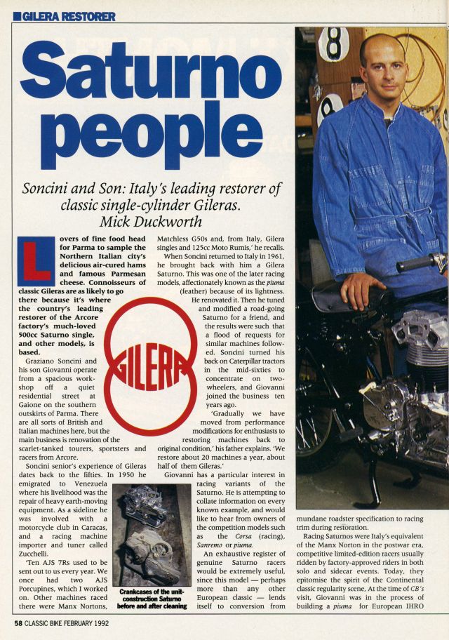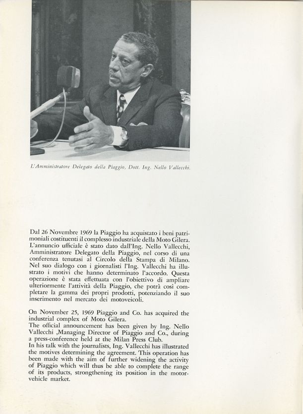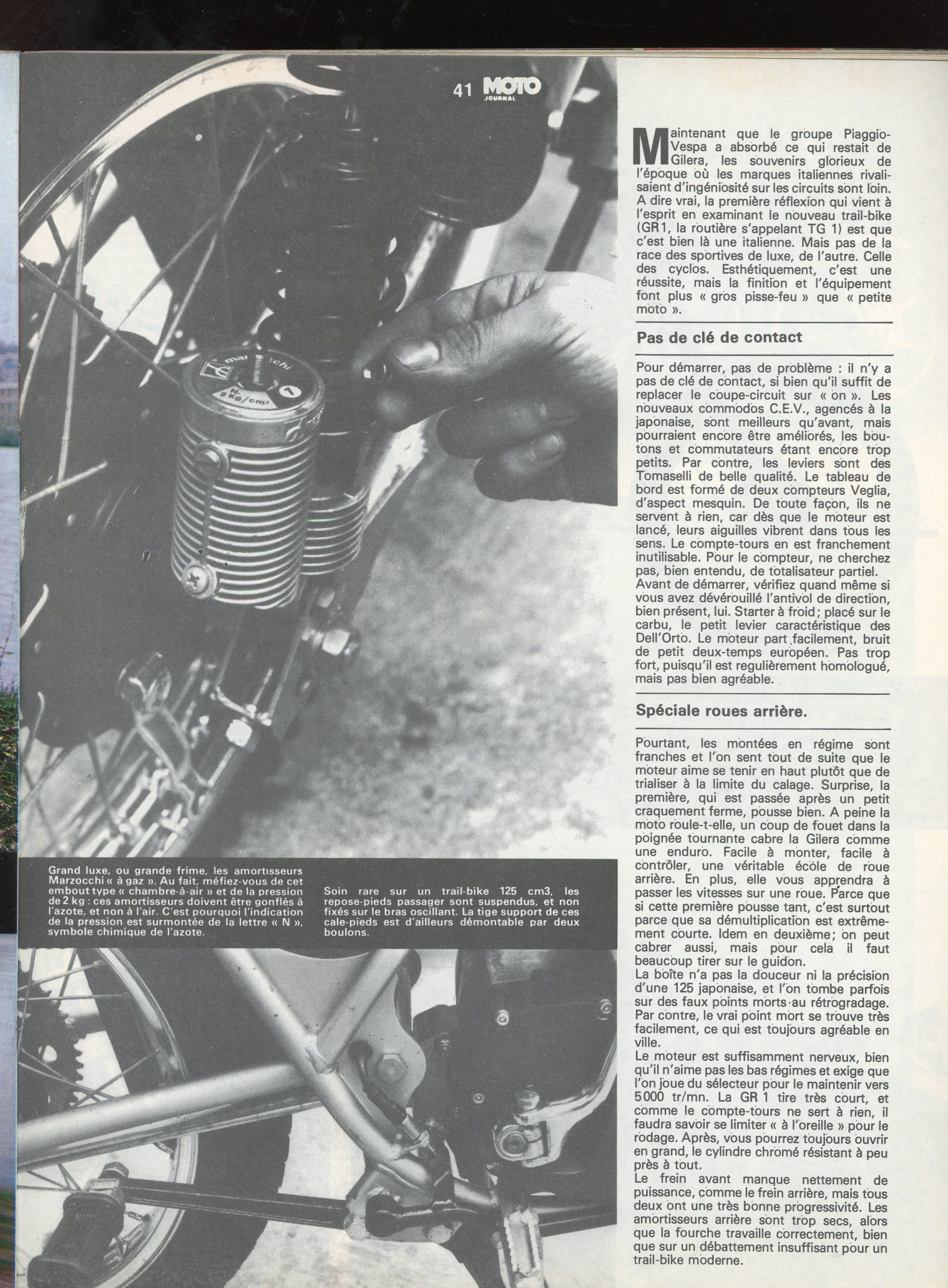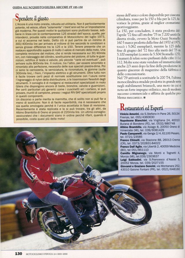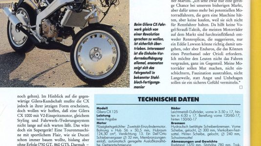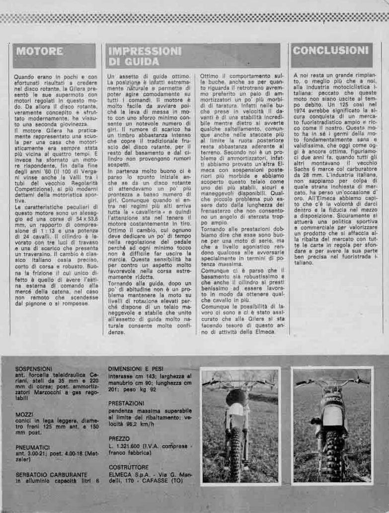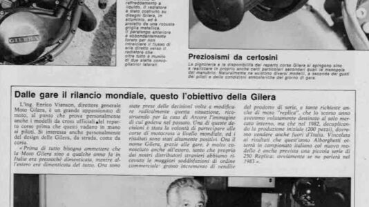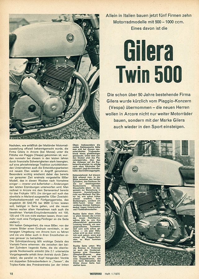Presseschau III (1961 – BI4) - Seitenlayout überarbeitet 11.08.2024- Titelbild (Quelle: Internet) ------------------------------------------------------------------------------------- Bunte Mischung Gilera Werbung (Quelle: Internet) ------------------------------------------------------------------------------------- Piaggio/Gilera Broschüre 1969 (Quelle: Privatarchiv) ------------------------------------------------------------------------------------- Werbung Gilera 125 Zweitakt (Quelle: Internet) ------------------------------------------------------------------------------------- Werbung Gilera 200 Zweitakt (Quelle: Internet) ------------------------------------------------------------------------------------- Werbung Gilera 250 Zweitakt (Quelle: Internet) ------------------------------------------------------------------------------------- Datenblatt Gilera 125 XR2 Marathon (Quelle: Internet) ------------------------------------------------------------------------------------- Datenblatt Gilera 125 Top Rally (Quelle: Internet) ------------------------------------------------------------------------------------- Aus MOTALIA, Heft 250/2011 über die Gilera CX 125 (Quelle: Privatarchiv) ------------------------------------------------------------------------------------- Aus Gummikuh, Heft 1/1994 über die Gilera Arcore 150 (Quelle: Privatarchiv) ------------------------------------------------------------------------------------- Aus Gummikuh, Heft 2/1991 über die Gilera Arcore 150 (Quelle: Privatarchiv) ------------------------------------------------------------------------------------- Aus Oldtimer PRAXIS, Heft 5/2022 über den Motor einer Gilera Arcore (Quelle: Privatarchiv) ------------------------------------------------------------------------------------- Aus dem Buch Italienische Motorrad Klassiker Band 1 von Mick Walker über die Gilera Produktpalette (Quelle: Privatarchiv) ------------------------------------------------------------------------------------- Aus MOTOCICLISMO/Italien, Ausgabe ? über die Gilera Elmeca 125 Regolarita(Quelle: Internet) ------------------------------------------------------------------------------------- Aus Das MOTORRAD, Heft 7/1963 über Gilera wieder dabei (Quelle: Privatarchiv) ------------------------------------------------------------------------------------- Aus MOTO CICLISMO d´Epoca/Italien, Heft 11/2010 über die Gilera Giubileo 98 und 98 Extra(Quelle: Privatarchiv) ------------------------------------------------------------------------------------- Aus Moto revue/Frankreich, Heft 3001/1991 über die Gilera 125 CX(Quelle: Privatarchiv) ------------------------------------------------------------------------------------- Aus MOTO JOURNAL/Frankreich, Heft 872/1988 über einen 125 cc Vergleichstest u. a. mit der Gilera 125 RRT Nebraska (Quelle: Privatarchiv) ------------------------------------------------------------------------------------- Aus la vie de LA MOTO/Frankreich, Heft 779/2014 über die Gilera 124/5V Regolarita(Quelle: Privatarchiv) ------------------------------------------------------------------------------------- Aus la vie de LA MOTO/Frankreich, Heft 872/2016 über die Gilera 300 B(Quelle: Privatarchiv) ------------------------------------------------------------------------------------- Aus Moto Ciclismo d`Epoca/Italien, Heft 6/1997 über "Indimenticabili Gilera"(Quelle: Privatarchiv) ------------------------------------------------------------------------------------- Über die Gilera 175 R Competizione (Quelle: Internet) ------------------------------------------------------------------------------------- Aus Legend Bike/Italien, Heft 90/2000 über die Gilera 124 Regolarita Casa(Quelle: Privatarchiv) ------------------------------------------------------------------------------------- Aus MOTO CICLISMO/Italien, Heft 12/2002 über die Gilera 5V Arcore 125-150(Quelle: Privatarchiv) ------------------------------------------------------------------------------------- Aus MOTO JOURNAL/Frankreich, Heft 340/1977 über die Gilera 125 GR1(Quelle: Privatarchiv) ------------------------------------------------------------------------------------- Aus motosprint extra/Italien, Ausgabe 1987 über diverse Gilera 125(Quelle: Internet) ------------------------------------------------------------------------------------- Werbung über die Gilera C1 (Quelle: Internet) ------------------------------------------------------------------------------------- Werbung über die Gilera C2 (Quelle: Internet) ------------------------------------------------------------------------------------- Bericht über die Gilera E1 (Quelle: Internet) ------------------------------------------------------------------------------------- Gilera Prospekt über die 125 C2 bzw. E1 (Quelle: Internet) ------------------------------------------------------------------------------------- Bericht über die 125 cc Moto Cross Modelle (Quelle: Internet) ------------------------------------------------------------------------------------- Bericht über die ELMECA Gilera 125 Cross (Quelle: Internet) ------------------------------------------------------------------------------------- Aus Classic Bike/GB, Heft 153/1992 über eine Gilera 175 Rossa Extra(Quelle: Privatarchiv) ------------------------------------------------------------------------------------- Aus Classic Bike/GB, Heft 145/1992 über "The Saturno People"(Quelle: Privatarchiv) ------------------------------------------------------------------------------------- Aus Das MOTORRAD, Heft 11/1964 über das Gilera Gespann von Camathias (Quelle: Privatarchiv) ------------------------------------------------------------------------------------- Aus Das MOTORRAD, Heft 25/1968 über die neue 500er Gilera(Quelle: Privatarchiv) ------------------------------------------------------------------------------------- Gilera Prospekt über 50 Touring-Mokick, 50 RS-Touring, 50 RS-Trial und Strada 150(Quelle: Privatarchiv