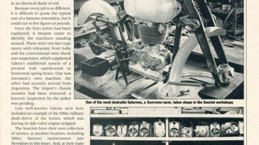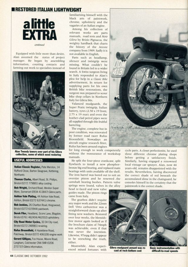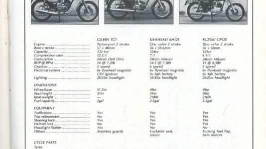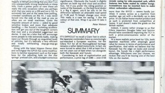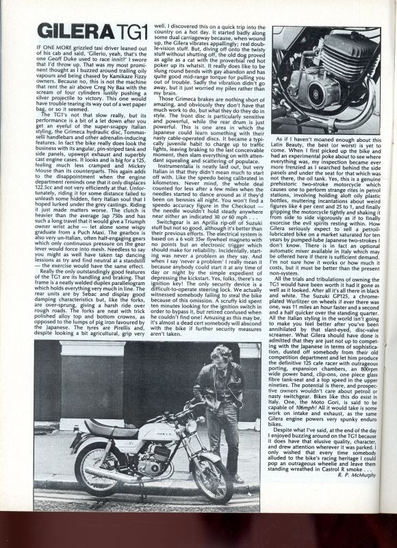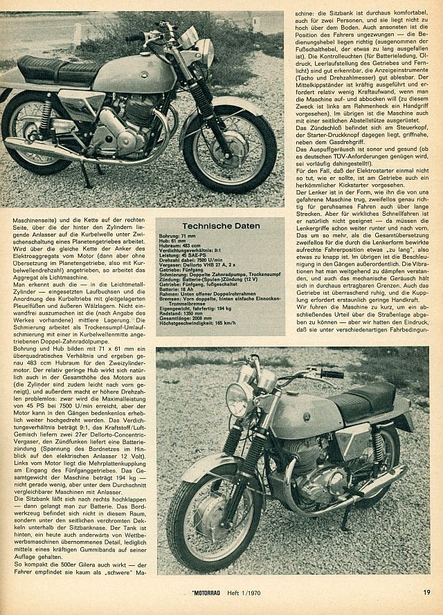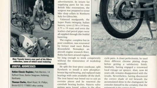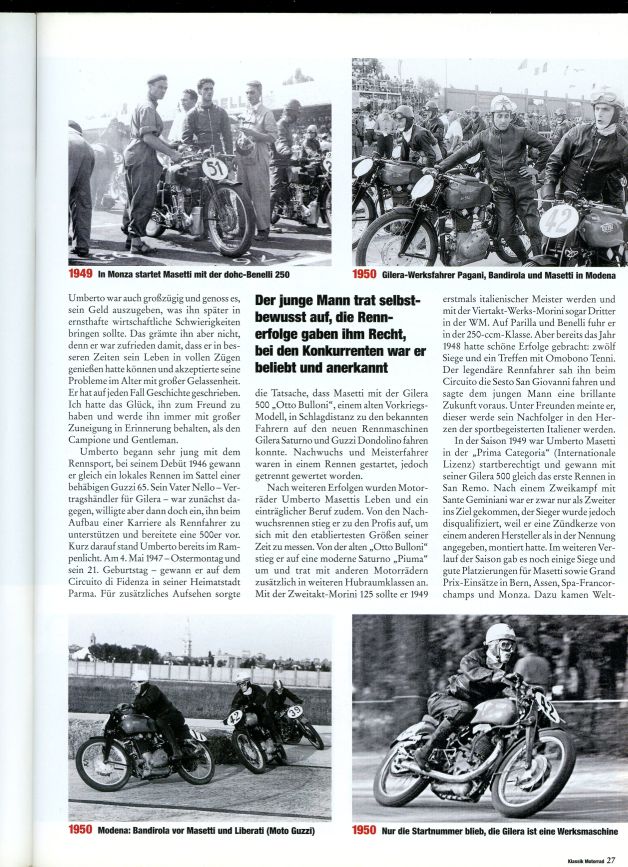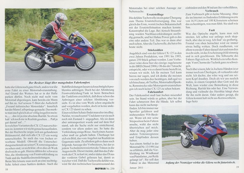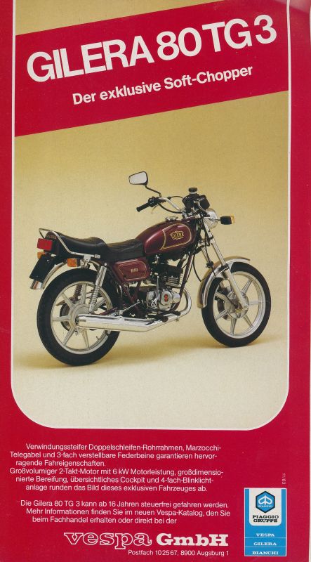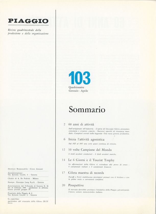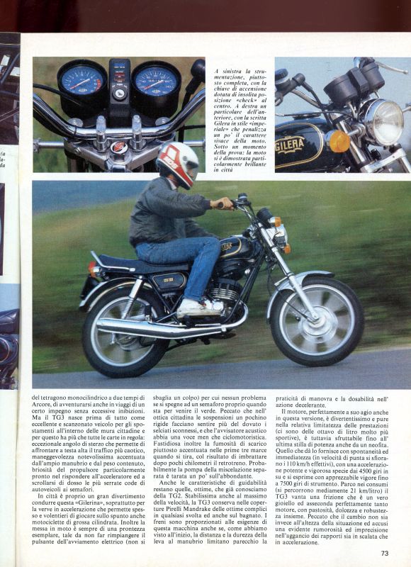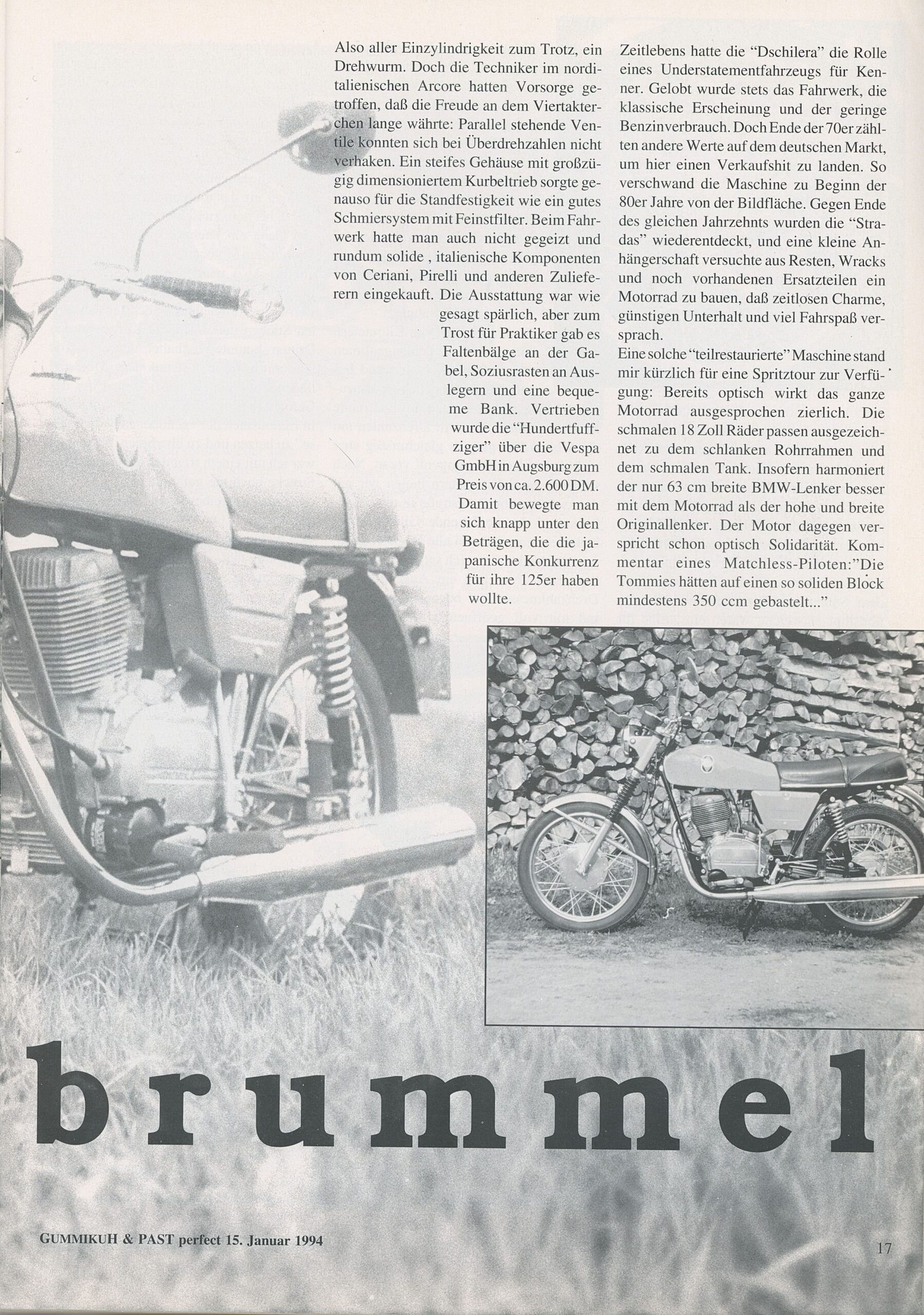 Presseschau III (1961 – BI4) - Seitenlayout überarbeitet 11.08.2024- Titelbild (Quelle: Internet) ------------------------------------------------------------------------------------- Bunte Mischung Gilera Werbung (Quelle: Internet) ------------------------------------------------------------------------------------- Piaggio/Gilera Broschüre 1969 (Quelle: Privatarchiv) ------------------------------------------------------------------------------------- Werbung Gilera 125 Zweitakt (Quelle: Internet) ------------------------------------------------------------------------------------- Werbung Gilera 200 Zweitakt (Quelle: Internet) ------------------------------------------------------------------------------------- Werbung Gilera 250 Zweitakt (Quelle: Internet) ------------------------------------------------------------------------------------- Datenblatt Gilera 125 XR2 Marathon (Quelle: Internet) ------------------------------------------------------------------------------------- Datenblatt Gilera 125 Top Rally (Quelle: Internet) ------------------------------------------------------------------------------------- Aus MOTALIA, Heft 250/2011 über die Gilera CX 125 (Quelle: Privatarchiv) ------------------------------------------------------------------------------------- Aus Gummikuh, Heft 1/1994 über die Gilera Arcore 150 (Quelle: Privatarchiv) ------------------------------------------------------------------------------------- Aus Gummikuh, Heft 2/1991 über die Gilera Arcore 150 (Quelle: Privatarchiv) ------------------------------------------------------------------------------------- Aus Oldtimer PRAXIS, Heft 5/2022 über den Motor einer Gilera Arcore (Quelle: Privatarchiv) ------------------------------------------------------------------------------------- Aus dem Buch Italienische Motorrad Klassiker Band 1 von Mick Walker über die Gilera Produktpalette (Quelle: Privatarchiv) ------------------------------------------------------------------------------------- Aus MOTOCICLISMO/Italien, Ausgabe ? über die Gilera Elmeca 125 Regolarita(Quelle: Internet) ------------------------------------------------------------------------------------- Aus Das MOTORRAD, Heft 7/1963 über Gilera wieder dabei (Quelle: Privatarchiv) ------------------------------------------------------------------------------------- Aus MOTO CICLISMO d´Epoca/Italien, Heft 11/2010 über die Gilera Giubileo 98 und 98 Extra(Quelle: Privatarchiv) ------------------------------------------------------------------------------------- Aus Moto revue/Frankreich, Heft 3001/1991 über die Gilera 125 CX(Quelle: Privatarchiv) ------------------------------------------------------------------------------------- Aus MOTO JOURNAL/Frankreich, Heft 872/1988 über einen 125 cc Vergleichstest u. a. mit der Gilera 125 RRT Nebraska (Quelle: Privatarchiv) ------------------------------------------------------------------------------------- Aus la vie de LA MOTO/Frankreich, Heft 779/2014 über die Gilera 124/5V Regolarita(Quelle: Privatarchiv) ------------------------------------------------------------------------------------- Aus la vie de LA MOTO/Frankreich, Heft 872/2016 über die Gilera 300 B(Quelle: Privatarchiv) ------------------------------------------------------------------------------------- Aus Moto Ciclismo d`Epoca/Italien, Heft 6/1997 über "Indimenticabili Gilera"(Quelle: Privatarchiv) ------------------------------------------------------------------------------------- Über die Gilera 175 R Competizione (Quelle: Internet) ------------------------------------------------------------------------------------- Aus Legend Bike/Italien, Heft 90/2000 über die Gilera 124 Regolarita Casa(Quelle: Privatarchiv) ------------------------------------------------------------------------------------- Aus MOTO CICLISMO/Italien, Heft 12/2002 über die Gilera 5V Arcore 125-150(Quelle: Privatarchiv) ------------------------------------------------------------------------------------- Aus MOTO JOURNAL/Frankreich, Heft 340/1977 über die Gilera 125 GR1(Quelle: Privatarchiv) ------------------------------------------------------------------------------------- Aus motosprint extra/Italien, Ausgabe 1987 über diverse Gilera 125(Quelle: Internet) ------------------------------------------------------------------------------------- Werbung über die Gilera C1 (Quelle: Internet) ------------------------------------------------------------------------------------- Werbung über die Gilera C2 (Quelle: Internet) ------------------------------------------------------------------------------------- Bericht über die Gilera E1 (Quelle: Internet) ------------------------------------------------------------------------------------- Gilera Prospekt über die 125 C2 bzw. E1 (Quelle: Internet) ------------------------------------------------------------------------------------- Bericht über die 125 cc Moto Cross Modelle (Quelle: Internet) ------------------------------------------------------------------------------------- Bericht über die ELMECA Gilera 125 Cross (Quelle: Internet) ------------------------------------------------------------------------------------- Aus Classic Bike/GB, Heft 153/1992 über eine Gilera 175 Rossa Extra(Quelle: Privatarchiv) ------------------------------------------------------------------------------------- Aus Classic Bike/GB, Heft 145/1992 über "The Saturno People"(Quelle: Privatarchiv) ------------------------------------------------------------------------------------- Aus Das MOTORRAD, Heft 11/1964 über das Gilera Gespann von Camathias (Quelle: Privatarchiv) ------------------------------------------------------------------------------------- Aus Das MOTORRAD, Heft 25/1968 über die neue 500er Gilera(Quelle: Privatarchiv) ------------------------------------------------------------------------------------- Gilera Prospekt über 50 Touring-Mokick, 50 RS-Touring, 50 RS-Trial und Strada 150(Quelle: Privatarchiv