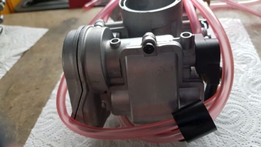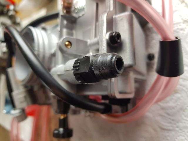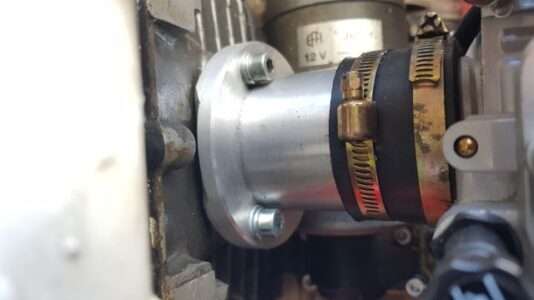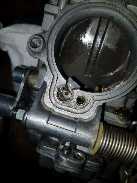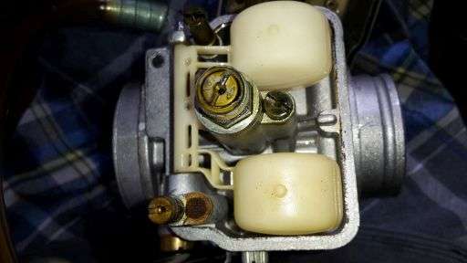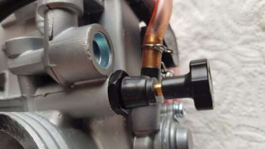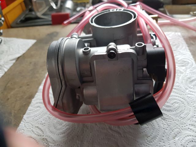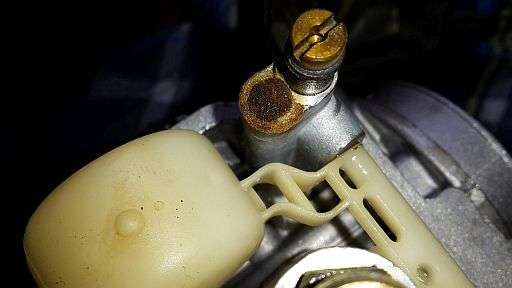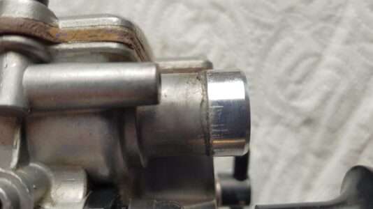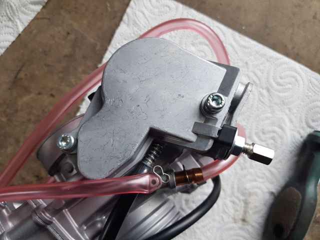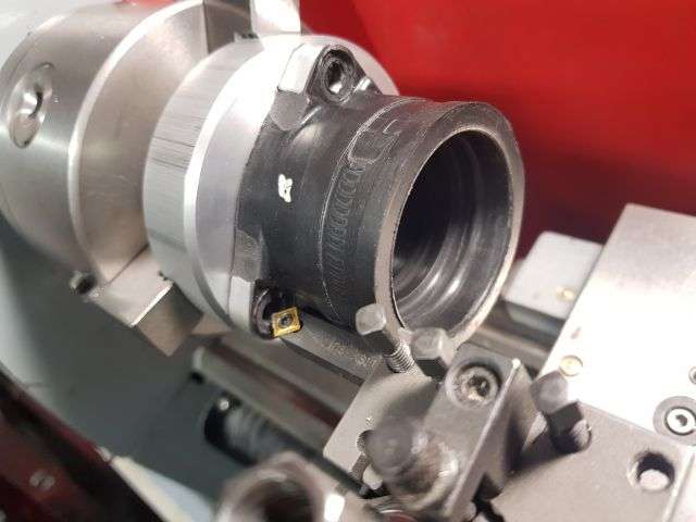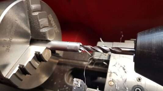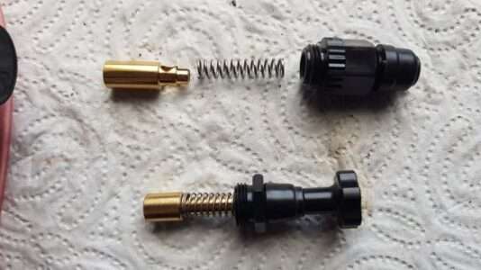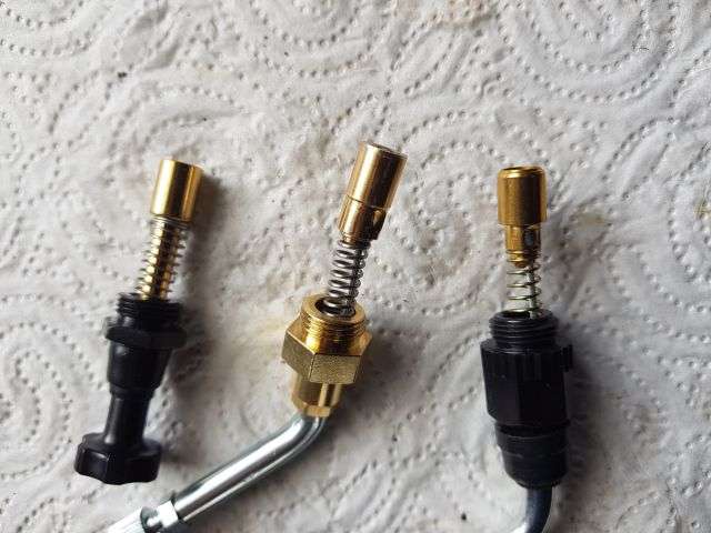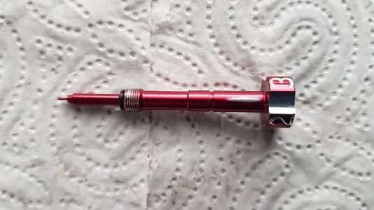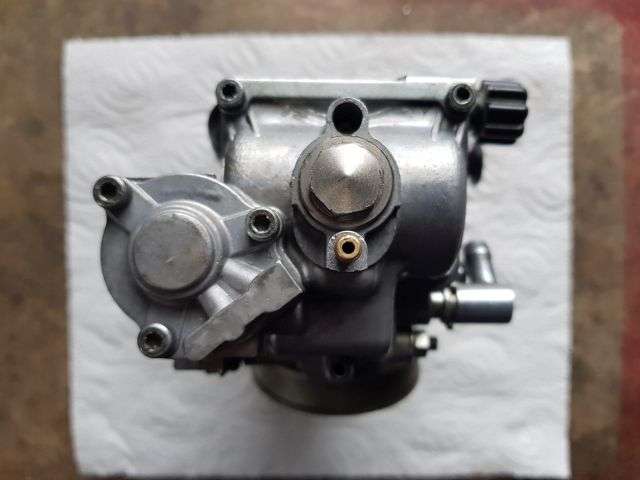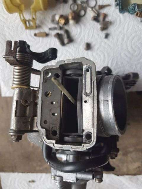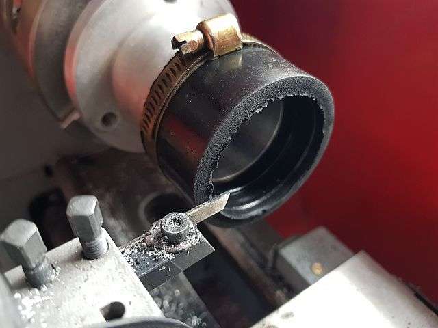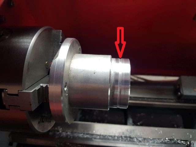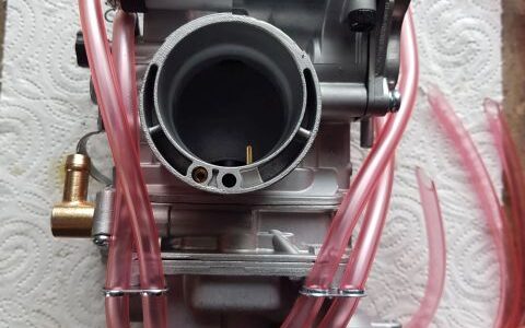 Hatte schon vor Jahren übers Internet ein nagelneues Dellorto PHM Vergasergehäuse erworben und wollte es komplettieren. Da hat sich doch tatsächlich herausgestellt, dass das Gewinde für die Leerlaufluftschraube nicht richtig gefertigt ist. Das Gewinde (M 7 x 0,75) sollte schon vorne am kleinen Absatz anfangen. Was tun? Ich werde versuchen, genau axial die Stelle auszubohren um eine Alubuchse mit Innengewinde einzukleben. Zentrieren kann ich die Buchse über das vorhandene Gewinde und einer langen Schraube.