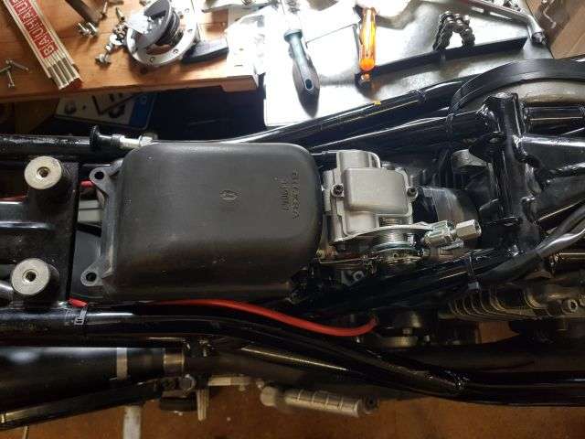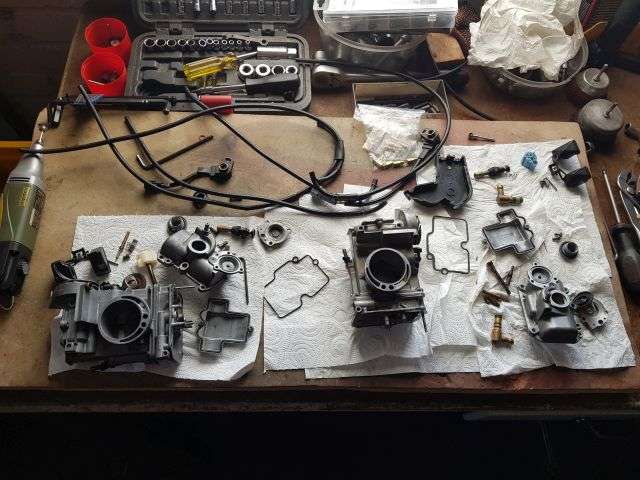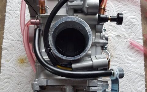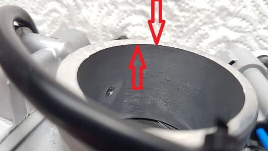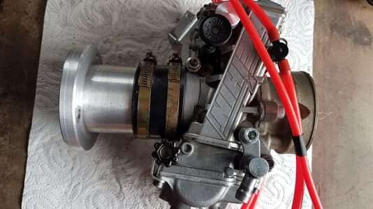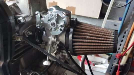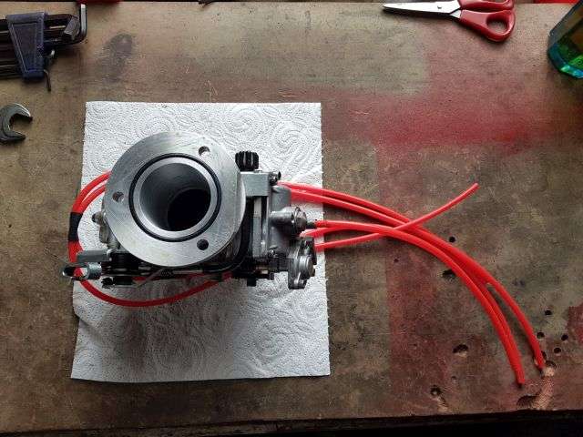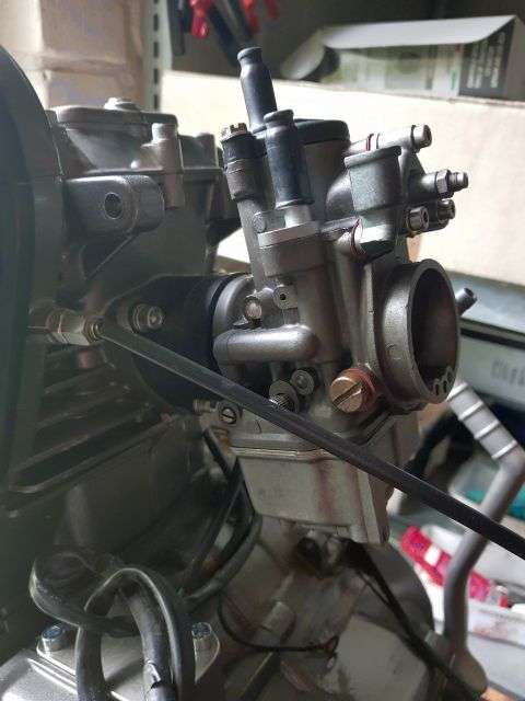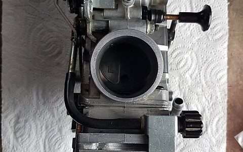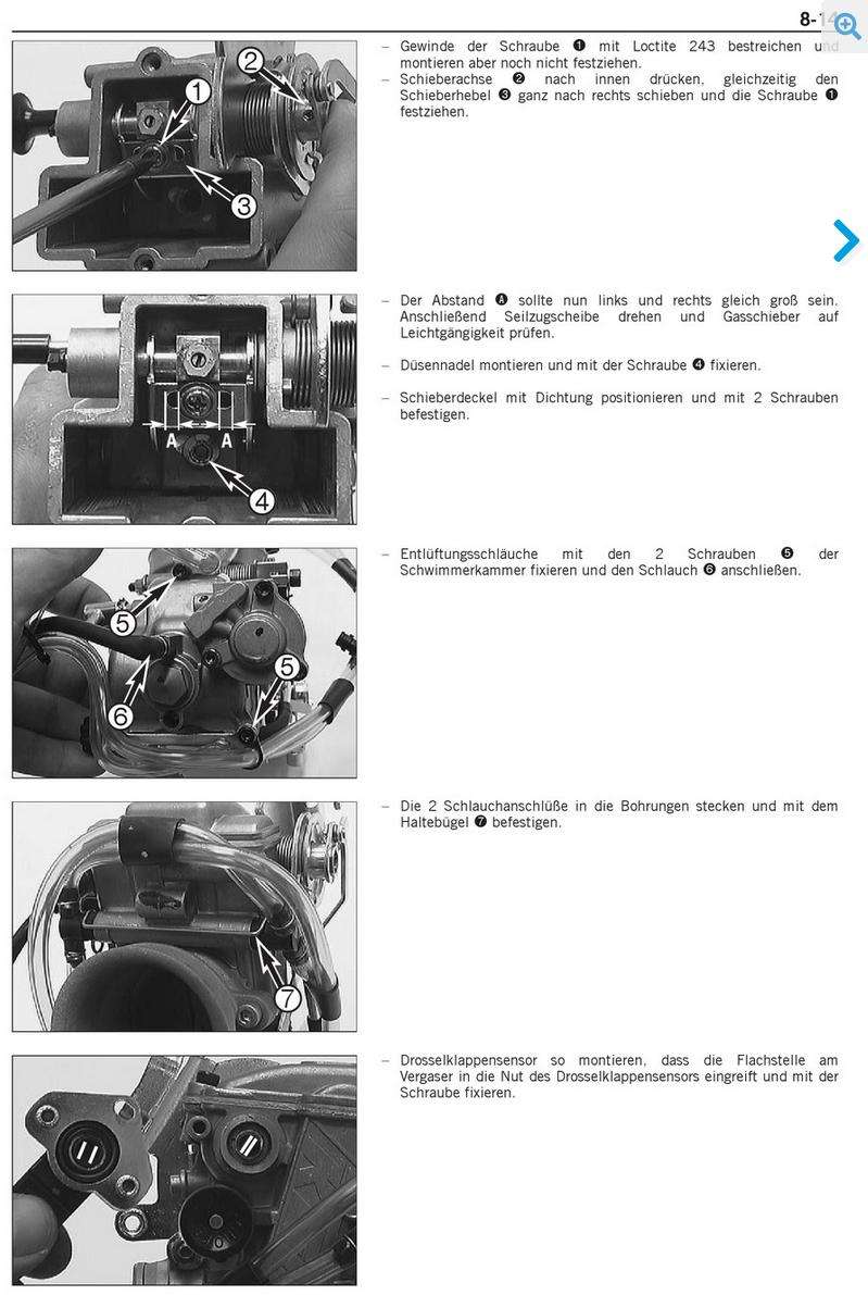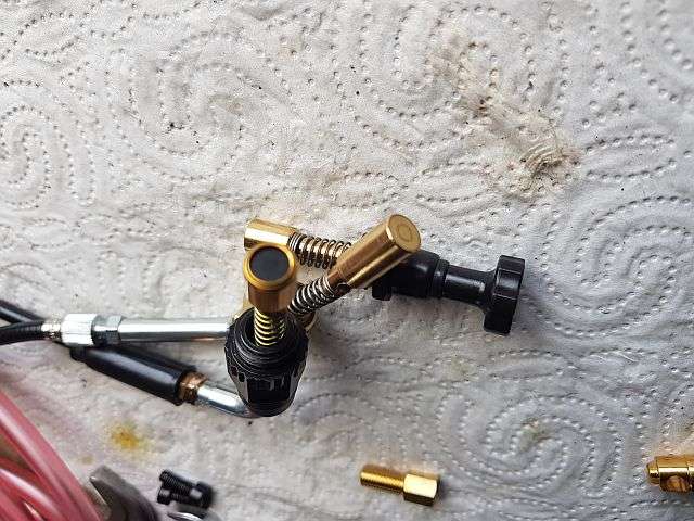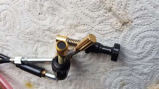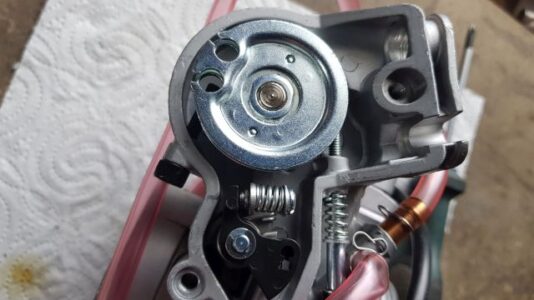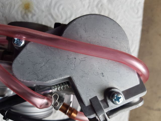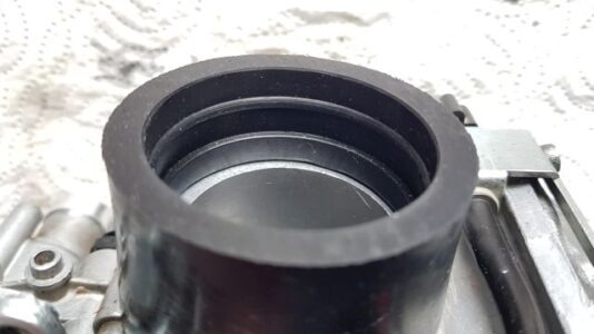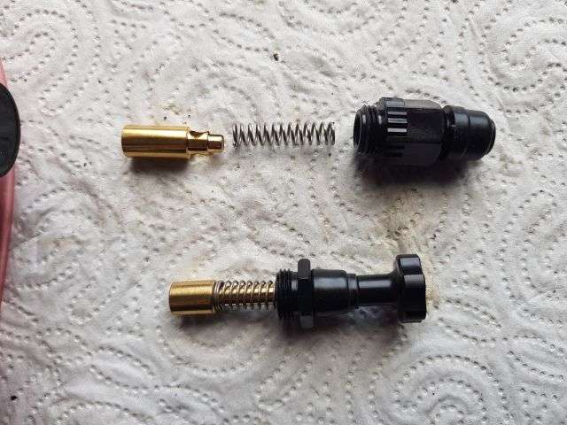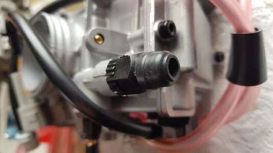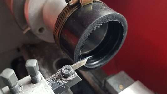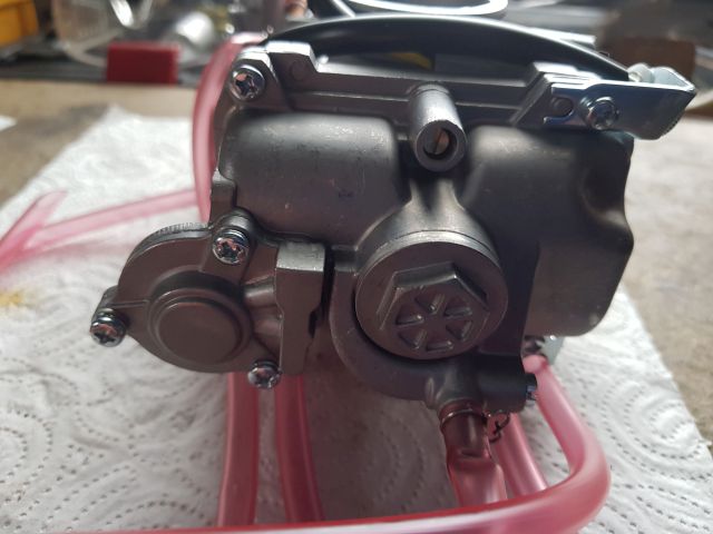 Hatte schon vor Jahren übers Internet ein nagelneues Dellorto PHM Vergasergehäuse erworben und wollte es komplettieren. Da hat sich doch tatsächlich herausgestellt, dass das Gewinde für die Leerlaufluftschraube nicht richtig gefertigt ist. Das Gewinde (M 7 x 0,75) sollte schon vorne am kleinen Absatz anfangen. Was tun? Ich werde versuchen, genau axial die Stelle auszubohren um eine Alubuchse mit Innengewinde einzukleben. Zentrieren kann ich die Buchse über das vorhandene Gewinde und einer langen Schraube.