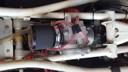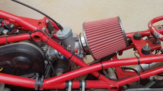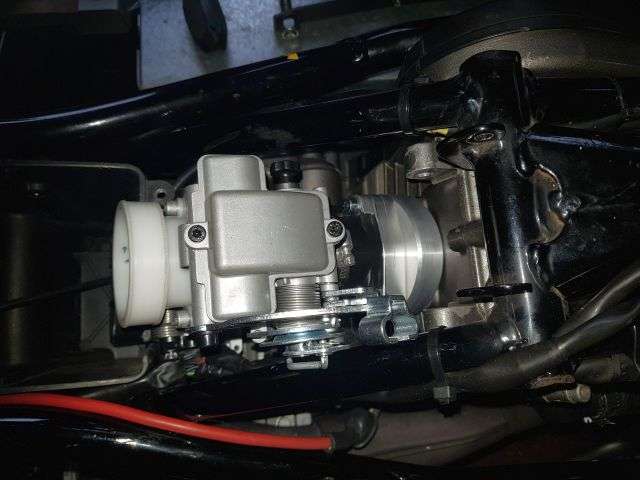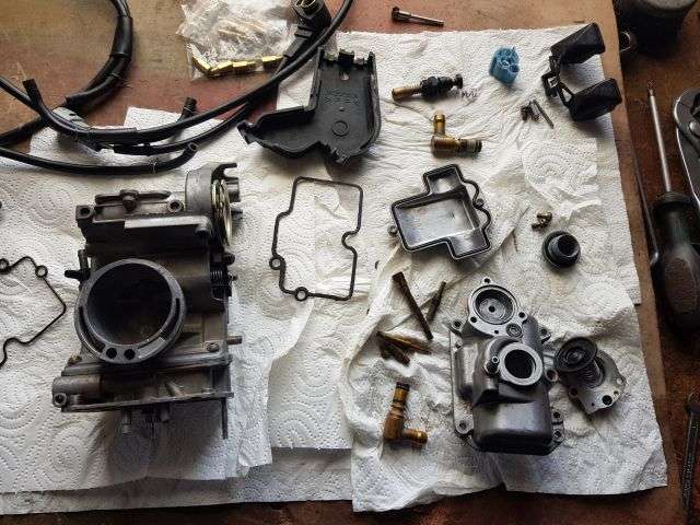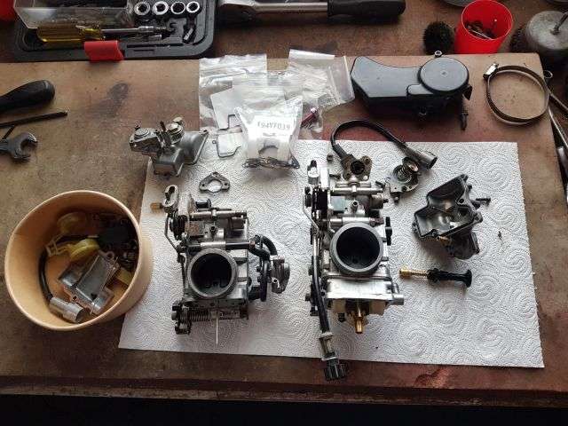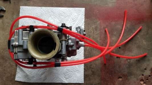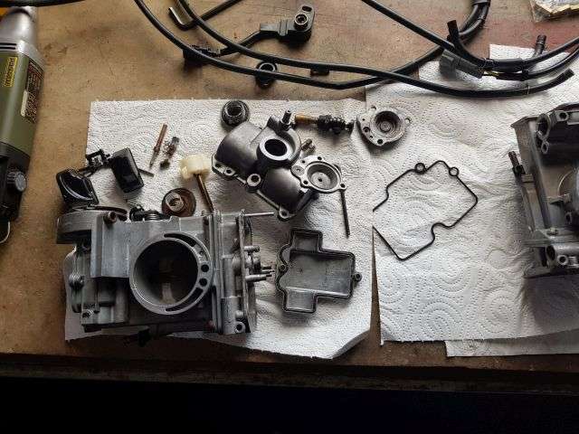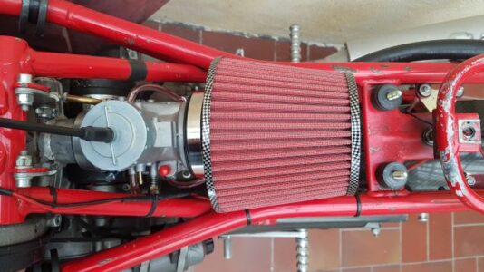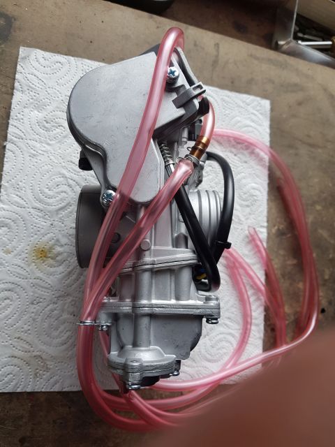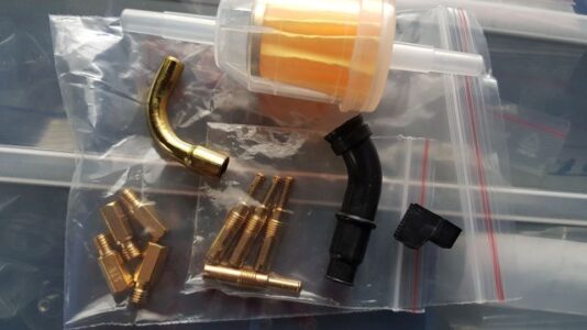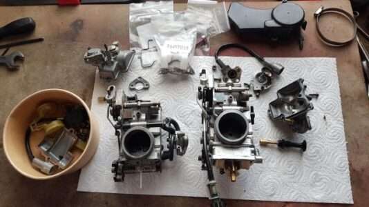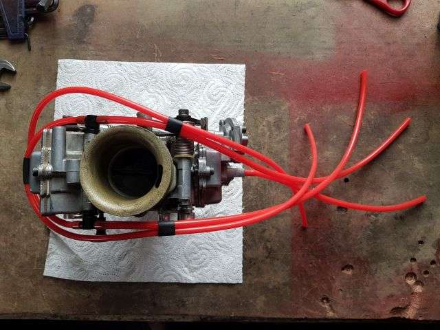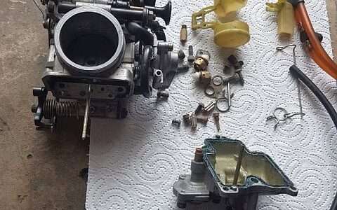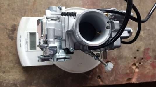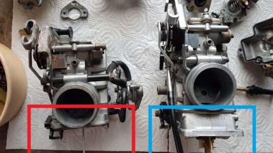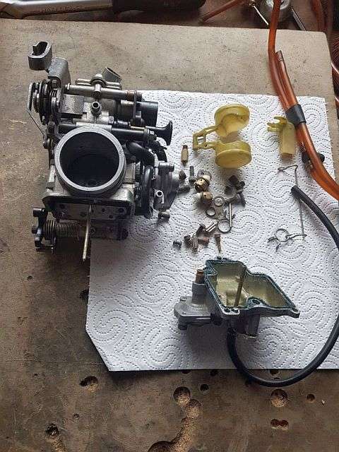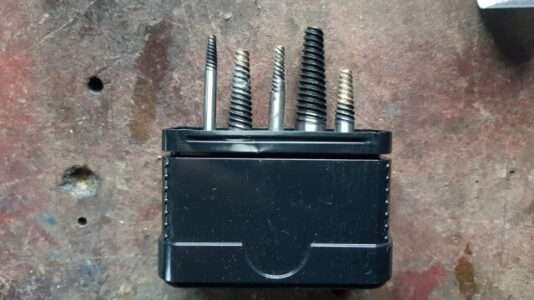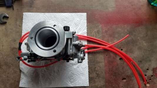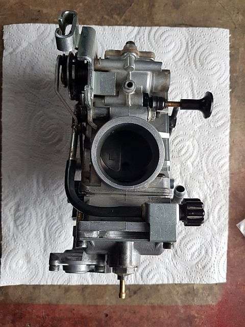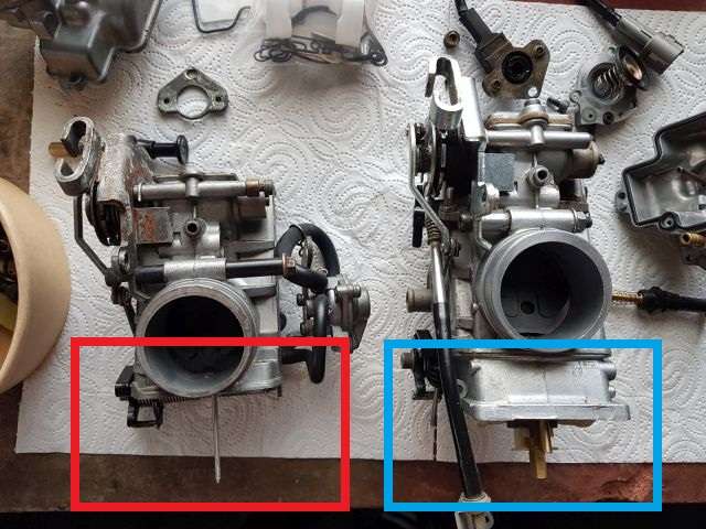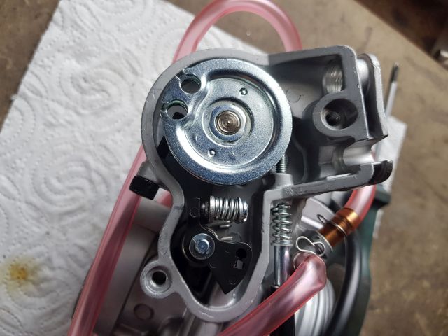 Hatte schon vor Jahren übers Internet ein nagelneues Dellorto PHM Vergasergehäuse erworben und wollte es komplettieren. Da hat sich doch tatsächlich herausgestellt, dass das Gewinde für die Leerlaufluftschraube nicht richtig gefertigt ist. Das Gewinde (M 7 x 0,75) sollte schon vorne am kleinen Absatz anfangen. Was tun? Ich werde versuchen, genau axial die Stelle auszubohren um eine Alubuchse mit Innengewinde einzukleben. Zentrieren kann ich die Buchse über das vorhandene Gewinde und einer langen Schraube.