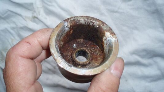 Auch die Welle zeigt Korrosionsspuren: