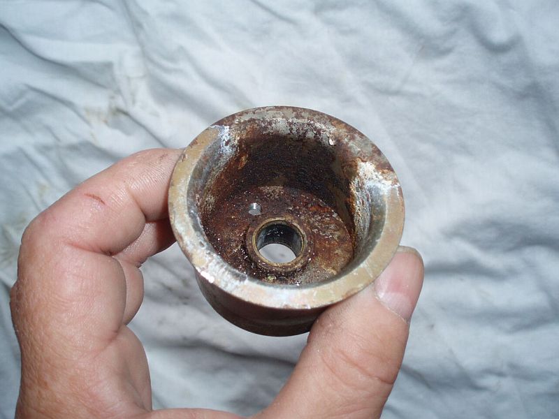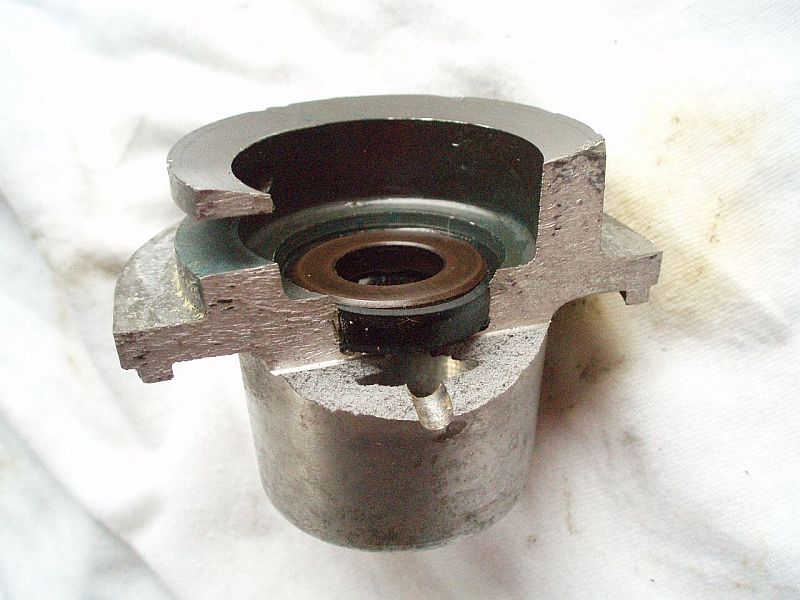 Habe ein kurioses Teil zugeschickt bekommen. Dürfte aber an keinem BI4 Motor verbaut gewesen sein, da über den flachen Flansch keine Abdichtung zur Wasserseite hin möglich ist. Dürfte als Umlenkrolle bei irgendeiner Maschine gedient haben. Leider ist die Antriebsrolle mit der Welle verschweißt, sonst hätte man sie vielleicht noch retten können.